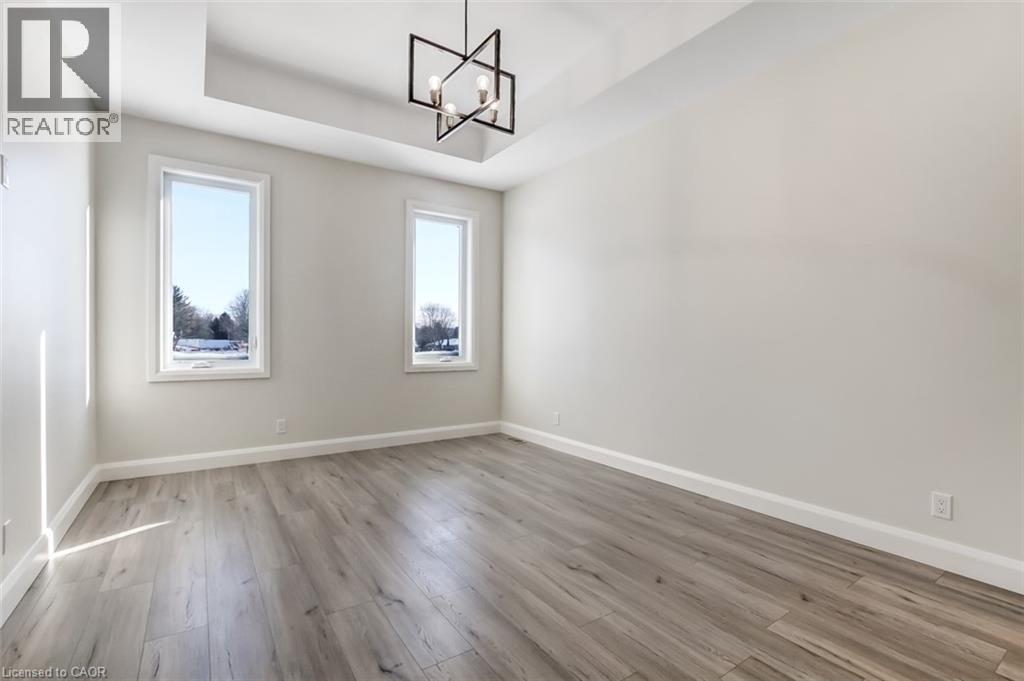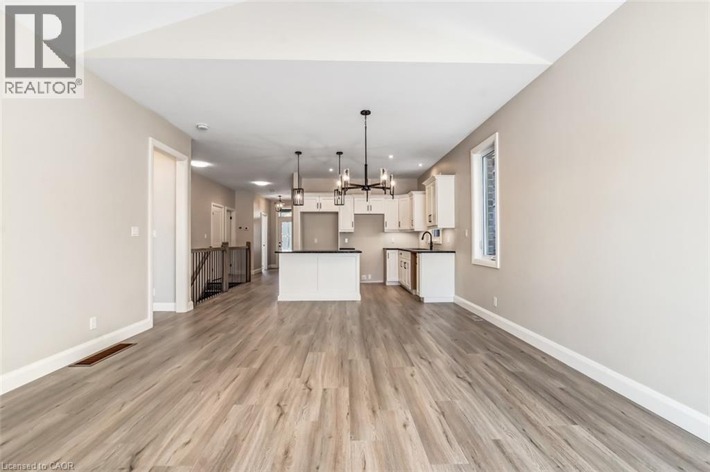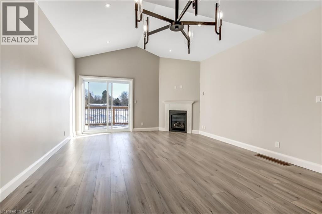 Welcome to 51 Norfolk Street in Waterford. This completed 1,266 sq. ft. semi-detached bungalow is an excellent opportunity for those starting out, downsizing, or seeking easy one-floor living without condo fees. Enjoy the comfort of owning your own home and yard, all at an affordable price — with only three units remaining on Norfolk Street. From the covered front porch to the private back deck, this home offers all the benefits of new construction. Built with quality and comfort in mind, the units are separated by a poured concrete wall, providing superior sound separation, privacy, and peace of mind. Inside, the open-concept layout features a spacious great room with a gas fireplace and patio doors, flowing seamlessly into the dining area and custom kitchen. The kitchen is finished with custom cabinetry, quartz countertops, a centre island with seating, pot lighting, and modern finishes — ideal for everyday living and entertaining. The generous primary bedroom includes a walk-through closet and a private 3-piece ensuite with tiled shower. A second bedroom offers flexibility as a guest room or den, while a full 4-piece main bath serves visitors. Main-floor laundry and a convenient mudroom are located just off the garage entry. The full unfinished basement features large windows and a rough-in for a future bathroom, offering excellent potential for additional living space. Additional features include a tankless water heater (owned), central air, forced-air gas furnace, utility sink, sump pump, and durable fiberglass shingles. Move-in ready and built with care. Taxes not yet assessed (id:64974)