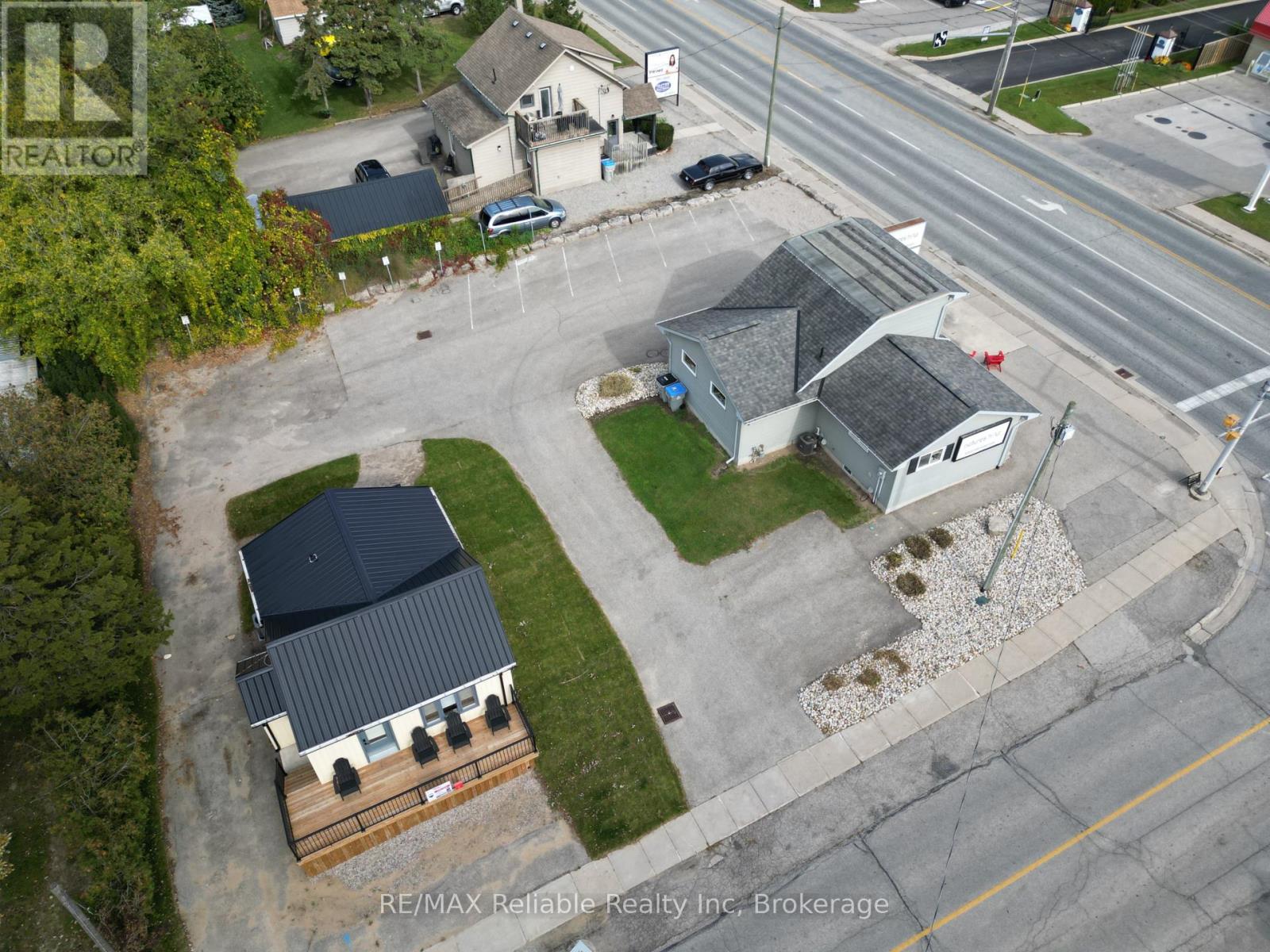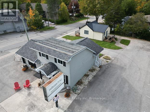 Two buildings offered in a high traffic location on Highway 21 with outstanding visibility and curb appeal. Exceptional exposure makes this an ideal opportunity for retail, office, or a service based business. The main commercial building features two separate spaces that can easily be converted or configured to suit a variety of uses. Equipped with central air, forced air gas heating and some updated plumbing, this property is ready for your vision. Also included is a renovated one bedroom cottage - perfect for rental income, owner occupancy or seasonal cottage use. Recent upgrades include vinyl siding (2023), newer windows and doors, updated decks and appliances. These buildings are situated on 94 ft of frontage x 136 ft deep lot in a sought after summer resort area, just steps from the shores of Lake Huron. A rare opportunity to invest in a high-visibility location with income potential. (id:64974)