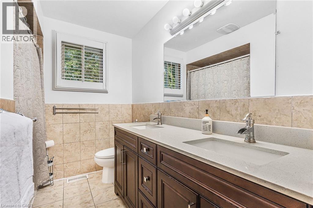 Located in the family-friendly area of Stoney Creek, this meticulously maintained home is an excellent option for larger families seeking space, comfort, and convenience. Offering a spacious layout with 4+1 bedrooms and 3.5 updated bathrooms, the home also features a 1-bedroom in-law suite with a separate walk-out entrance, ideal for extended family or added flexibility. The entire home is carpet-free, highlighted by a beautiful oak staircase, smooth ceilings with pot lights, and large windows that fill the space with natural light. Formal living and dining rooms are perfect for entertaining, while the main-floor family room with a brick hearth gas fireplace creates a warm gathering space. The updated kitchen features built-in stainless steel appliances, granite countertops, ample cabinetry including two corner curio cupboards, and a breakfast area with walk-out to an interlock patio. Situated on a fully fenced corner lot close to schools, parks, and highway access, with two parking spaces, this move-in-ready home offers both style and practicality. (id:64974)