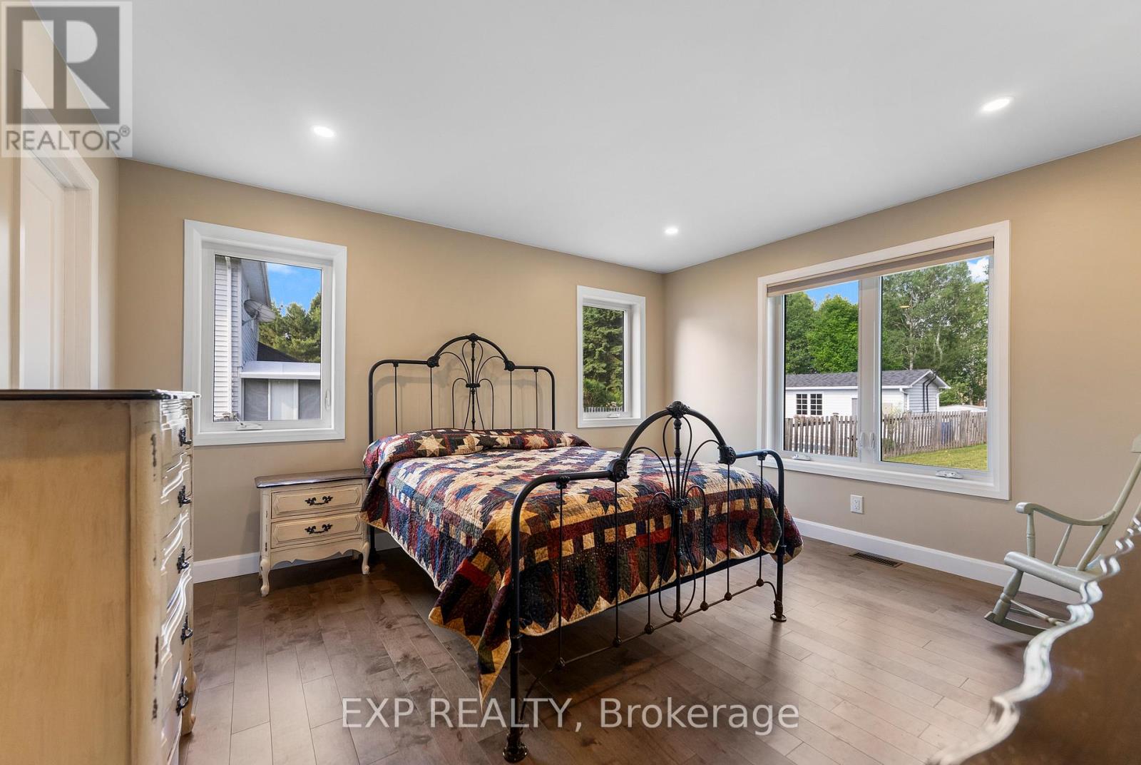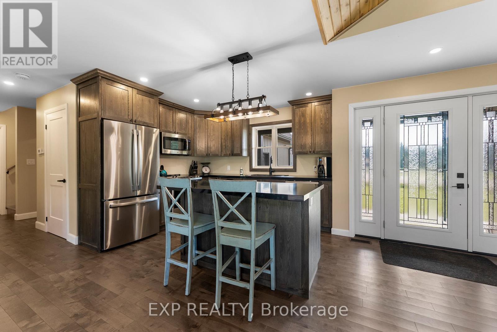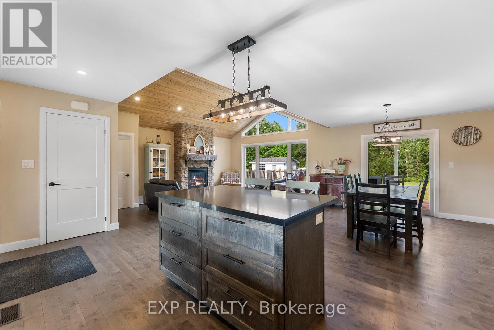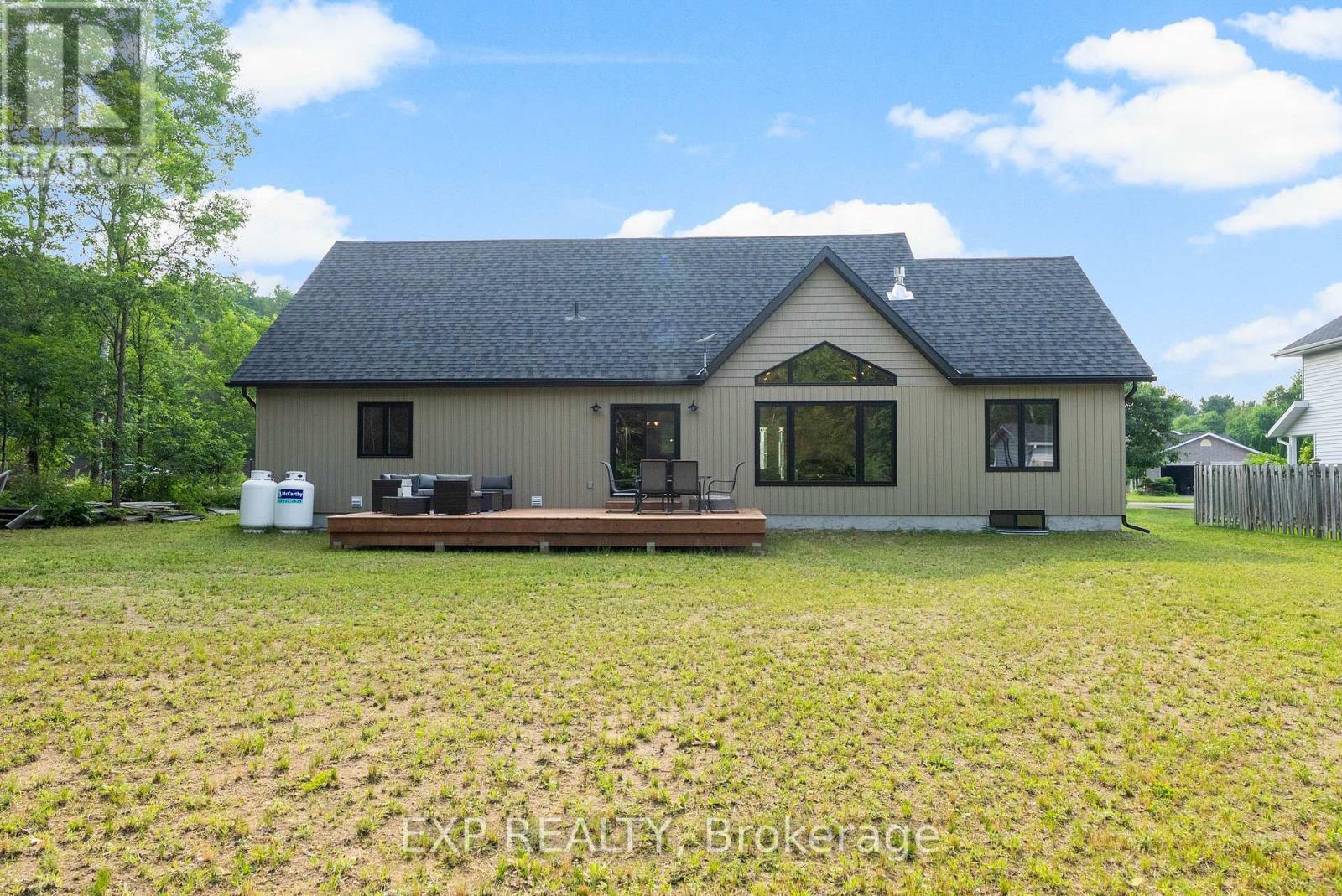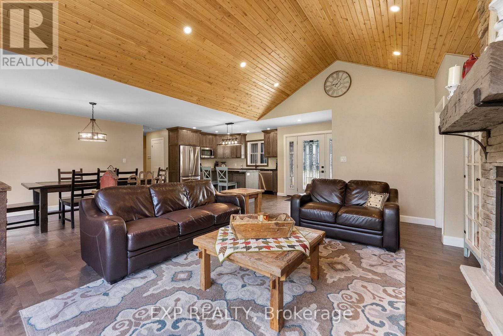 Prepare to be amazed by this stunning craftsman-style home that seamlessly blends modern farmhouse aesthetics with functional design. This 3-bed, 2-full-bath residence features custom ash cabinetry in the kitchen, complemented by elegant quartz countertops and stainless steel appliances. The kitchen opens up to a spacious dining and living area, adorned with hardwood floors and a beautiful propane-fired fusion stone fireplace, complete with a 100-year-old barn beam mantle. This inviting space overlooks a generous backyard, perfect for outdoor enjoyment.The master suite, located on one wing of the home, boasts a large walk-in closet and a three-piece ensuite bathroom. On the opposite wing, you'll find two additional spacious bedrooms, each with ample closet space, as well as a shared three-piece bath. Conveniently, the laundry is located on the main level, providing easy access to the large two-car garage. Don't miss the bonus loft space, which offers endless possibilities for customization. The lower level is also a blank canvas, allowing you to design it to your liking. Nestled in a quiet neighbourhood, this home is just a short walk from all amenities, with schools of all levels nearby. The western-facing backyard provides exceptional opportunities for relaxation and evening entertainment. Enjoy year-round recreation right at your doorstep. Spend your days boating, paddling, or fishing on beautiful Kamaniskeg Lake, with a public boat launch conveniently located in town. Explore nearby ATV and OFSC snowmobile trails, or add some thrill with whitewater rafting on the Madawaska River. Tee off at the golf course in Killaloe, unwind at local beaches, or discover the areas many scenic hiking and biking trails. Whether you're seeking outdoor adventure or small-town serenity, Barrys Bay offers a warm, nature-rich lifestyle. With excellent schools and a growing healthcare facility, this vibrant community supports both leisure and everyday living. (id:64974)