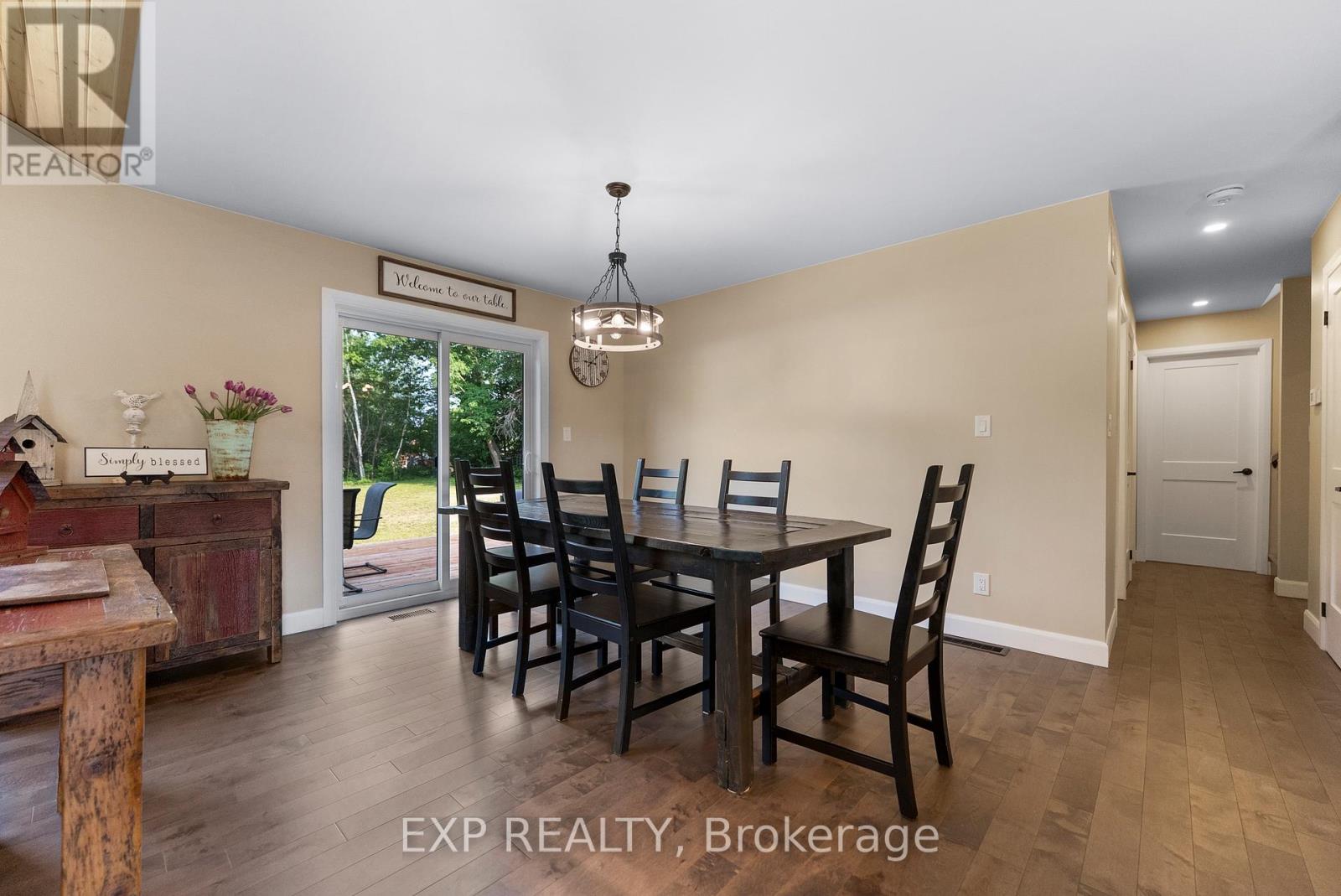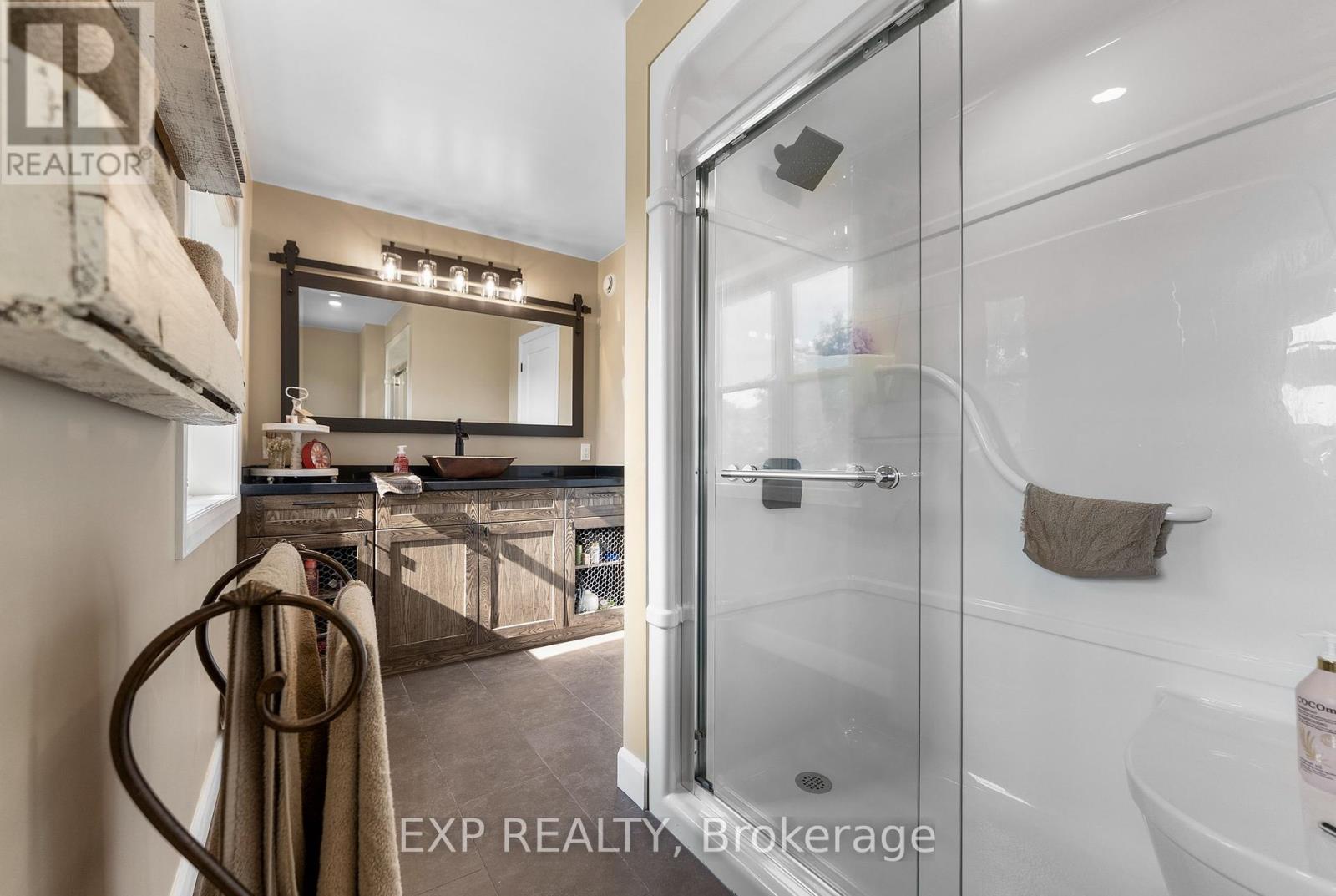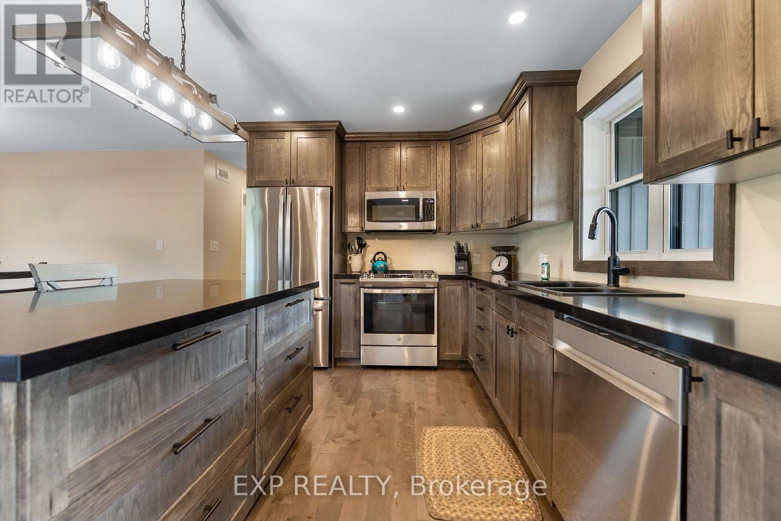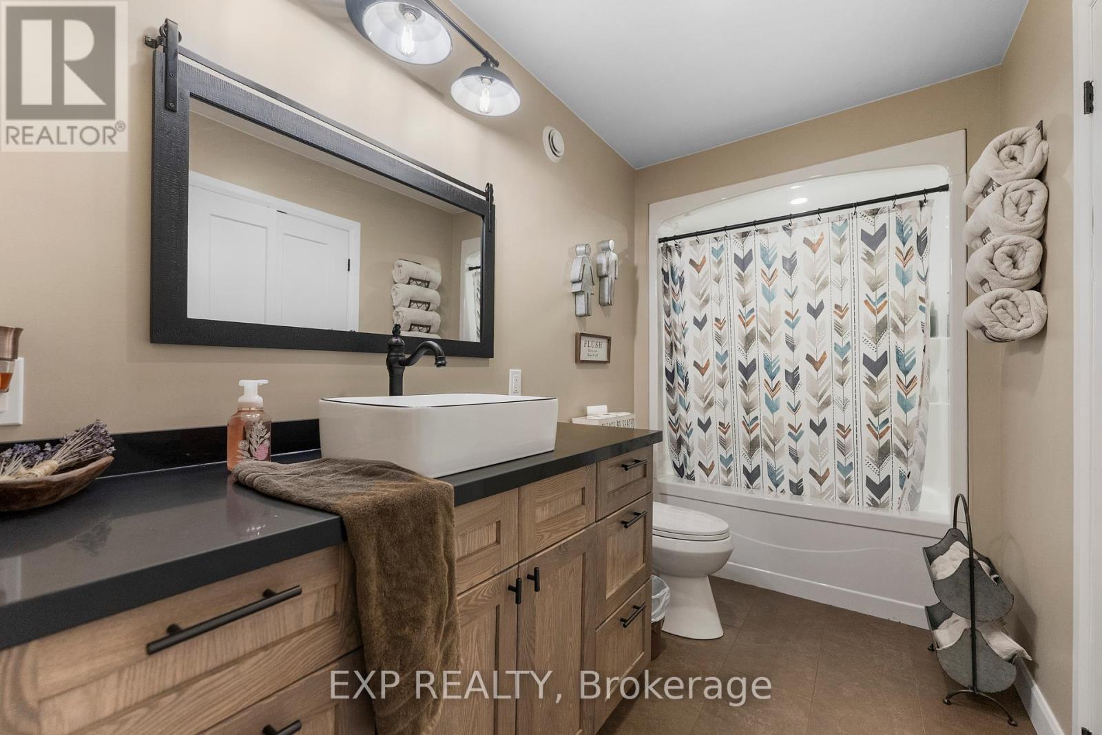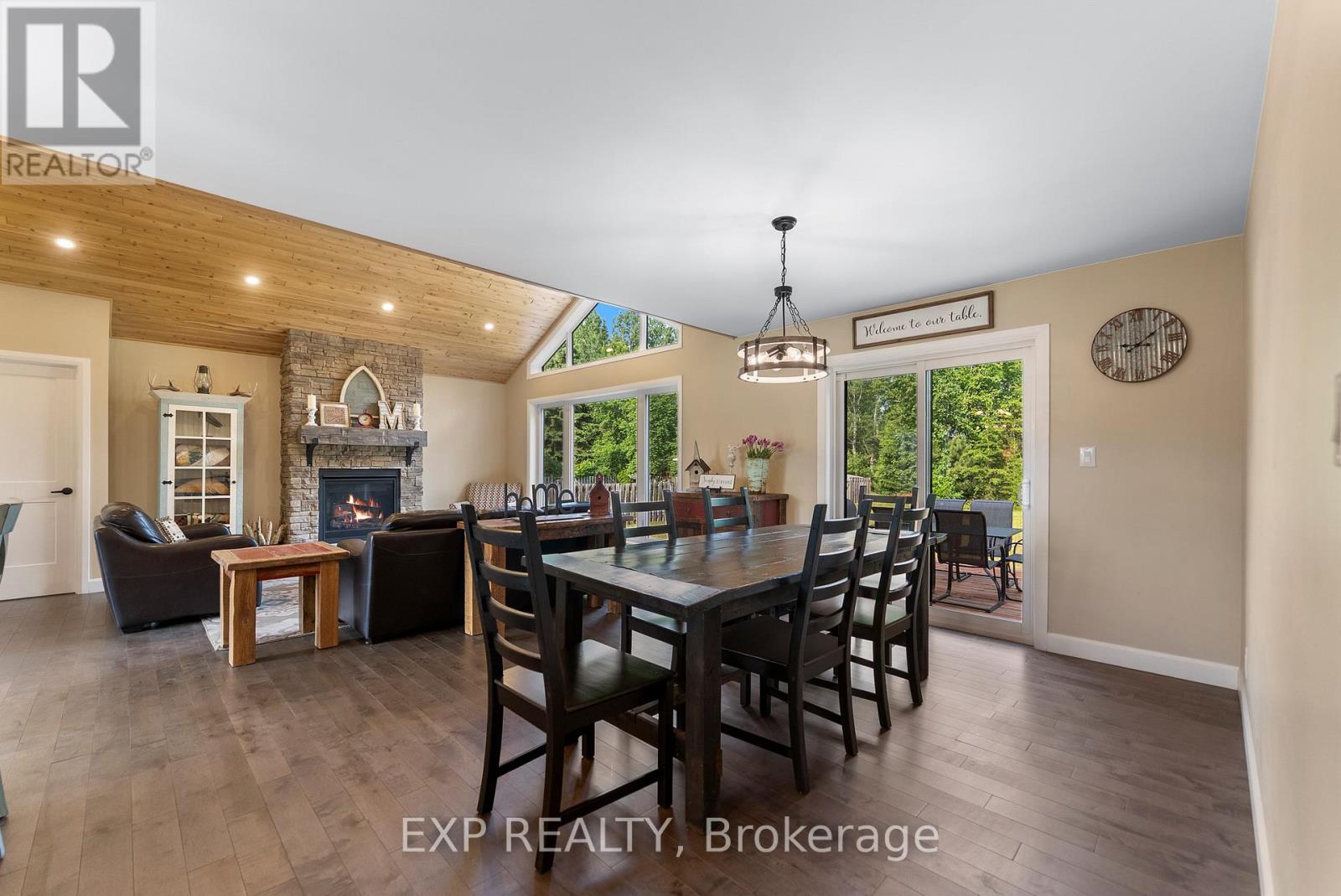 Prepare to be amazed by this stunning craftsman-style home that seamlessly blends modern farmhouse aesthetics with functional design. This 3-bed, 2-full-bath residence features custom ash cabinetry in the kitchen, complemented by elegant quartz countertops and stainless steel appliances. The kitchen opens up to a spacious dining and living area, adorned with hardwood floors and a beautiful propane-fired fusion stone fireplace, complete with a 100-year-old barn beam mantle. This inviting space overlooks a generous backyard, perfect for outdoor enjoyment.The master suite, located on one wing of the home, boasts a large walk-in closet and a three-piece ensuite bathroom. On the opposite wing, you'll find two additional spacious bedrooms, each with ample closet space, as well as a shared three-piece bath. Conveniently, the laundry is located on the main level, providing easy access to the large two-car garage. Don't miss the bonus loft space, which offers endless possibilities for customization. The lower level is also a blank canvas, allowing you to design it to your liking. Nestled in a quiet neighbourhood, this home is just a short walk from all amenities, with schools of all levels nearby. The western-facing backyard provides exceptional opportunities for relaxation and evening entertainment. Enjoy year-round recreation right at your doorstep. Spend your days boating, paddling, or fishing on beautiful Kamaniskeg Lake, with a public boat launch conveniently located in town. Explore nearby ATV and OFSC snowmobile trails, or add some thrill with whitewater rafting on the Madawaska River. Tee off at the golf course in Killaloe, unwind at local beaches, or discover the areas many scenic hiking and biking trails. Whether you're seeking outdoor adventure or small-town serenity, Barrys Bay offers a warm, nature-rich lifestyle. With excellent schools and a growing healthcare facility, this vibrant community supports both leisure and everyday living. (id:64974)