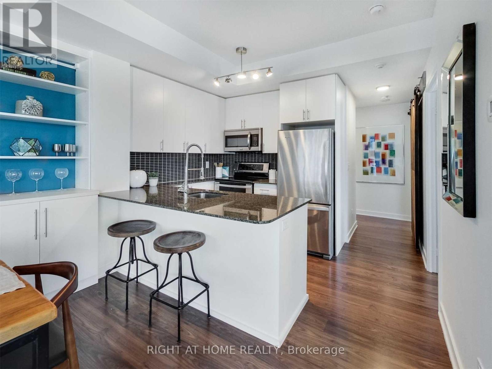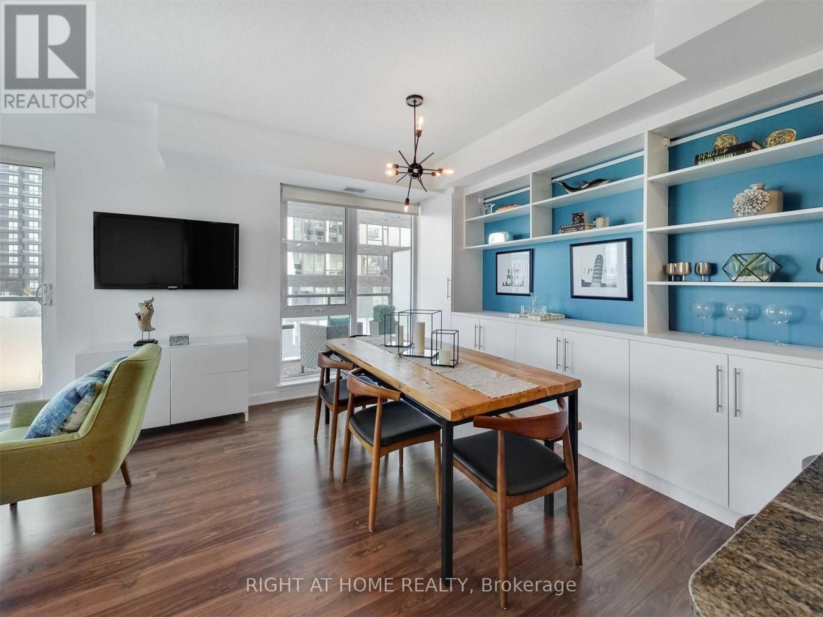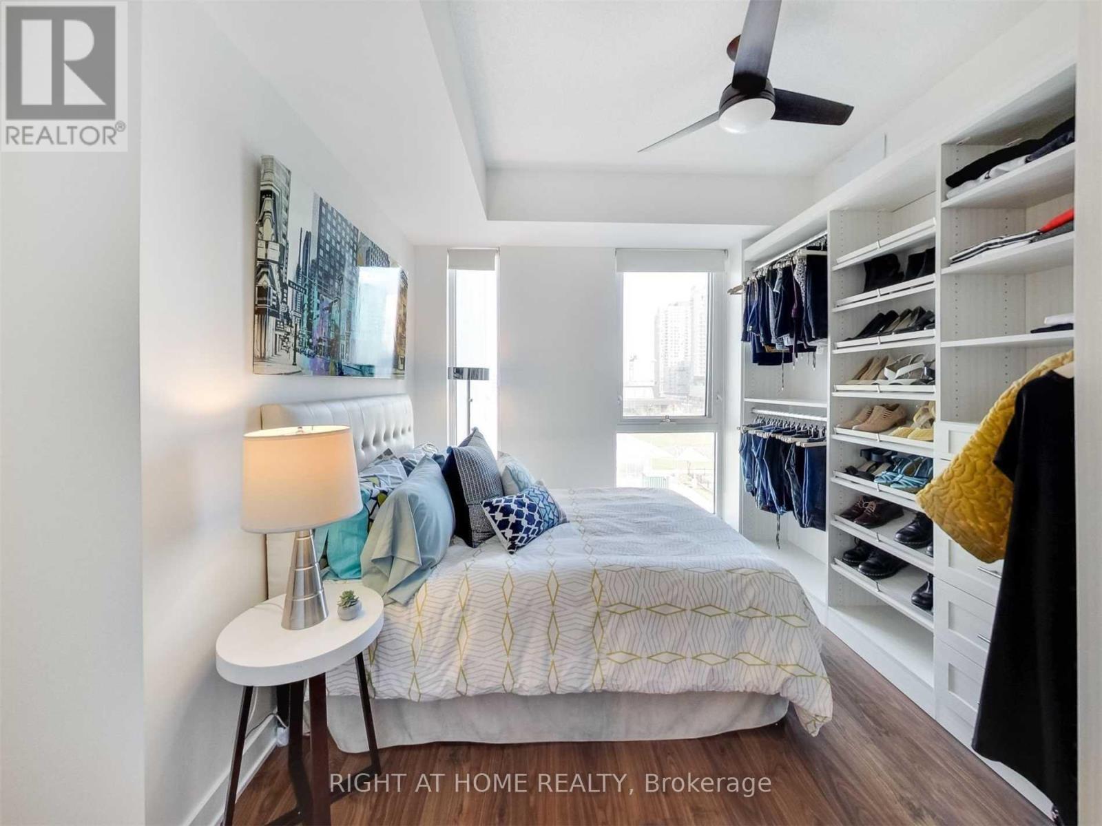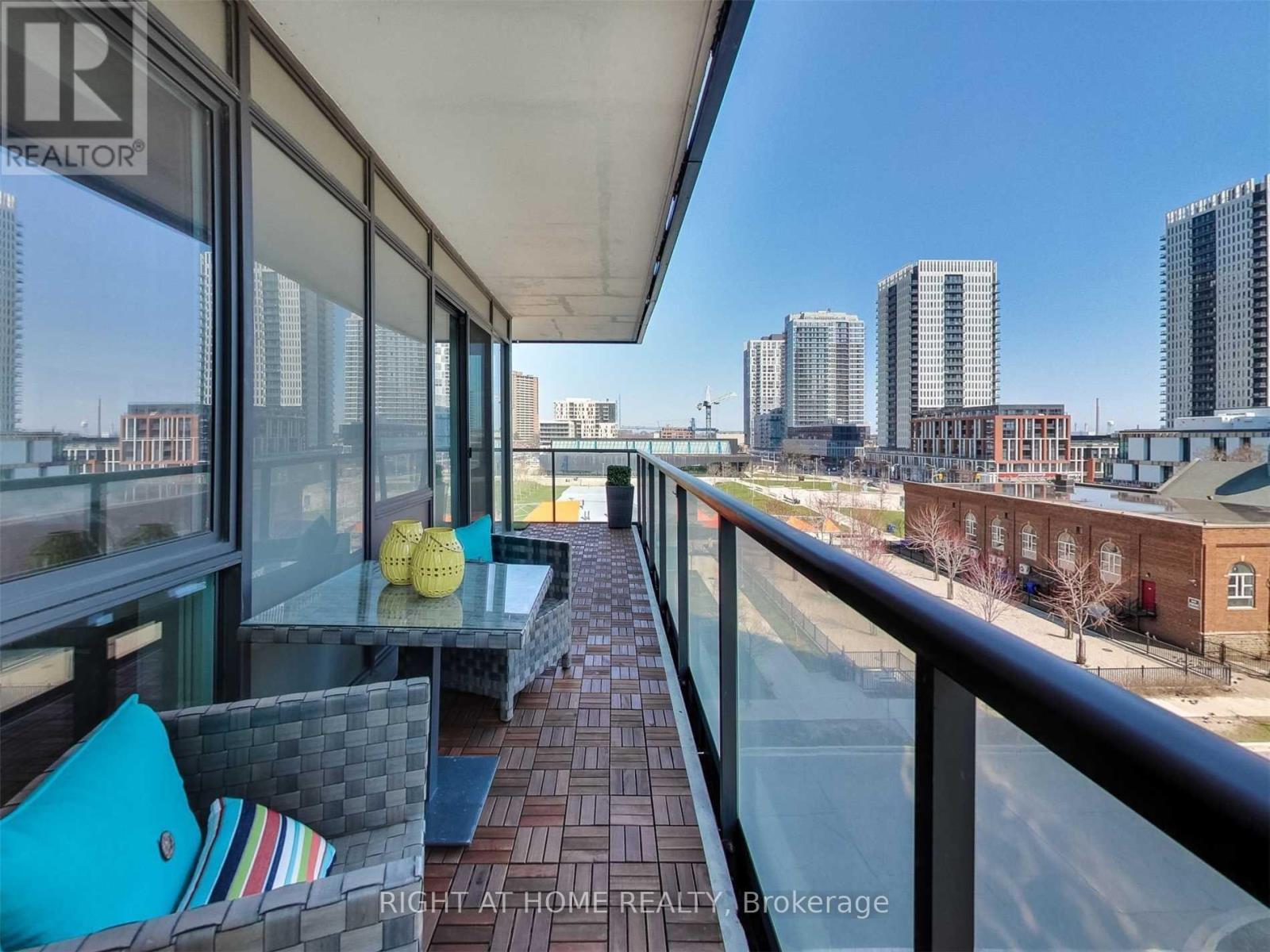 Bright & Spacious 2 Bedroom + Large Den (Easily a 3rd Bedroom, TV Room, or Home Office). Enjoy panoramic southeast views overlooking a beautiful park from your ~200 sq ft wraparound terrace-perfect for morning coffee or sunset lounging or gatherings. This sun-drenched suite features floor-to-ceiling windows, 9-ft ceilings, and a thoughtfully designed open-concept layout with generous living and dining space and a walkout to the terrace. The modern kitchen offers stainless steel appliances, granite countertops, and ample storage. You'll love the custom-built-in shelving in every closet, providing incredible storage throughout the unit. Stylish finishes include a sliding barn door that adds character and function. Residents enjoy access to a stunning rooftop terrace and premium amenities. Unbeatable location-steps to transit, groceries, restaurants, and quick highway access.This is city living with space, light, and views-don't miss it. (id:64974)