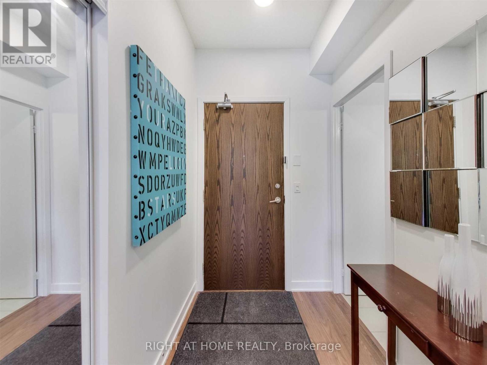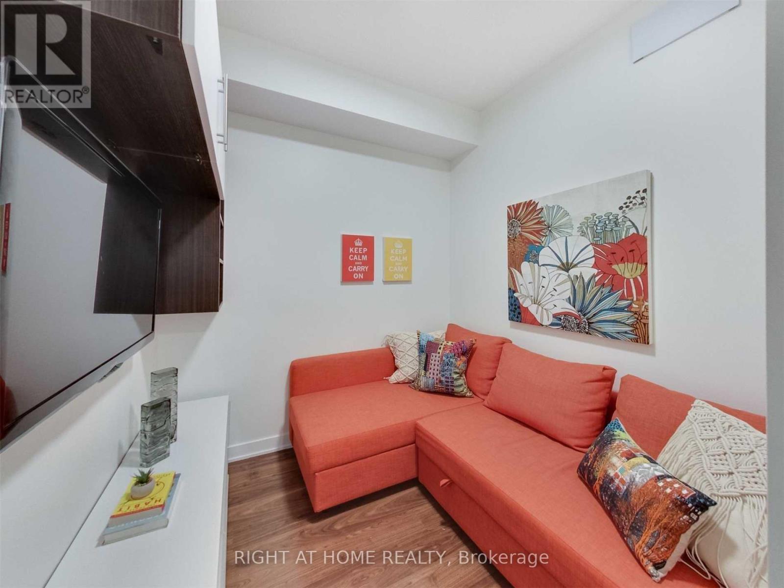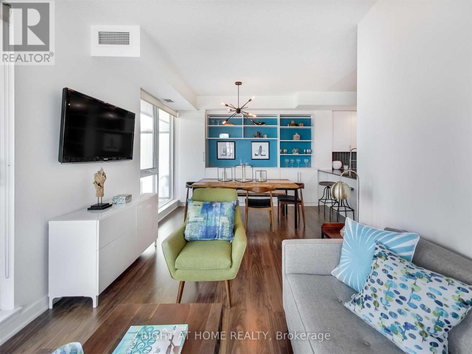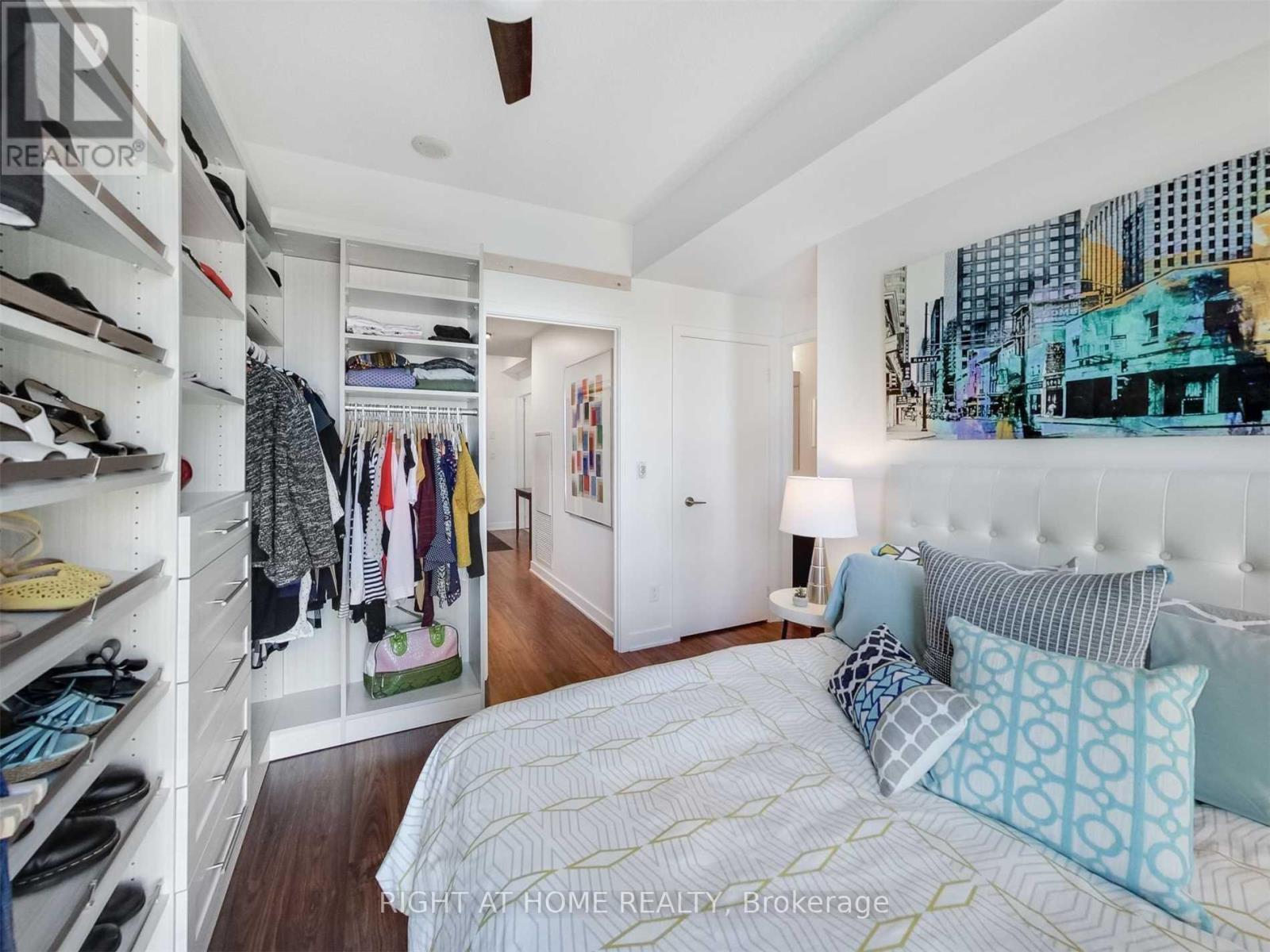Bright & Spacious 2 Bedroom + Large Den (Easily a 3rd Bedroom, TV Room, or Home Office). Enjoy panoramic southeast views overlooking a beautiful park from your ~200 sq ft wraparound terrace-perfect for morning coffee or sunset lounging or gatherings. This sun-drenched suite features floor-to-ceiling windows, 9-ft ceilings, and a thoughtfully designed open-concept layout with generous living and dining space and a walkout to the terrace. The modern kitchen offers stainless steel appliances, granite countertops, and ample storage. You'll love the custom-built-in shelving in every closet, providing incredible storage throughout the unit. Stylish finishes include a sliding barn door that adds character and function. Residents enjoy access to a stunning rooftop terrace and premium amenities. Unbeatable location-steps to transit, groceries, restaurants, and quick highway access.This is city living with space, light, and views-don't miss it. (id:64974)