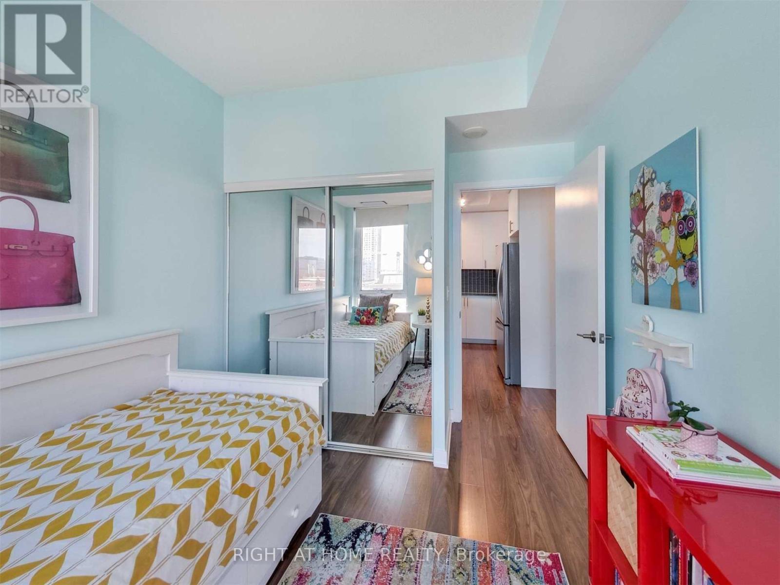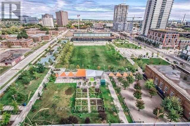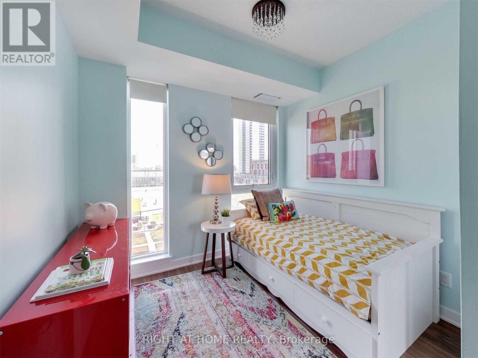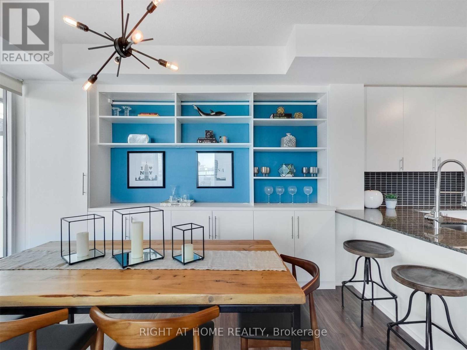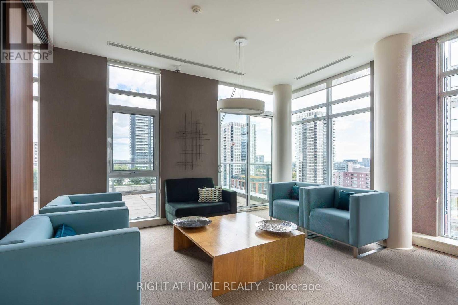 Bright & Spacious 2 Bedroom + Large Den (Easily a 3rd Bedroom, TV Room, or Home Office). Enjoy panoramic southeast views overlooking a beautiful park from your ~200 sq ft wraparound terrace-perfect for morning coffee or sunset lounging or gatherings. This sun-drenched suite features floor-to-ceiling windows, 9-ft ceilings, and a thoughtfully designed open-concept layout with generous living and dining space and a walkout to the terrace. The modern kitchen offers stainless steel appliances, granite countertops, and ample storage. You'll love the custom-built-in shelving in every closet, providing incredible storage throughout the unit. Stylish finishes include a sliding barn door that adds character and function. Residents enjoy access to a stunning rooftop terrace and premium amenities. Unbeatable location-steps to transit, groceries, restaurants, and quick highway access.This is city living with space, light, and views-don't miss it. (id:64974)