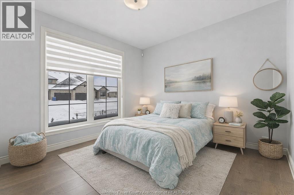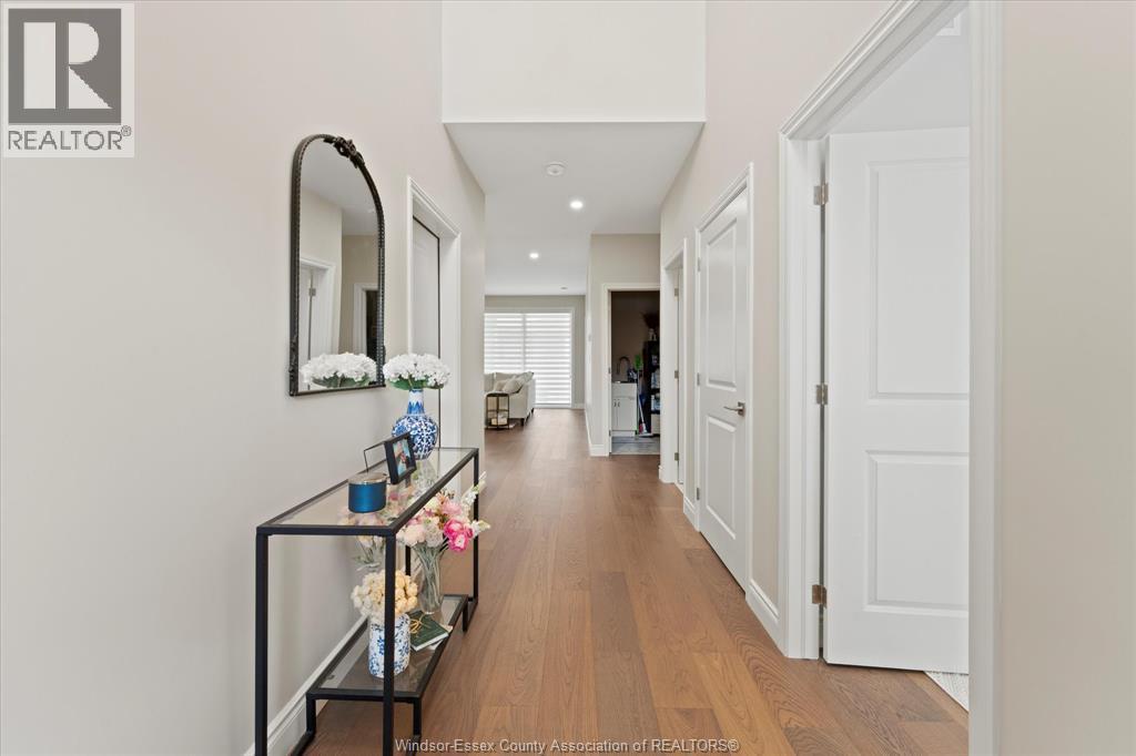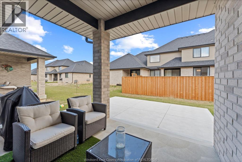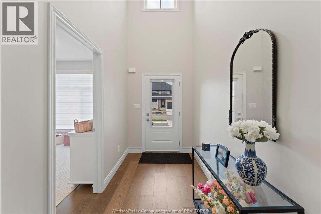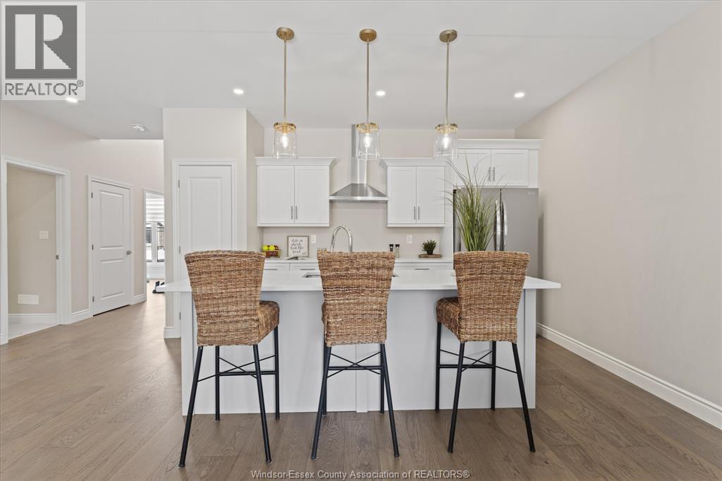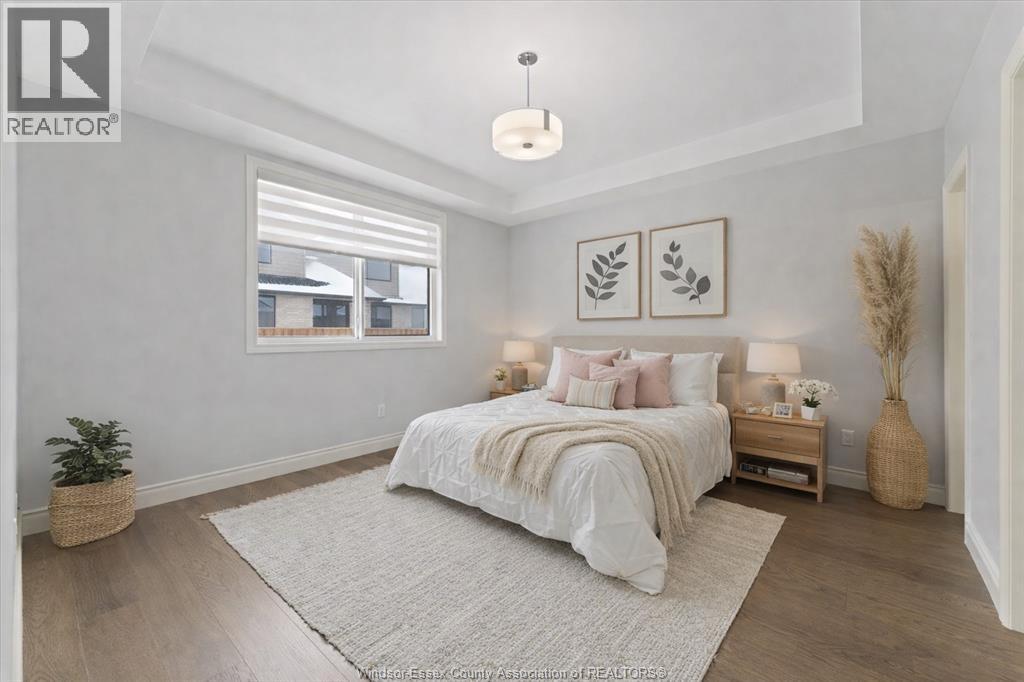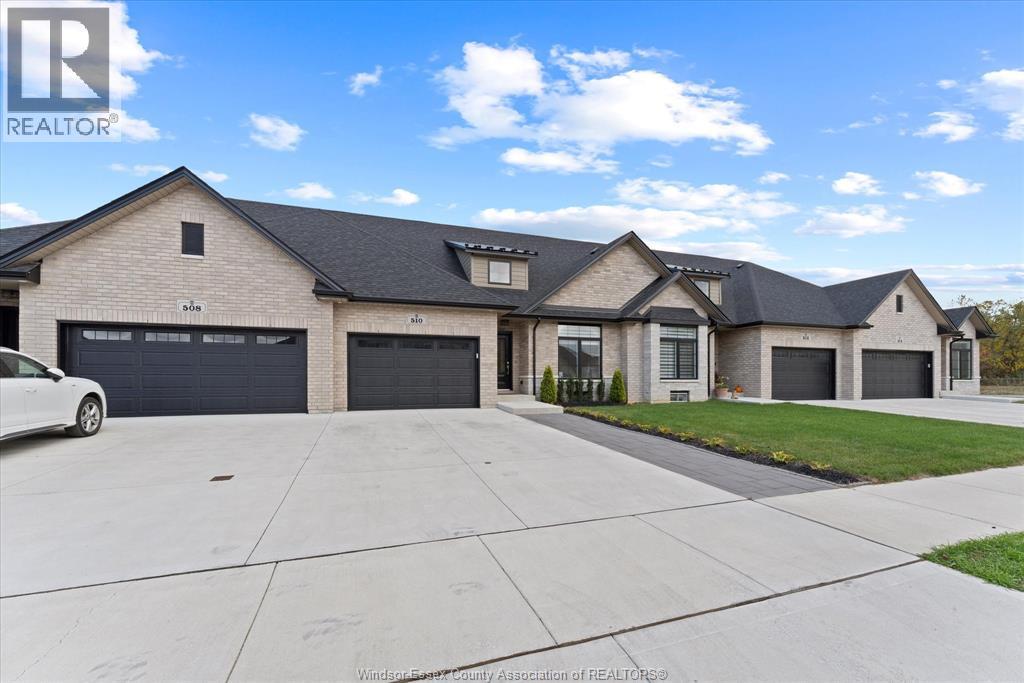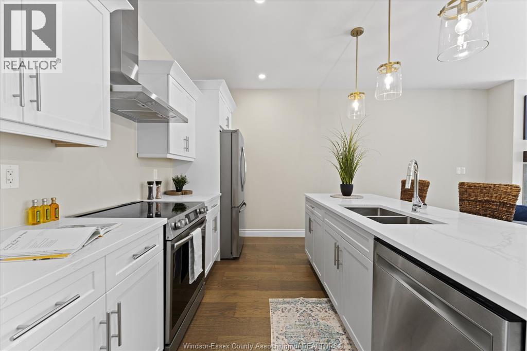 Quality built by Everjonge Homes, this townhome showcases luxury finishes and 9 ft ceilings!!! This beautifully landscaped, 3-year-new home offers 1,255 sq. ft. of thoughtfully designed living space, featuring 2 spacious bedrooms and 2 full bathrooms, including a private ensuite off the primary. Both bedrooms include walk-in closets for added convenience. Enjoy modern finishes throughout, from the bright white kitchen w/ upgraded hardware, quartz countertops and all stainless-steel appliances to the stylish fixtures, cabinetry, flooring and trim. The living room features a cozy gas fireplace w/ custom wood mantle and beautiful hardwood floors, creating a warm, inviting atmosphere. Step outside to both a covered patio and extended open patio with semi-private yard, perfect for relaxing or entertaining. The full basement offers endless potential with a rough-in bath and egress window. Just minutes to historical Amherstburg. (id:64974)
