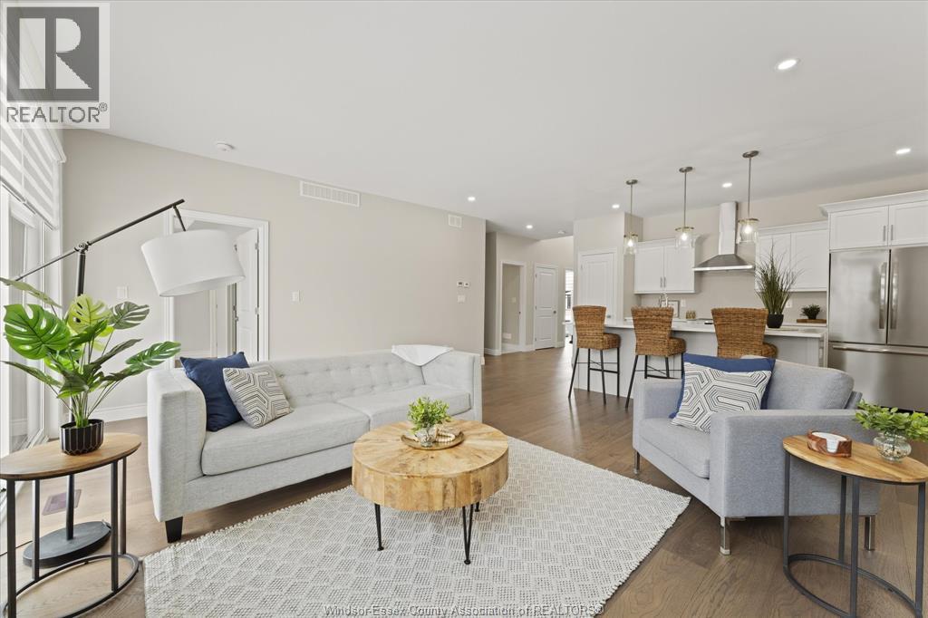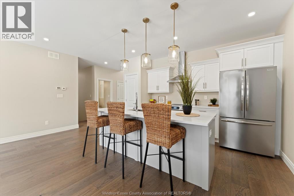 Quality built by Everjonge Homes, this townhome showcases luxury finishes and 9 ft ceilings!!! This beautifully landscaped, 3-year-new home offers 1,255 sq. ft. of thoughtfully designed living space, featuring 2 spacious bedrooms and 2 full bathrooms, including a private ensuite off the primary. Both bedrooms include walk-in closets for added convenience. Enjoy modern finishes throughout, from the bright white kitchen w/ upgraded hardware, quartz countertops and all stainless-steel appliances to the stylish fixtures, cabinetry, flooring and trim. The living room features a cozy gas fireplace w/ custom wood mantle and beautiful hardwood floors, creating a warm, inviting atmosphere. Step outside to both a covered patio and extended open patio with semi-private yard, perfect for relaxing or entertaining. The full basement offers endless potential with a rough-in bath and egress window. Just minutes to historical Amherstburg. (id:64974)