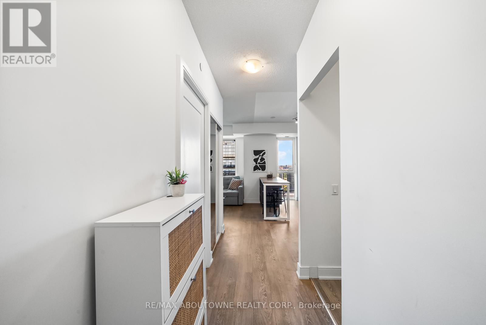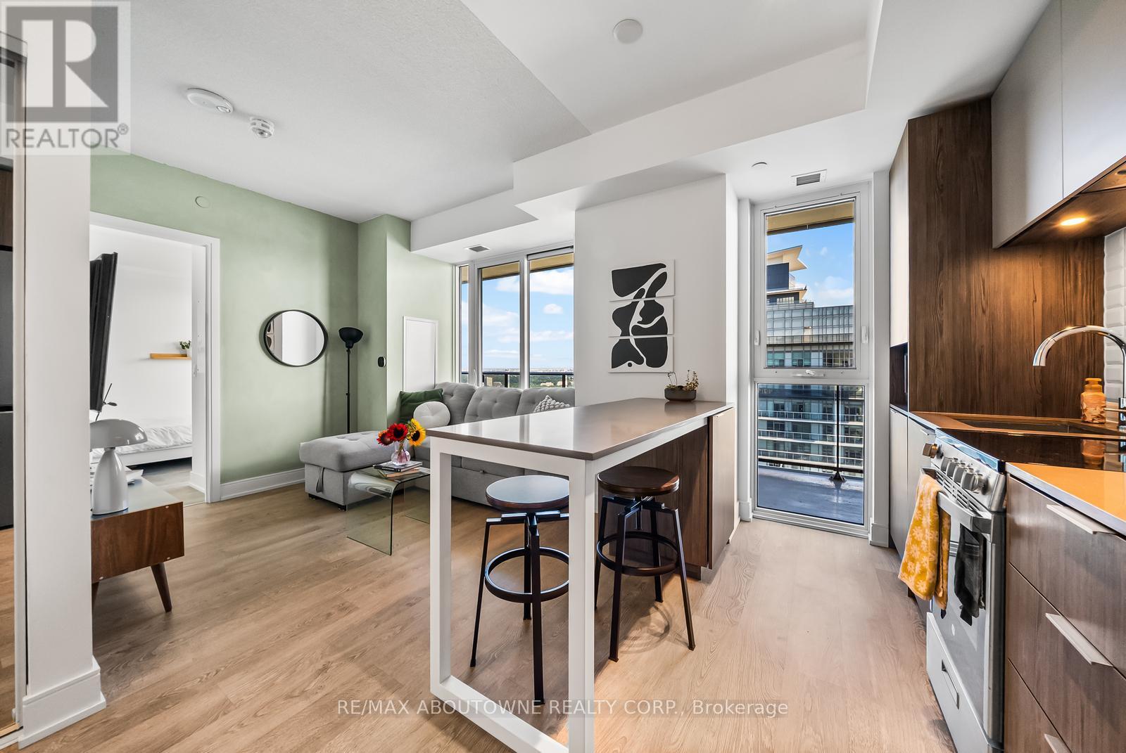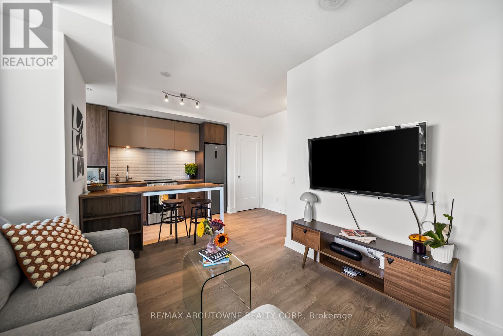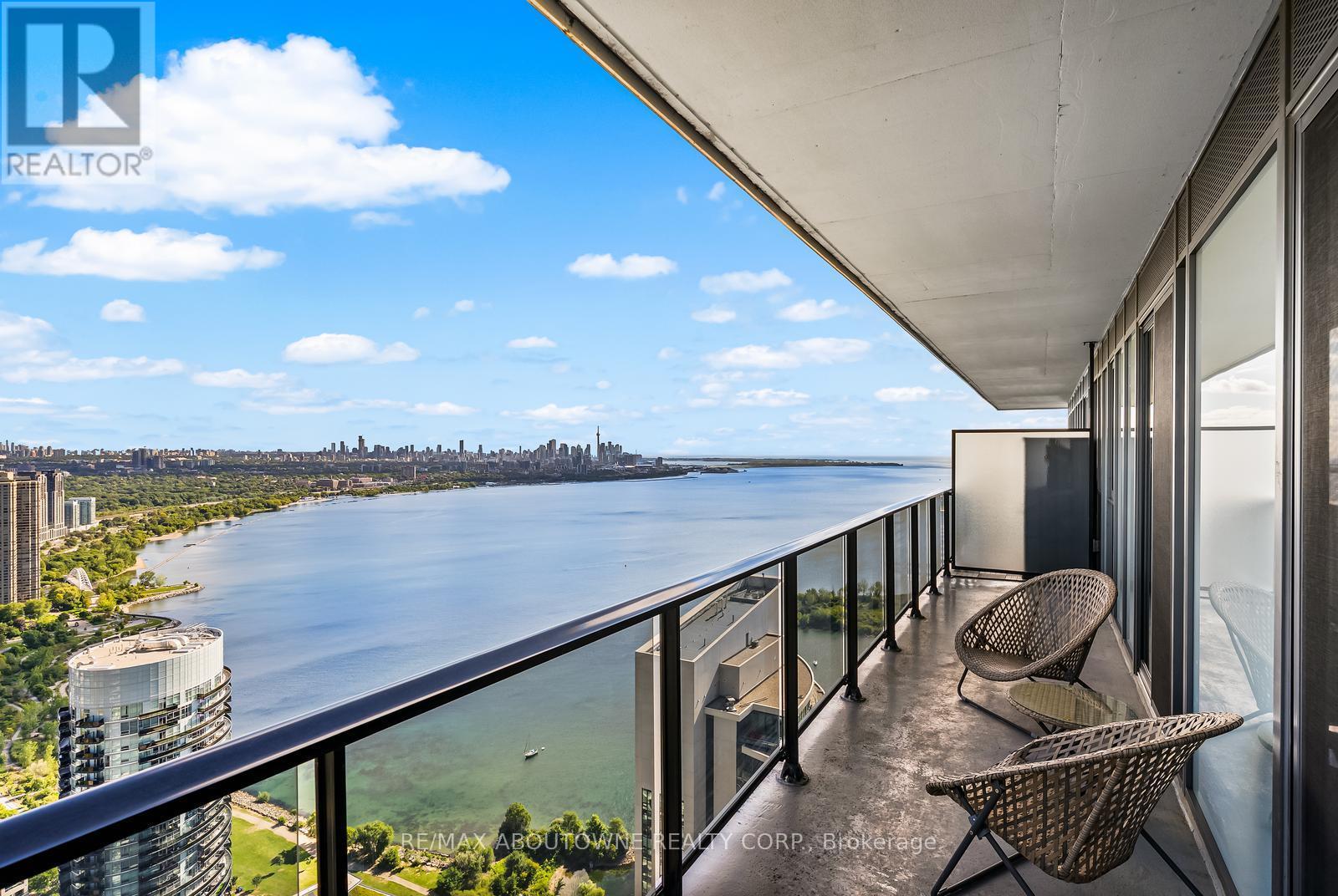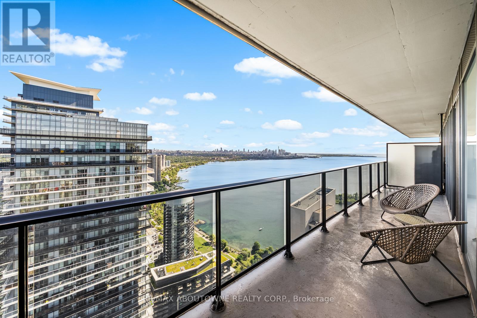 Welcome to Vita on the Lake, where luxury living meets an unparalleled waterfront lifestyle. Perched on the 51st floor, this one-bedroom plus den residence offers breathtaking, unobstructed panoramic views that sweep across Lake Ontario, the downtown Toronto skyline, and the Humber Bay shoreline. Every glance out of the floor-to-ceiling windows is a reminder that you are living above it all, surrounded by light, water and sky. With approximately 615 square feet of thoughtfully designed interior space and an oversized 165 sq ft balcony, this suite is perfect for both everyday living and entertaining. The open-concept layout blends a modern kitchen complete with quartz countertops, integrated appliances, and sleek cabinetry with a bright living and dining area. The versatile den provides an ideal space for a home office, nursery, or guest bedroom, and two spa-inspired bathrooms. This unit also includes one parking space and one locker for added convenience. Whether you're relaxing on your balcony watching the sunrise, hosting friends against a glittering skyline backdrop, or enjoying lakeside trails right outside your door, A seamless blend of lakeside calm and downtown energy. Enjoy premium amenities including 24-hour concierge service, an outdoor pool, sauna, fully equipped fitness and yoga studios, elegant party and dining rooms, and comfortable guest suites for visiting friends and family. Located in Toronto's coveted Humber Bay Shores community, you are just steps to waterfront parks, the scenic boardwalk, popular cafés, and convenient shopping. TTC, Metro, and Mimico GO Station are moments away, providing quick connections to downtown, while the Gardiner Expressway and QEW offer effortless access to the rest of the city. (id:64974)