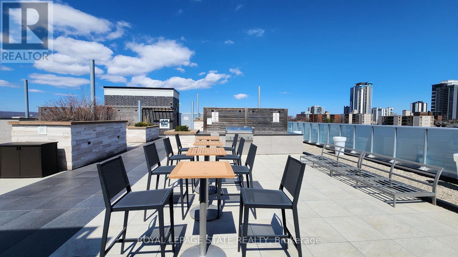 This boutique condo is situated in the very heart of Locke Street's lively village. Boasting an elite 97 Walk Score, close to shops, cafes & restaurants. The Rosemount floor plan is an open concept space defined by 9 ft ceilings and floor to ceiling panoramic windows. The interior is finished with premium 7 " wide-plank laminate flooring equipped with an acoustic underpad for maximum privacy and comfort. The modern kitchen features granite countertops, breakfast bar, tile backsplash & stainless steel appliances. The unit also includes in suite laundry, private balcony, storage locker and a dedicated underground parking space. The lifestyle at 101 Locke extends far beyond the walls of the suite with incredible amenities. Residents enjoy exclusive access to a private indoor rooftop lounge and bar, the perfect vantage point for taking in breathtaking South-West views of the city and the Escarpment. The experience continues outdoors on the expansive Rooftop Terrace, featuring a stone fireplace, BBQ stations, and open air lounge areas. Fitness lovers can cancel their gym memberships thanks to the Skyline Fitness Center, which offers free weights, cardio equipment, and a unique outdoor yoga & pilates deck, followed by the chance to decompress in the building's luxurious steam room. This is more than just a condo, it is a retreat in the center of it all. (id:64974)