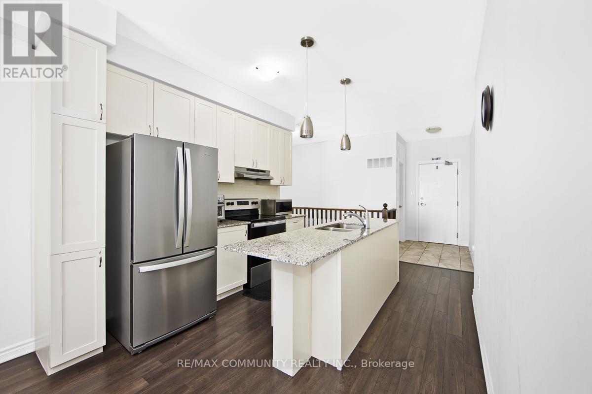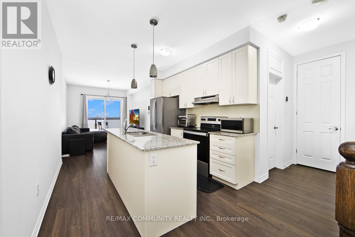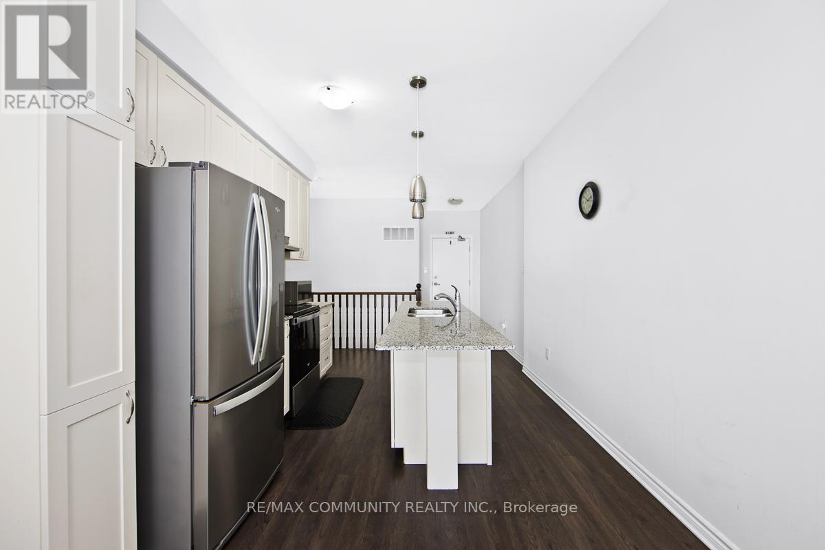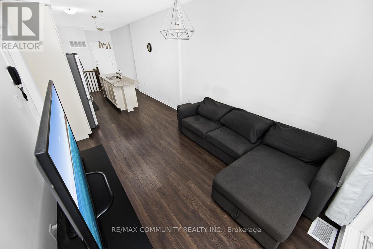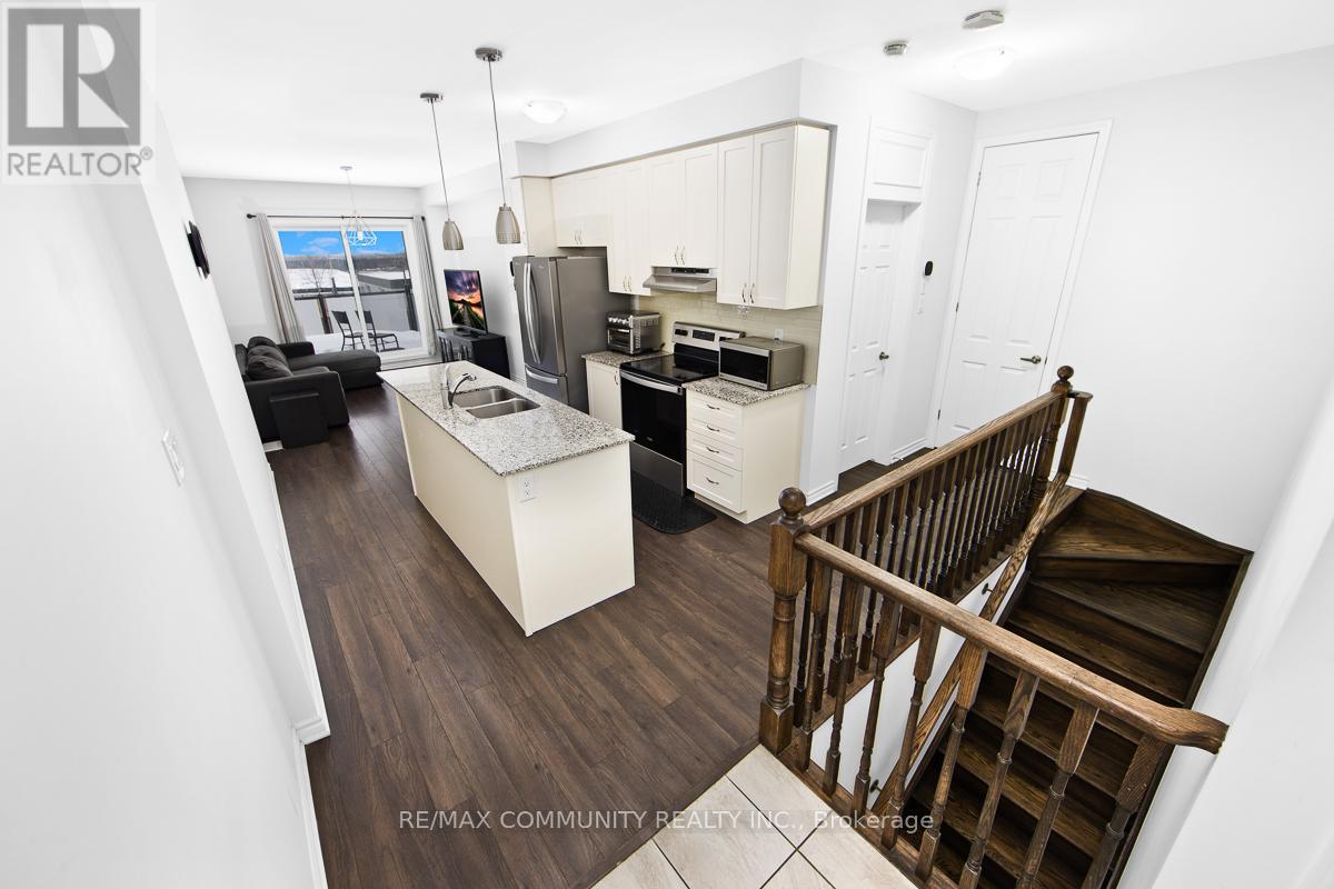Welcome to this bright and beautifully maintained stacked townhouse in desirable Pickering.Offering approximately 1,190 sq. ft. of finished living space (859 sq. ft. above grade plus 333sq. ft. lower level as per MPAC), this home delivers comfort, functionality, and modern style.The open-concept main level features 9-foot ceilings, laminate flooring throughout, and acontemporary kitchen with granite counters overlooking the living and dining area. Walk out toyour private terrace, ideal for relaxing or entertaining.The main level includes a spacious primary bedroom with a 3-piece ensuite, a second bedroom,and an additional 4-piece bathroom. The finished lower level offers a third bedroom with itsown 3-piece ensuite, providing excellent privacy for guests, extended family, or a home officesetup.Includes attached garage with inside entry plus driveway parking (2 total spaces). Lowmaintenance fees of $312.63/month cover common elements and building insurance.Conveniently located near Taunton Rd & Burkholder Dr, close to schools, parks, shopping,transit, and major highways. Perfect for families, first-time buyers, or investors seeking aturnkey opportunity in a growing community.(Listing Photos Are Illustrated With Virtual Staging). (id:64974)