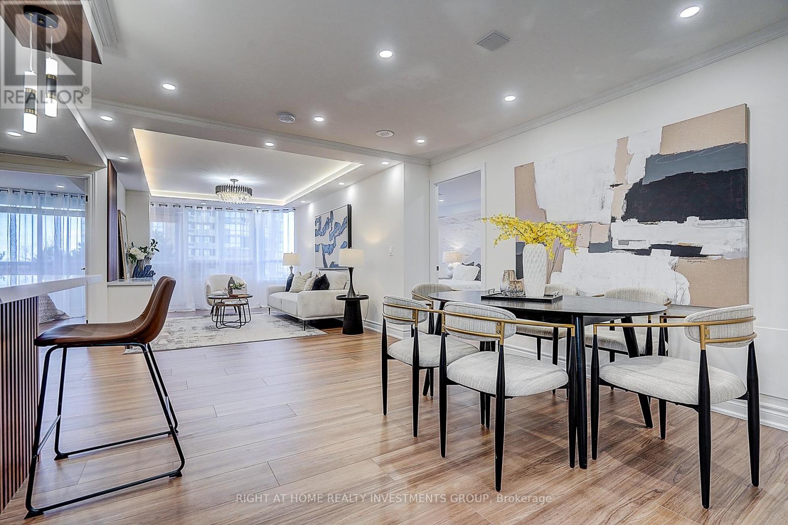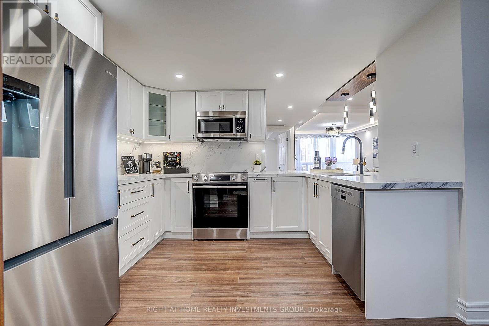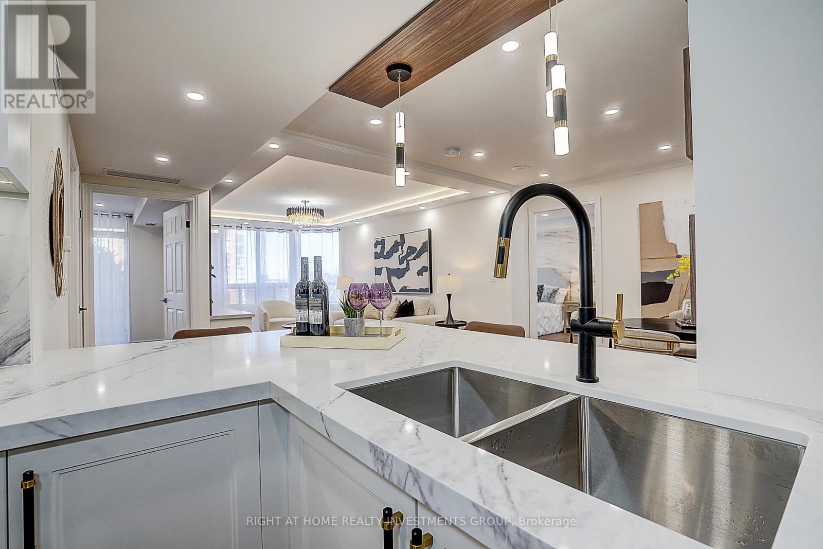 Fully Renovated Luxury Condo | 2+Den | 2 Bath | Prime North York LocationLuxurious Tridel-built 2+1 bedroom suite with a rare oversized terrace! Welcome to this spacious, fully renovated residence in the prestigious Tridel "Skymark" complex. This bright corner unit offers a desirable northeast exposure, filling the home with natural light, and features an oversized terrace - perfect for morning coffee or entertaining.The unit boasts generously sized principal rooms, a large primary bedroom with a private ensuite, one parking space, and a versatile den/family room that can easily be converted back into a third bedroom.Thoughtfully redesigned with style and functionality in mind, this turnkey home showcases a bright open-concept layout with high-end waterproof flooring, sleek LED lighting, and elegant pot lights throughout.The designer kitchen is equipped with premium appliances and complemented by high-quality, Canadian-made faucets and finishes, offering both sophistication and durability.Relax in spa-inspired bathrooms featuring a stunning freestanding tub and modern finishes. The spacious primary suite includes a walk-in closet with ample storage, while the den provides an ideal space for a home office or guest room.Enjoy 24-hour concierge service and access to exceptional amenities, including indoor and outdoor pools, gym, racquetball and squash courts, tennis court, hot tub, saunas, billiards room, BBQ area, party room, library, and guest suites.Unbeatable location just steps to TTC, with easy access to Highway 404, Fairview Mall, schools, parks, and major shopping.Modern, bright, and move-in ready - a perfect opportunity for comfortable luxury living. (id:64974)
