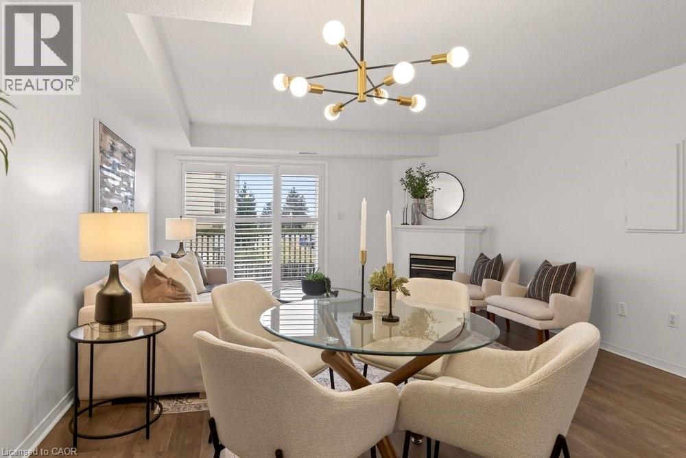 From the moment you arrive, this unit, offers a comfortable, low-maintenance way of living in a walkable and well-connected Stoney Creek neighbourhood, appealing both as a place to call home and as a smart long-term investment. With a practical multi-level layout, the home opens into a bright living and dining space where natural light creates an inviting atmosphere for everyday living, working from home, or simply relaxing. The living area features a gas fireplace and opens directly to a private balcony, extending the living space and making it easy to enjoy the outdoors. The staircases are carpeted for comfort, while the remainder of the home features updated hard-surface flooring, giving the space a clean, modern feel that’s easy to maintain. The eat-in kitchen is functional and well laid out, offering ample cabinetry and counter space to support daily routines. A convenient main-level powder room adds everyday practicality. Upstairs, two well-proportioned bedrooms and a full four-piece bathroom provide privacy and a quiet separation from the main living area, along with the convenience of bedroom-level laundry. Set within a quiet, well-managed complex, this property is designed for low-maintenance ownership. Monthly condo fees include parking, with one assigned parking space (P19), as well as water, building insurance, common elements, ground maintenance, and snow removal. Beyond the home itself, the location adds real everyday value. Public transit is just steps away, with parks, schools, and shopping close at hand. Dewitt Park and nearby recreation facilities are within walking distance, while quick access to Highway 8 and the QEW makes commuting easy. Mohawk College’s Stoney Creek Campus is just minutes away, adding to the area’s day-to-day vibrancy. Whether you’re looking for a comfortable place to settle into or a property with dependable income potential, this end-unit townhome offers a thoughtful balance of livability, location, and long-term value. (id:64974)