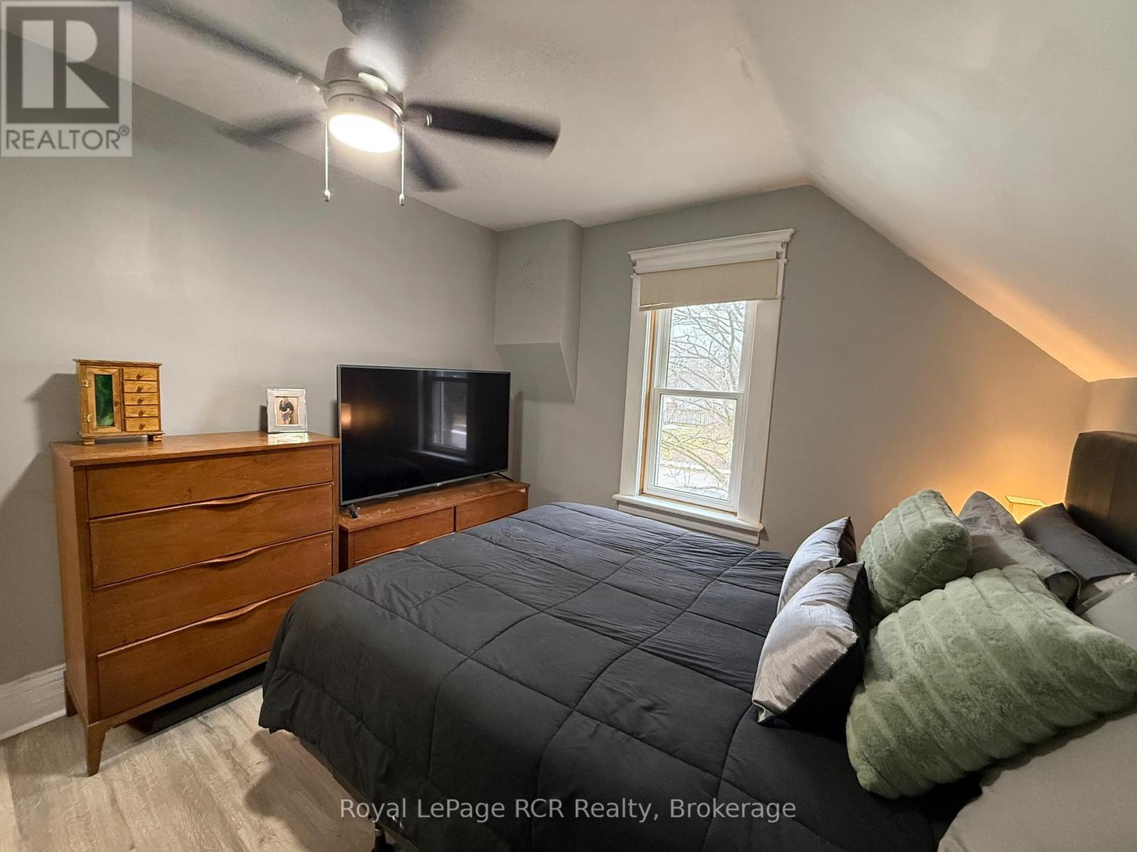 3 bedroom brick home in one of Owen Sound's best neighbourhoods! Featuring a covered front porch, a spacious entrance with good closet space and nicely proportioned living areas including kitchen, living room and dining room. There is also a handy side entrance with immediate access to a 3 piece bath and a laundry room that doubles as a mudroom. The second level features 3 bedrooms and an updated 4 piece bath. Nice back yard with firepit, some privacy fencing and a shed 10x10. Parking for 3-4 vehicles. Recent updates include light fixtures, flooring, 2nd level bathroom, upgraded attic insulation, driveway paving. Efficient natural gas furnace and hot water, central air. Duncan McLellen Park and Timber McArthur Park at your doorstep. 2 minutes to LCBO, grocery stores and all east side amenities. Great location on a quiet street. (id:64974)