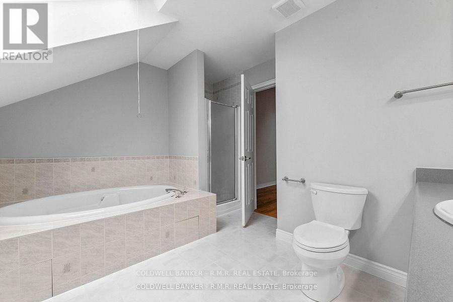 Welcome to this spacious newly renovated 3 bedroom 2 bathroom condo offering nearly 2,000 square feet of living space. The entire third floor is a dedicated primary suite with skylights and a 4 piece ensuite. Beautiful hardwood and tile flooring run throughout. The oversized eat in kitchen features new granite counters, ample cabinetry, and great workspace. A formal dining room allows room to host family and friends, and the large living room opens to a generous west facing balcony; perfect for sunsets. The location is exceptional with the YMCA and Cobourg Creek Golf Course seconds away, plus shopping, restaurants downtown and the beach all within minutes. Additional features include an attached garage and basement storage. Water garbage pickup snow removal and landscaping are included. Please note: Sorry- dogs are NOT permitted in this condo complex. (id:64974)
