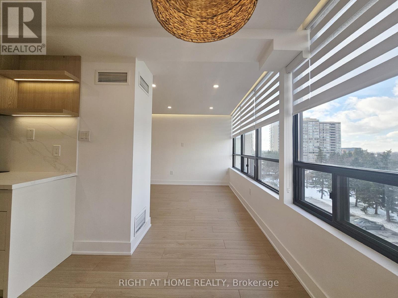 Welcome to this Professionally Designed and Fully Renovated Masterpiece in the Heart of Thornhill! This bright and spacious 2-bedroom, 2-bathroom suite offers an elevated living experience with a beautifully executed open-concept layout. The condo features trending floors throughout, smooth floating ceilings accented with LED rope lighting and pot lights, and custom built-in closets that add both style and functionality. The generous dining area includes a striking designer feature wall ideal for showcasing your best art, while the bright living room is enhanced with a custom built-in TV cabinet, a wall-mount plate surrounded by LED lighting, and an integrated office/den space that seamlessly extends the living area.The stunning Chef's kitchen is designed for both cooking and entertaining, complete with modern cabinetry, stainless steel appliances, quartz countertops, a stylish backsplash, and a separate breakfast area. The fully upgraded primary bedroom offers "His & Hers" closets and a luxurious 4-piece ensuite with a glass shower. The spacious second bedroom includes a custom double closet, and the suite is further enhanced by an ensuite laundry room, LED mirrors, upgraded plumbing fixtures, and custom zebra blinds.Located within walking distance to places of worship, pharmacies, Promenade Mall, the bus terminal, library, parks, schools, and grocery stores, the convenience is unparalleled. Residents enjoy a full range of amenities, including a gated entrance with 24-hour security, an outdoor pool, a fitness room, tennis and pickleball courts, a racquetball and squash court, a sauna, party, meeting, and recreation rooms, guest suites, and an upcoming concierge service. The lobby and hallways have all been recently remodelled and renovated, adding to the building's fresh and modern appeal. **The monthly maintenance fee covers heat, hydro, water, cable, central air conditioning, internet, and an alarm system, offering exceptional value and effortless living** (id:64974)