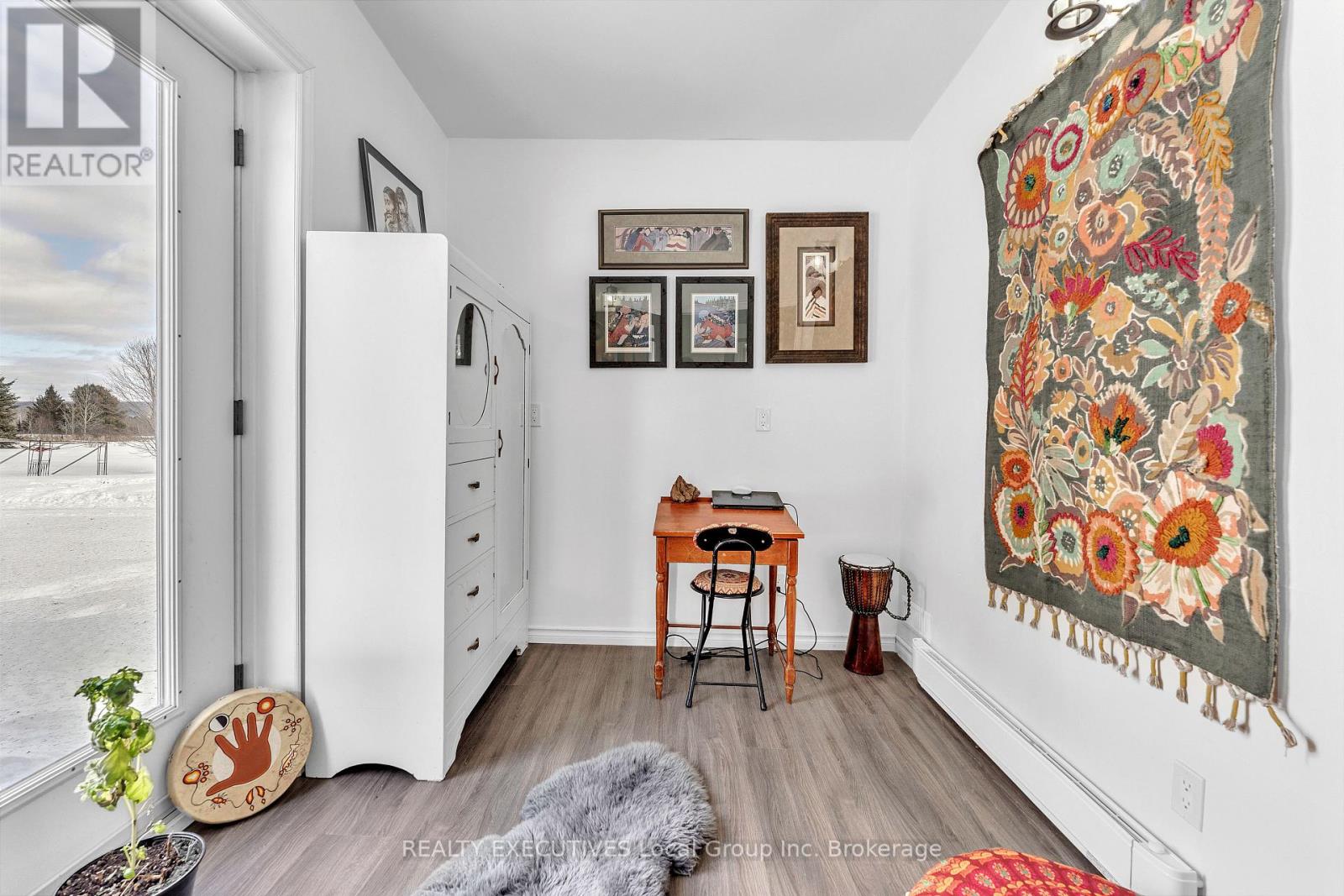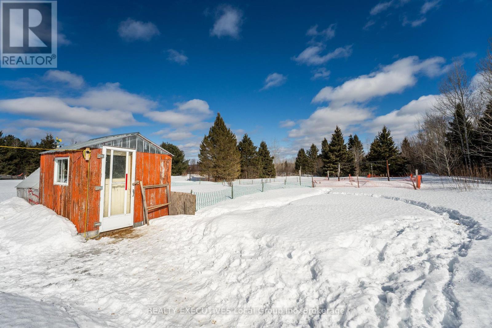 Nestled in the peaceful countryside of Rutherglen, just 20-30 minutes from North Bay, this charming farmhouse offers the perfect blend of rural tranquility and everyday convenience. Set on over 100 acres of picturesque land, the property provides endless opportunities to create your dream hobby farm, grow your own food, and embrace a self-sufficient lifestyle. The cozy home features three comfortable bedrooms and two full bathrooms, ideal for those seeking extra space for growing families. The two-story portion of the house is equipped with efficient boiler/radiant in-floor heating, delivering consistent warmth and energy-conscious comfort. In the inviting family room and welcoming entryway, an efficient woodburner adds both charm and supplemental heat, creating a warm and inviting atmosphere throughout the cooler months. Outside, the expansive acreage offers room for gardens, livestock, and recreation. A chicken coop is already in place, making it easy to enjoy fresh eggs from your own backyard, and wild blueberries, blackberries, raspberries, sunchokes and staghorn sumac make this property a forager's dream. Whether you envision cultivating crops, raising animals, or simply enjoying wide-open spaces, fresh stream and scenic views, this property provides the flexibility and privacy to make it your own. Affordable country living meets modern comfort in this serene farmhouse retreat-where peaceful surroundings and practical features come together to create a truly special place to call home. (id:64974)
