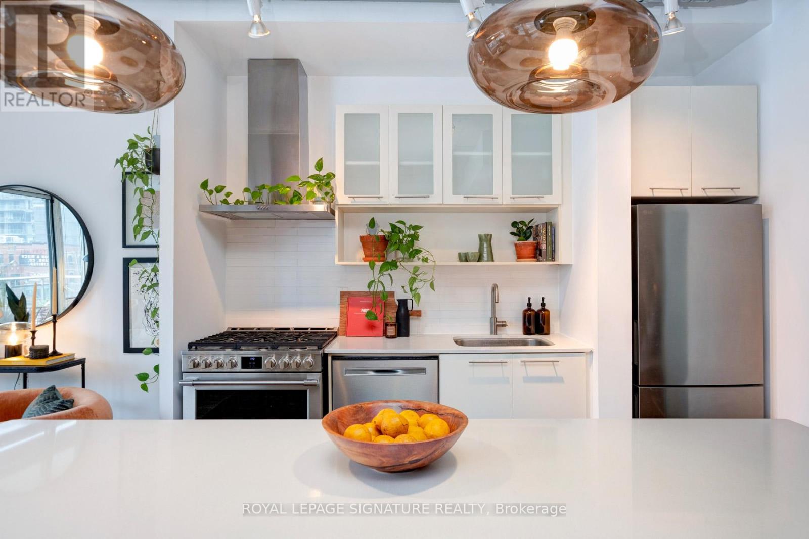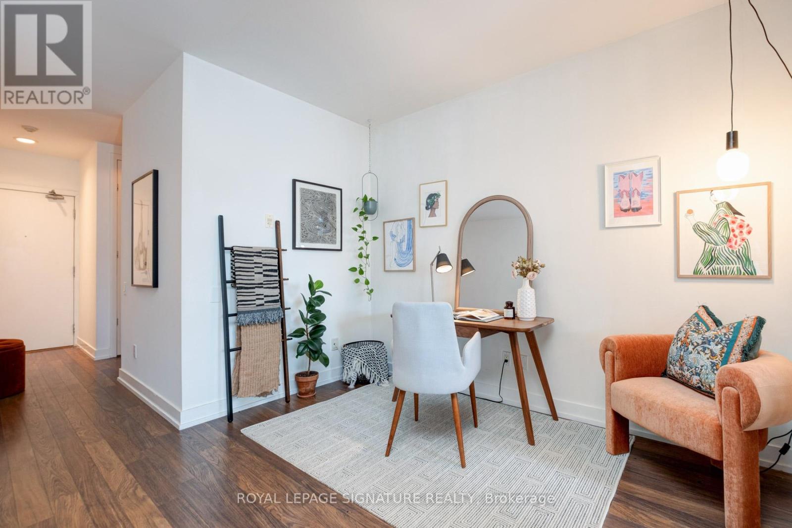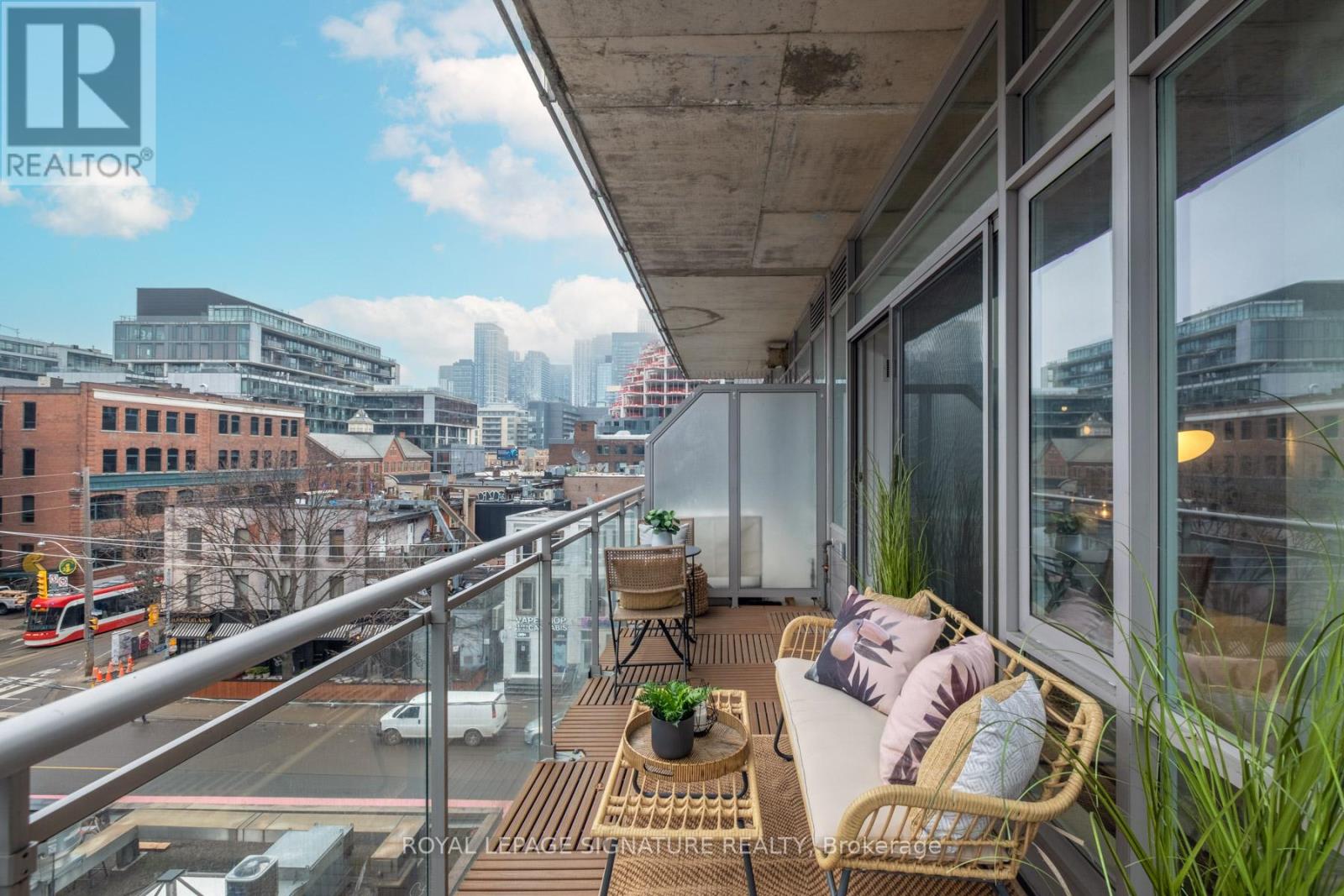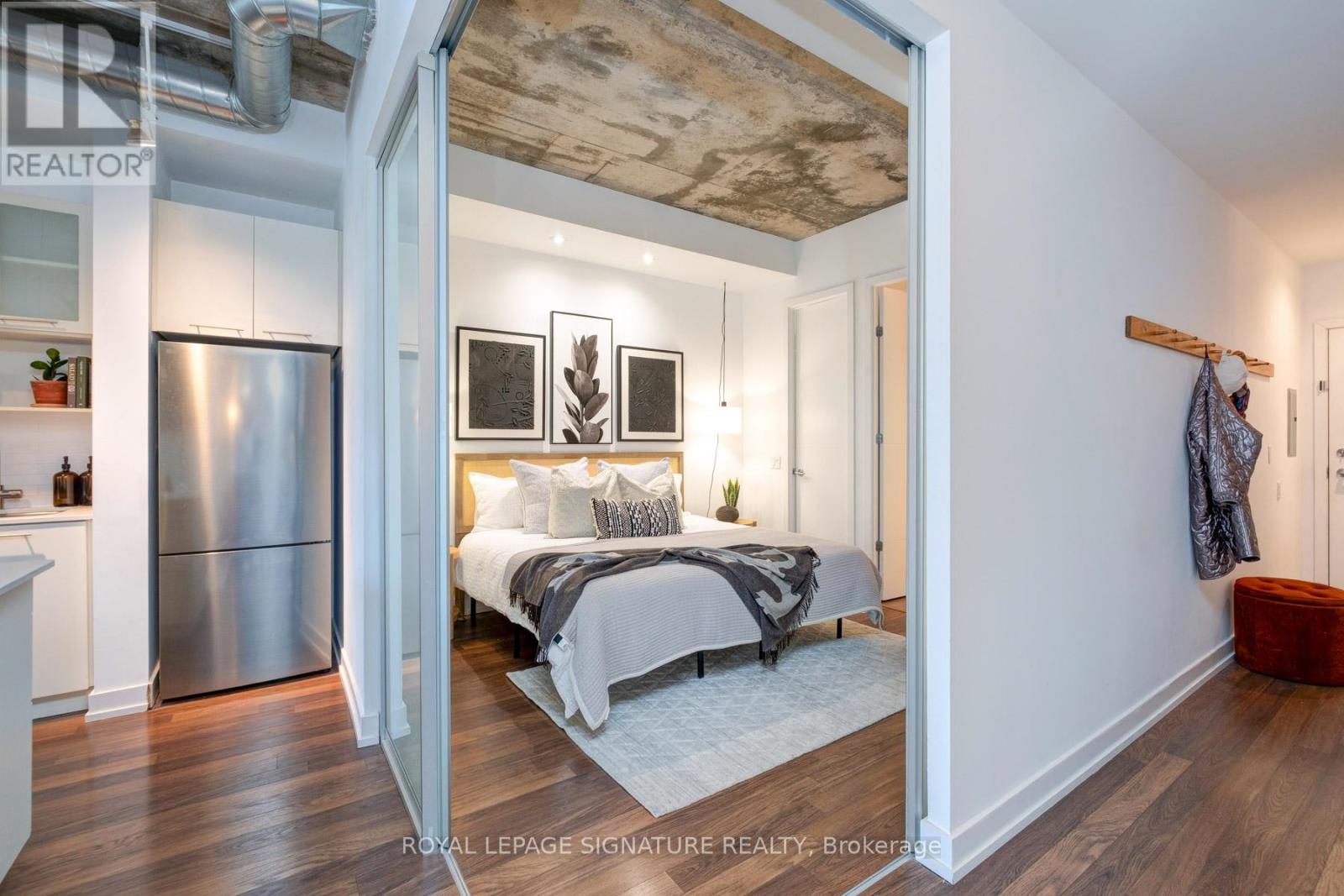 Where King West energy meets boutique loft living. A gorgeous suite designed for entertaining, relaxing, & enjoying the buzz of the city. Welcome to 66 Portland St Suite 513, a beautifully updated 1+1 bedroom, 2 bathroom loft offering 927 sqft. of thoughtfully designed living space in a prime boutique building. This industrial-chic yet warm & inviting suite offers the perfect balance of vibrant city living & peaceful retreat. Experience the best of both worlds - the vibrant energy of King West at your doorstep, with quieter neighbourhood streets just moments away. Designed for both entertaining and everyday living, the spacious layout showcases a true full-size dining area anchored by custom built-in shelving, creating the perfect setting for hosting. The beautifully updated kitchen features an oversized island, new appliances including a gas stove, & excellent storage. A separate, full-sized living room framed by floor-to-ceiling windows opens directly onto a large 130 sqft. balcony complete with a gas line for BBQing, creating a seamless indoor-outdoor flow. Whether entertaining friends or enjoying a quiet evening outside, the balcony feels like a natural extension of the living space. The generous den functions beautifully as a large home office, ideal for today's work-from-home lifestyle. The primary bedroom comfortably accommodates a king-sized bed & features a walk-in closet with custom built-ins & a private ensuite. A rare second bathroom adds convenience for guests which is a rare & standout feature. Thoughtful upgrades throughout include custom built-in storage in both the hallway closet & walk-in closet, along with window coverings, maximizing both functionality & style. This suite is complete with prime parking & a large locker. With its generous square footage & rare layout offering a full dining area, spacious kitchen, & separate living room, this suite truly lives like a home in the sky. A King West opportunity that you need to see for yourself. (id:64974)