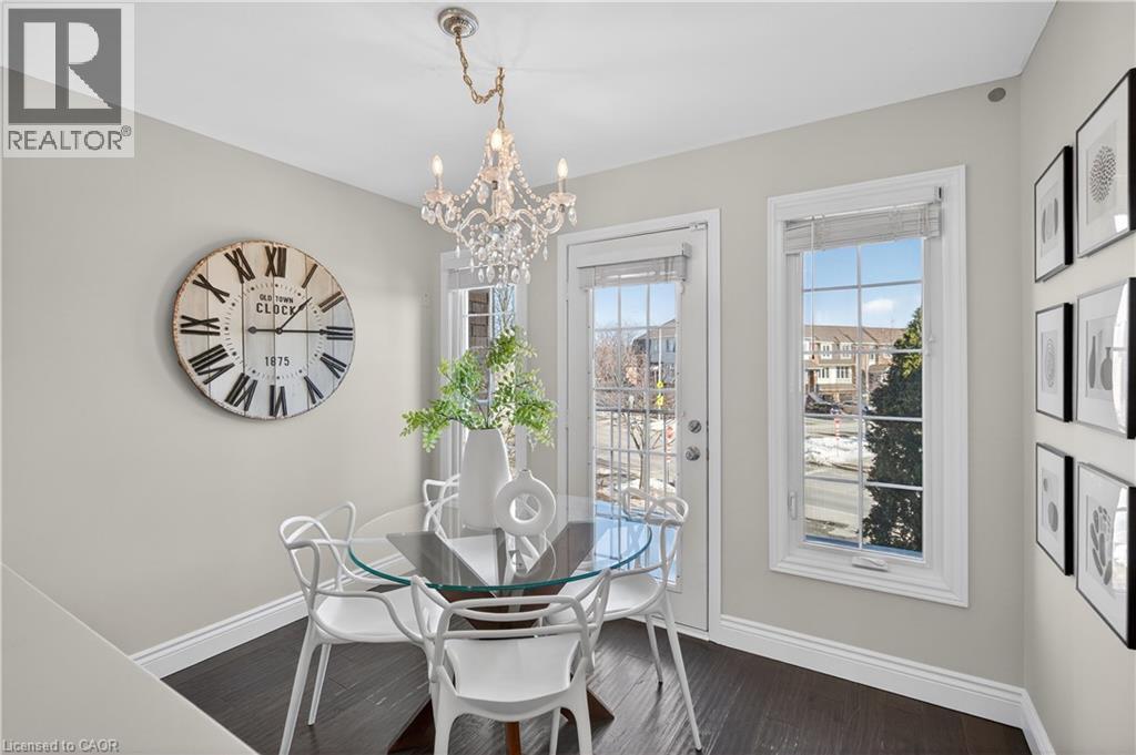 WELCOME HOME to this stunning 3 bedroom, 3 bathroom freehold townhome in Burlington, a perfect blend of tasteful design and functional living. The main level features an abundance of natural light, a modern kitchen with white shaker style cabinets and stainless steel appliances. An eat in kitchen with a breakfast bar is ideal for family dinners or entertaining friends. The primary suite includes a private ensuite bathroom, while two additional bedrooms and the homes full 4 piece bathroom offers comfort and privacy for family or guests. A finished basement with a walk out allows for summer evenings in the newly landscaped backyard. New composite deck, low maintenance garden beds and lush mature trees blooming in the warmer months make for the perfect outdoor retreat. Situated in the desirable neighborhood of the Orchard, just steps away from Orchard Park Public School, shopping, dining, walking trails and public transit. Having just replaced all windows and doors, 5135 Dryden Avenue is the perfect turn-key location to start your next chapter. (id:64974)