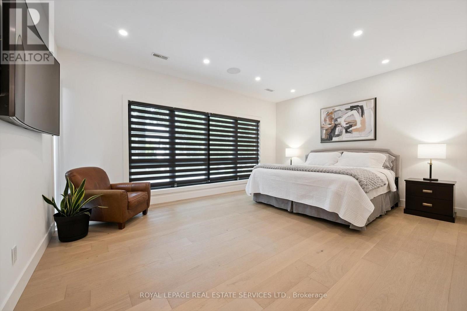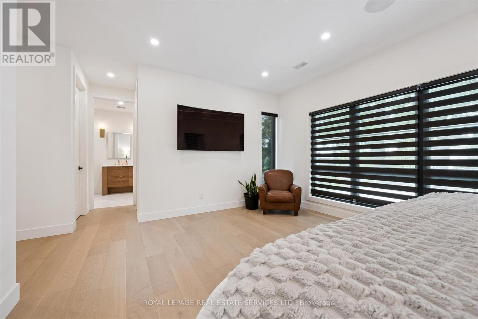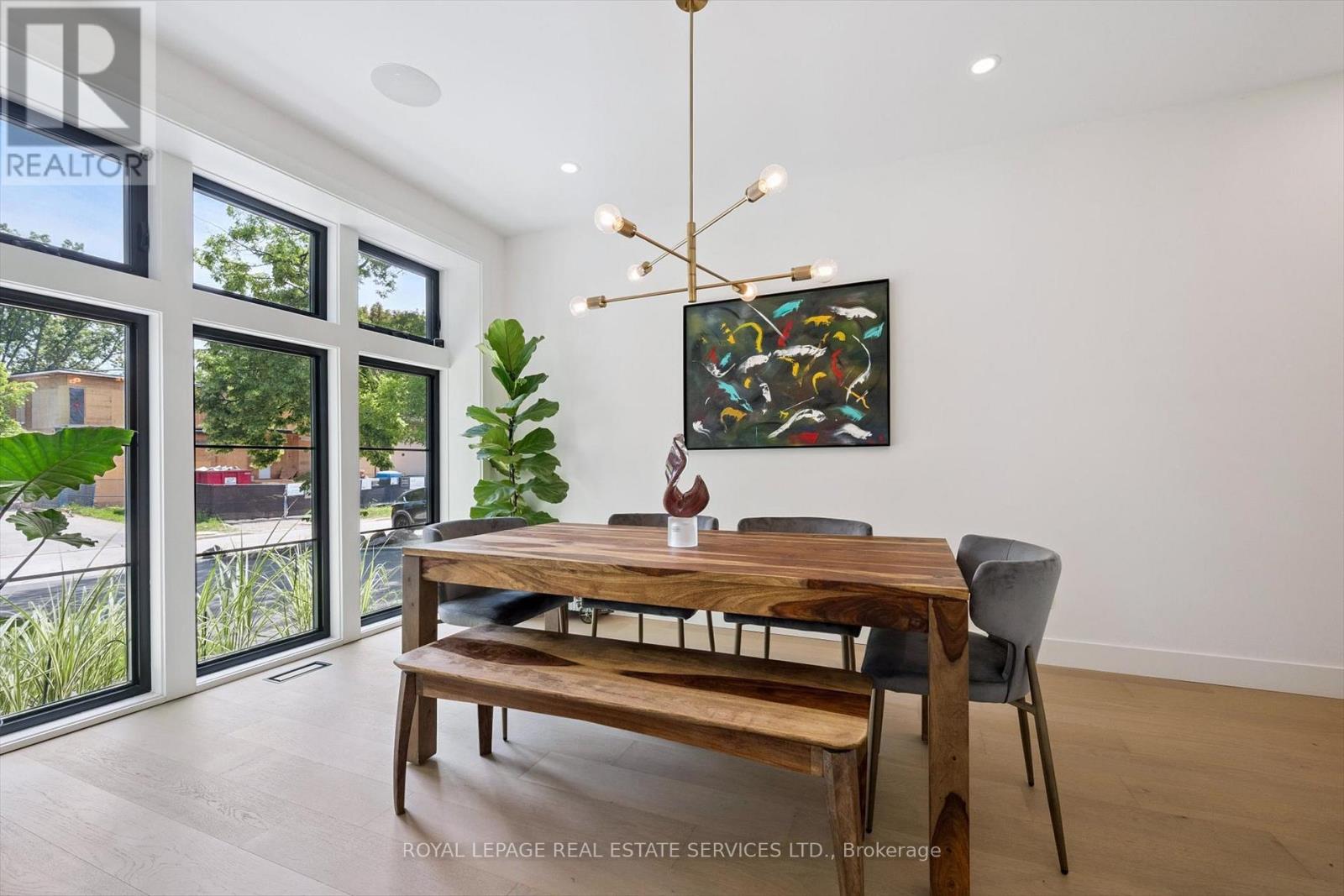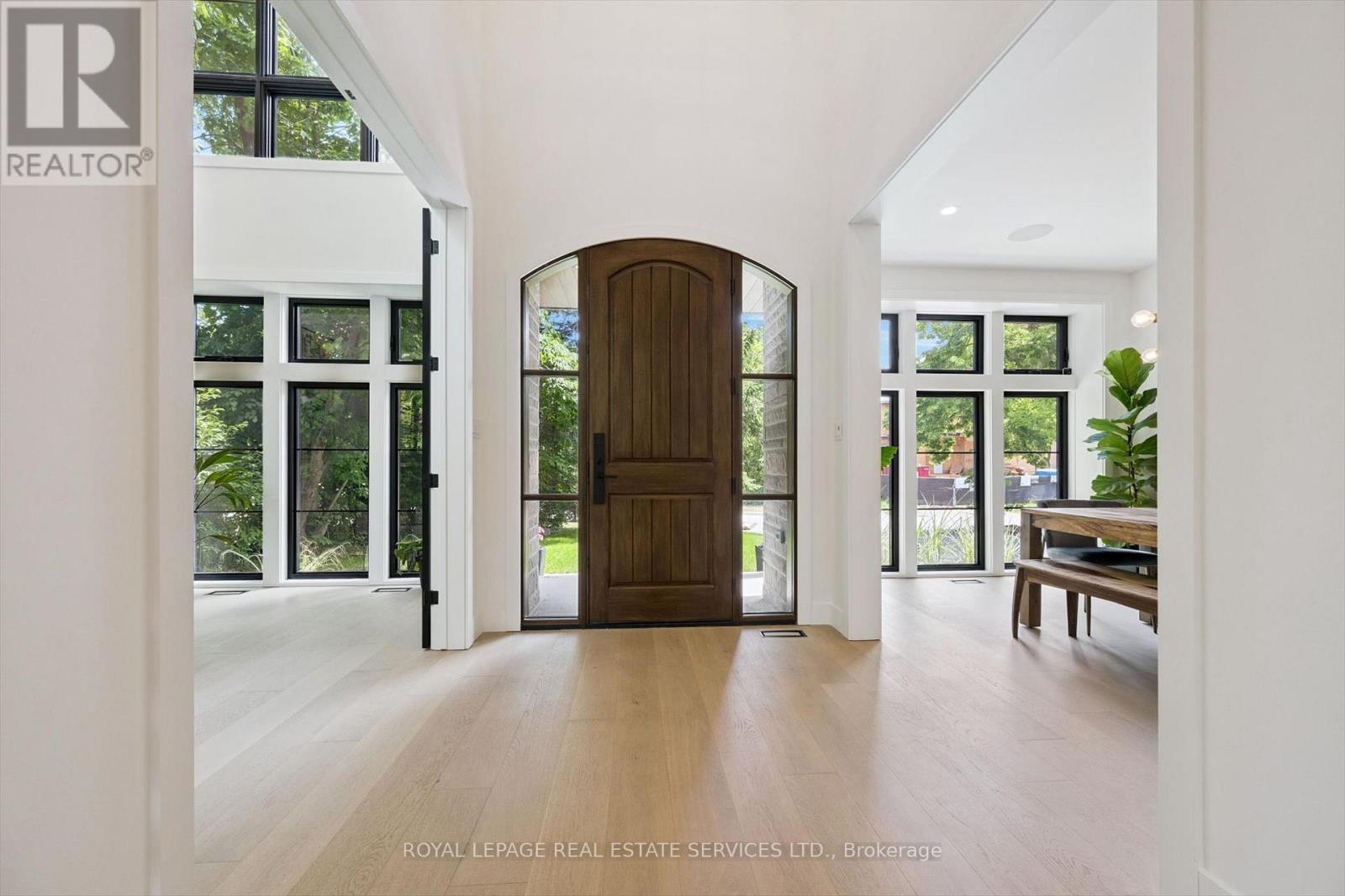 INSPIRED ENTERTAINING! A custom modern residence by acclaimed architect Jeff Cogliati (Bloom Architects), with striking architectural lines, large-scale windows, and a design tailored for everyday living and entertaining. Situated on a sprawling 0.22 acre lot, the home makes a striking first impression with its sculptural stone façade, dramatic sloped roofline, and cedar-clad insulated garage doors with EV charging outlet. Inside, expansive double-height slot windows flood the interior with natural light and frame a tranquil Zen Garden courtyard - the focal point of the main level. A floating mono-beam staircase with solid white oak treads anchors the space, leading to a stunning two-storey living room, dining area, and a chef-inspired kitchen designed for entertaining. Highlights include a large island, Sub-Zero fridge, Wolf six-burner gas cooktop, pot filler, double wall ovens, beverage fridge, and a prep kitchen with second dishwasher, instant hot water faucet, and additional beverage fridge. Custom millwork throughout the kitchen, vanities, and mudroom built-ins ensures exceptional craftsmanship and cohesive design. Accordion glass doors open to a covered terrace with built-in speakers, pot lights, and BBQ gas hookup for seamless indoor-outdoor living. Upstairs, the luxurious primary retreat features dual walk-in closets and a spa-inspired five-piece ensuite with heated floor. A junior primary suite offers heated flooring in the bedroom, dressing area, and ensuite, while two additional bedrooms share a beautifully appointed five-piece bath. Additional features include 7.5" engineered white oak floors, a private two-storey office overlooking the Zen Garden, an oversized mudroom with second powder room and backyard access, 4-zone in-ceiling speakers, and dual high-efficiency HVAC systems for optimal climate control. Ideally located near top-rated schools, shopping, dining, highways, and the GO Train. An architecturally distinct home in sought-after West Oakville (id:64974)