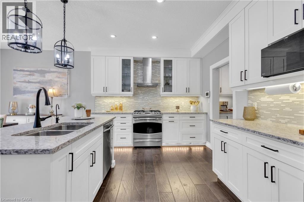 Introducing 515 St. Moritz Avenue, a distinguished custom-built luxury residence nestled in one of Waterloo’s most coveted enclaves. Set on an impressive 54-ft wide premium lot, this exquisite 5 bedroom, 5-bathroom home with a bonus room offers over 2,700 sq ft above grade plus 1200+ sq ft of beautifully FINISHED BASEMENT, all BACKING ONTO GREEN SPACE with no front neighbours for exceptional privacy. From the moment you step through front door, you are welcomed by a breathtaking open-to-above foyer with soaring ~18-ft ceilings, You walk on ceramic tile that smoothly transitions into luxury hardwood flooring with 9-ft ceilings. Sunlight pours into the formal living and dining spaces, creating an atmosphere of warmth and sophistication. At the heart of the home is a chef-inspired gourmet kitchen, thoughtfully designed with granite countertops, oversized center island, pantry, coffee station, and premium finishes throughout. The dining area overlooks the private green backyard and opens to an oversized custom deck with privacy fencing, perfect for refined outdoor entertainment. The stunning great room is anchored by a dramatic FLOOR-TO-CEILING-STONE GAS FIREPLACE, custom walk-in closet, mudroom, and interior garage access along with a total of 5 parking spots. Capet free Upstairs, discover the luxury primary master bedroom with CUSTOM WALK-IN CLOSET and private spa-inspired 5-pc ensuites, the 2nd master bedroom, offers 4-pc ensuite, alongside two additional spacious bedrooms connected by a beautifully finished 5-piece bath. An upper-level laundry room adds exceptional convenience. The finished basement with SEPERATE ENTRANCE offers incredible flexibility with an additional bedroom, kitchenette, gym, second laundry, and in-law potential. Armour stone landscaping in both front and backyard, this exceptional residence blends timeless elegance, privacy, and luxury family living just minutes to top-rated schools and the University of Waterloo. (id:64974)