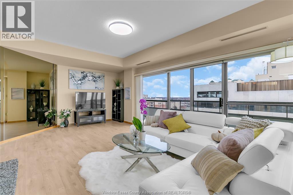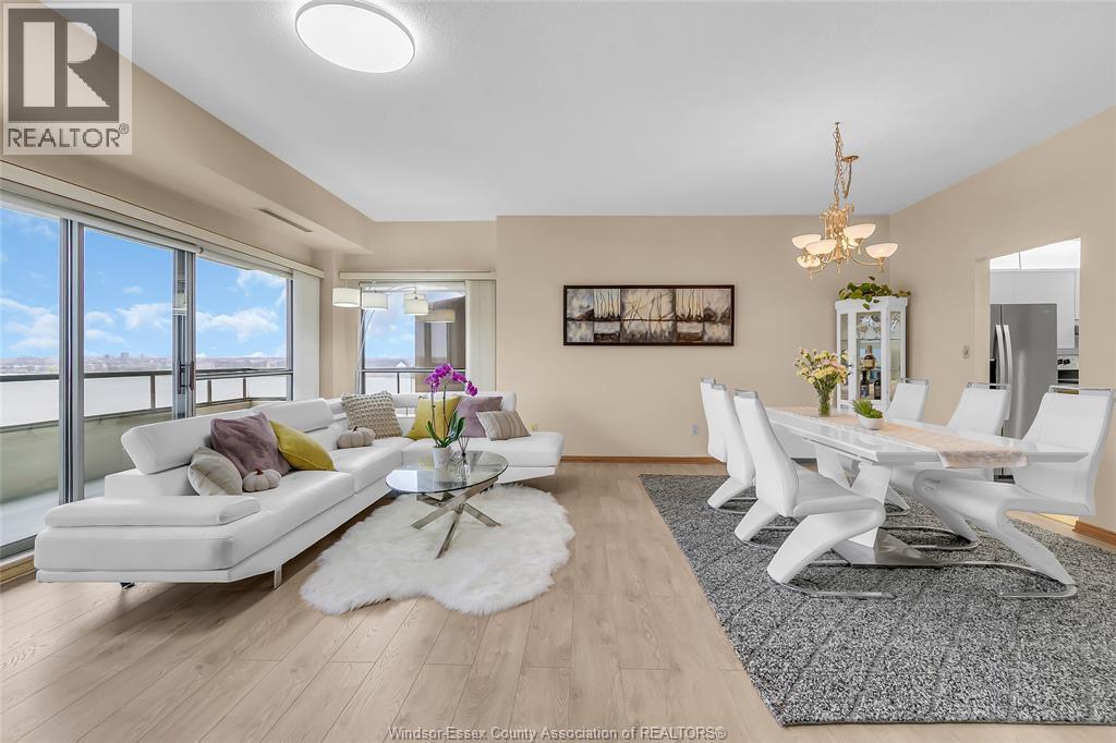 Welcome to Coventry Park Place—one of Windsor’s premier waterfront condos! This 9th-floor residence offers approximately 1500sqft of open-concept living W 2B2B, along w stunning Detroit River views. The bright living and dining area flows into kitchen with newer appliances(dishwasher/Range hood 2025; stove/fridge 2024), New furnace and A/C(09/2025),high-quality laminate flooring throughout.Oversized balcony, accessible from both the primary bedroom and living room, provides unobstructed views of the Detroit skyline, Peace Fountain, Coventry Gardens Park, and Belle Isle. The PB features a walk-in closet and a 5-piece ensuite with a separate tub and shower. A good size 2nd bedroom or office, in-unit laundry, two underground parking, a storage locker. Enjoy premium amenities including an indoor pool, party room with kitchen, fitness center, sauna, concierge service, and car wash with hot water, steps from parks,trails,and beautiful waterfront surroundings—come and enjoy your exceptional lifestyle here! (id:64974)