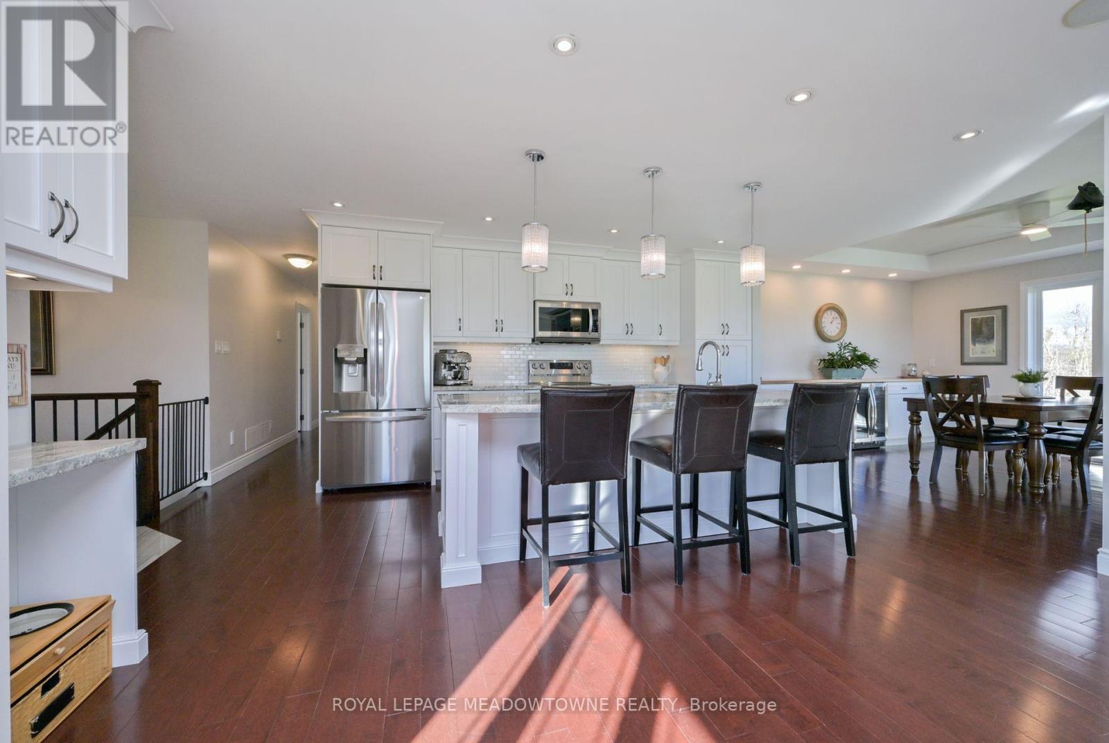 If you are longing for a peaceful space with a custom-built bungalow then take a look at this 4+1 bed, 3 full bath rural charmer conveniently located between Orangeville and Shelburne. The natural beauty only begins with its curb appeal. The functional floor plan works well for large and small families. The home is bathed in natural light blurring the lines between the sweeping country views and inviting interior. The open concept kitchen is a chefs delight and features upgraded appliances, granite counters, abundant cabinetry, pantry space and a large center island. The kitchen blends seamlessly with the great room and dining room with unobstructed views of nature. A large deck off the dining room is a perfect spot to chill, grill and entertain. The primary suite overlooks nature and has a beautiful ensuite with heated floors and large walk-in closet. The main floor full bath also features heated floors perfect for guests or bathing little ones. You can easily reinstall a washer and dryer in the fully set up hall laundry area course the new laundry space in the lower level. Up a few stairs you will find a hidden loft-perfect as a 4 th bedroom, play area, homework nook or creative space. The spacious attached 2 car garage has access to the front yard, back yard, main floor and lower level. Downstairs is perfect for guests or extended family and features large on ground windows, private entrance, walk-out and walk-up to rear yard, 5 th bedroom, full bath with custom shower great for washing furry family, in floor radiant heating throughout, laundry, rec room, games room, hobby room/office/second rec room cold cellar, utility room and 7 closets for endless storage. (id:64974)
