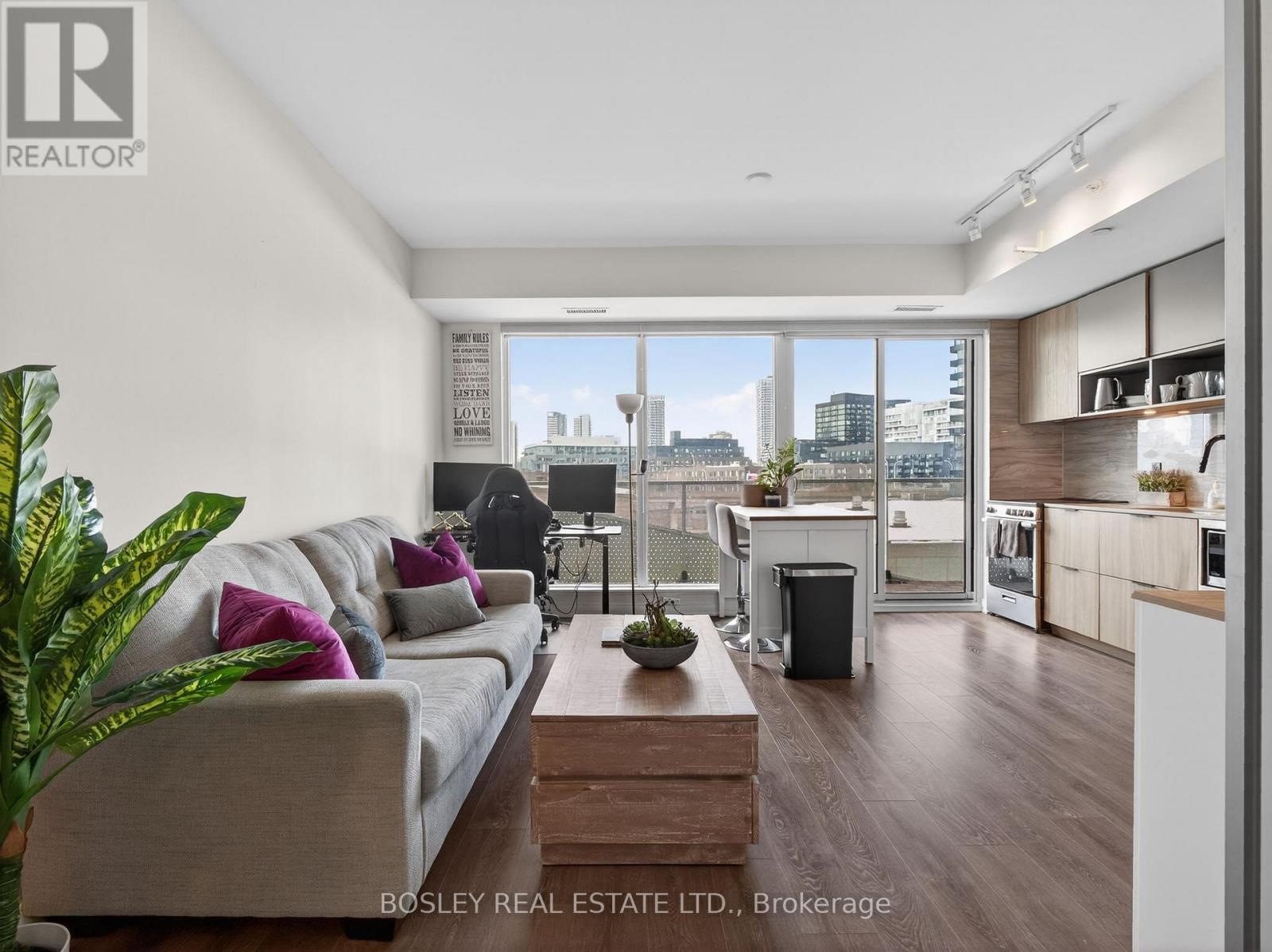 Step into a sunlit living and dining space with clean sightlines and effortless flow. The open-concept kitchen keeps you connected - prep dinner, catch your favourite show, and take in the view all at once. Your private balcony is the perfect reset: morning coffee, evening unwind, fresh air above the city. The primary bedroom is smartly designed with wall-to-wall closets that maximize every inch. Outside your door, it only gets better. Run the trails at Corktown Common, stroll the waterfront, work out at the YMCA, grab lunch at Souk Tabule or Impact Kitchen, and wander the Distillery District. With quick access to the Bayview Extension and DVP, commuting is easy. Full-service building with gym, co-working space, party room, 24-hr concierge, pet wash, bike storage, and BBQ area. City living. Done right. (id:64974)