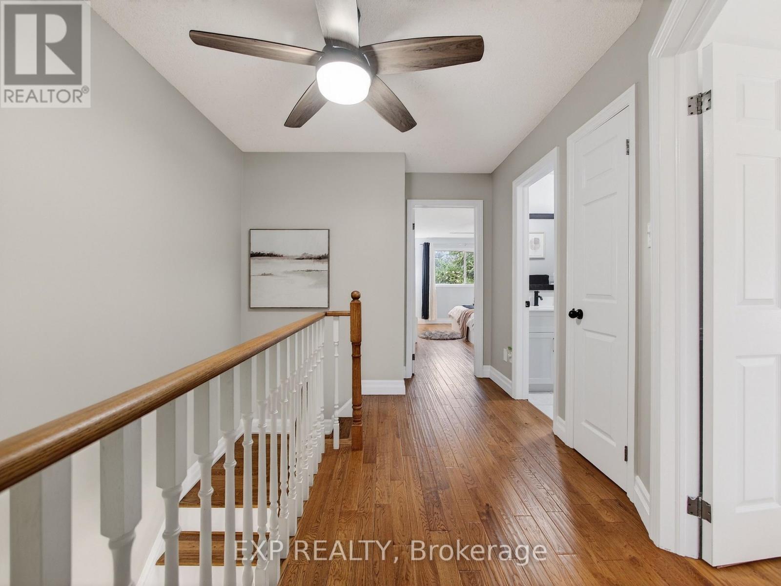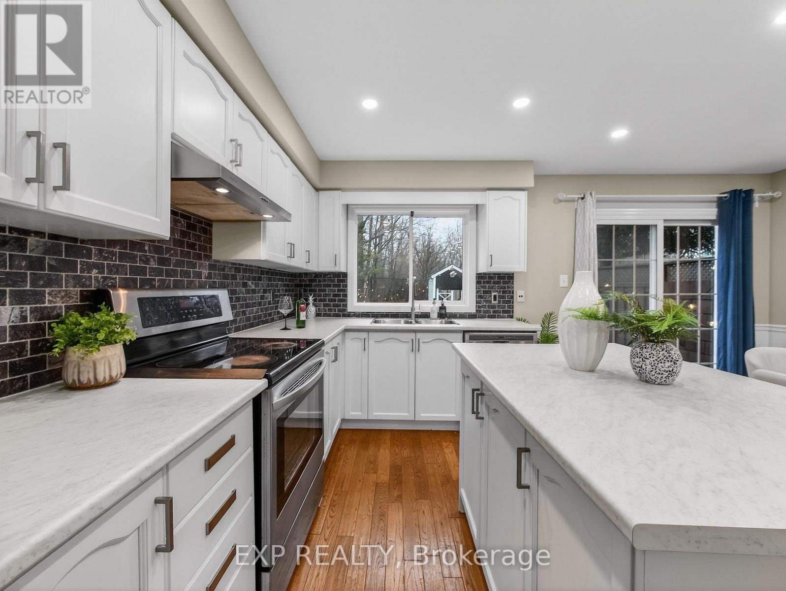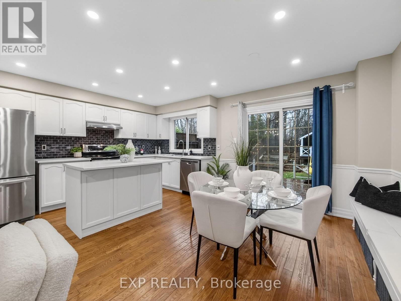Ravine-Backed Freehold Townhome in a Prime LocationThis 2-storey freehold townhouse backs onto a private ravine and forest setting, offering peaceful views and added privacy. Conveniently located close to Millcroft Shopping Center, Parks, Schools and major commuter routes.The main level features oak hardwood flooring and a bright family room with a gas fireplace. The updated eat-in kitchen includes upgraded countertops, stainless steel appliances, fresh paint, and pot lights.Upstairs offers three spacious bedrooms with hardwood flooring throughout. The primary bedroom overlooks the ravine and includes a 4-piece ensuite and a walk-in closet with custom built-ins.The finished lower level adds valuable living space with a recreation room, office area with a hidden Murphy bed, and additional storage.Enjoy a private backyard with a patio surrounded by mature trees.Located just minutes from major highways and Appleby GO Station, making commuting easy. (id:64974)
