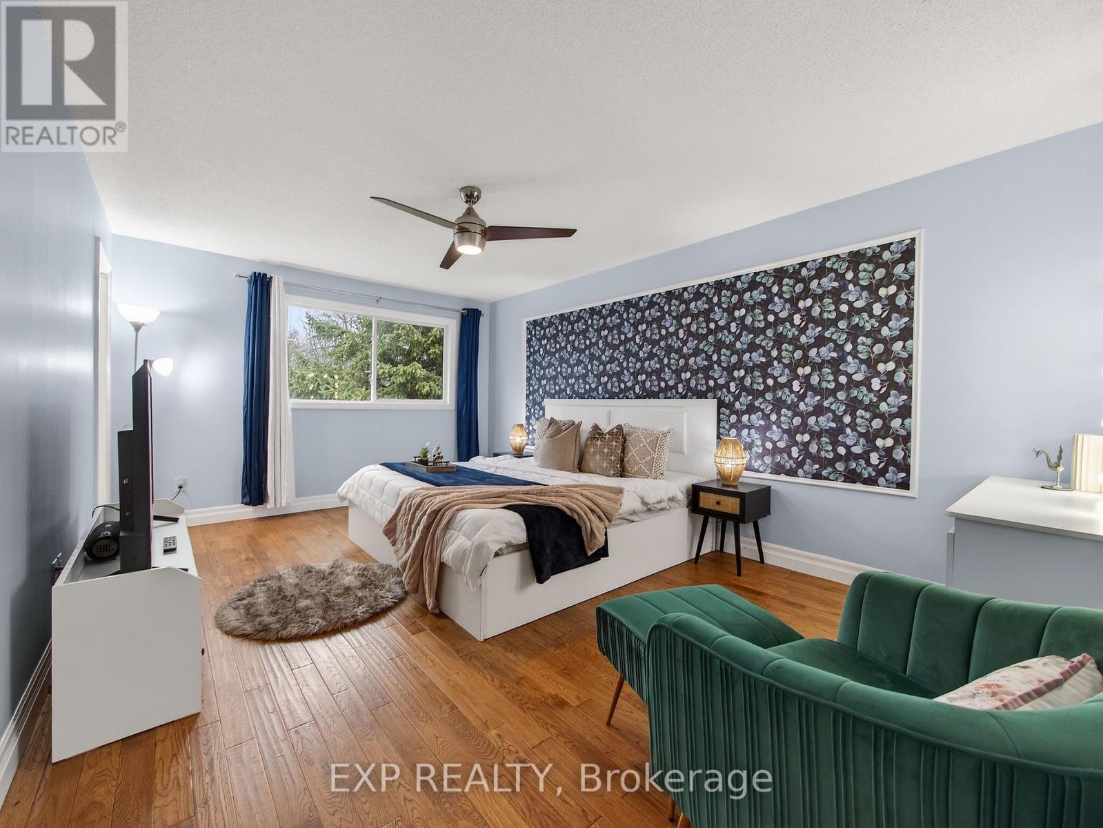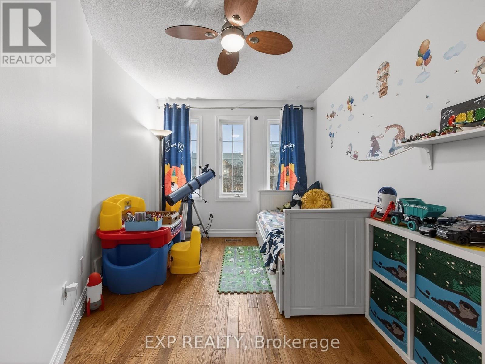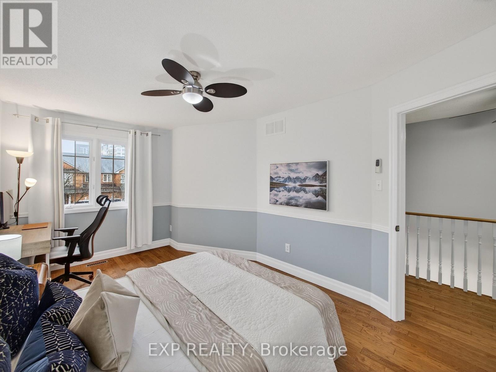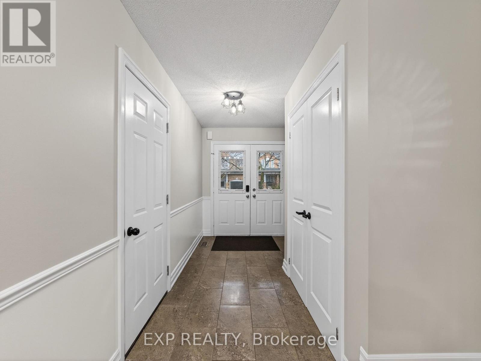 Ravine-Backed Freehold Townhome in a Prime LocationThis 2-storey freehold townhouse backs onto a private ravine and forest setting, offering peaceful views and added privacy. Conveniently located close to Millcroft Shopping Center, Parks, Schools and major commuter routes.The main level features oak hardwood flooring and a bright family room with a gas fireplace. The updated eat-in kitchen includes upgraded countertops, stainless steel appliances, fresh paint, and pot lights.Upstairs offers three spacious bedrooms with hardwood flooring throughout. The primary bedroom overlooks the ravine and includes a 4-piece ensuite and a walk-in closet with custom built-ins.The finished lower level adds valuable living space with a recreation room, office area with a hidden Murphy bed, and additional storage.Enjoy a private backyard with a patio surrounded by mature trees.Located just minutes from major highways and Appleby GO Station, making commuting easy. (id:64974)