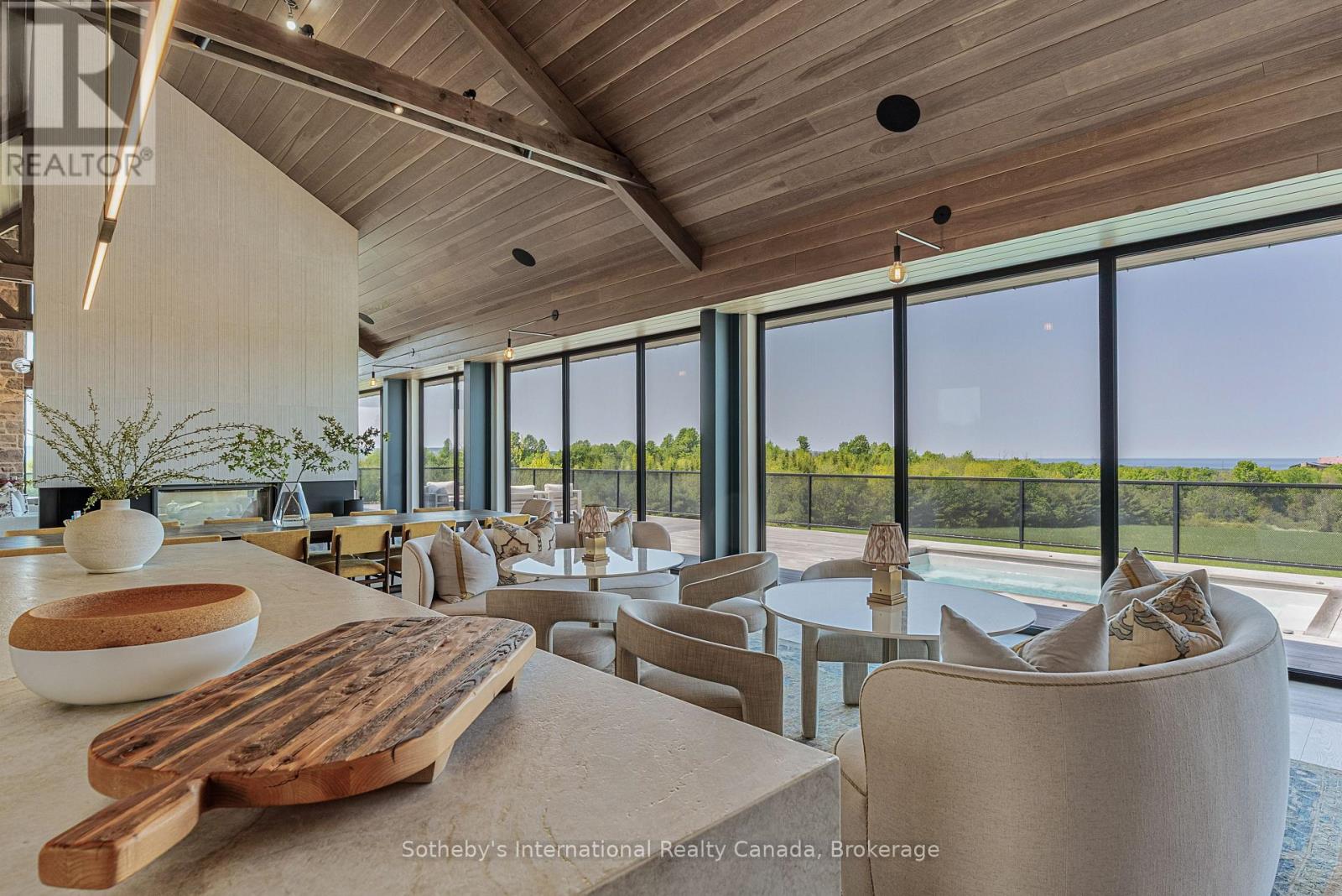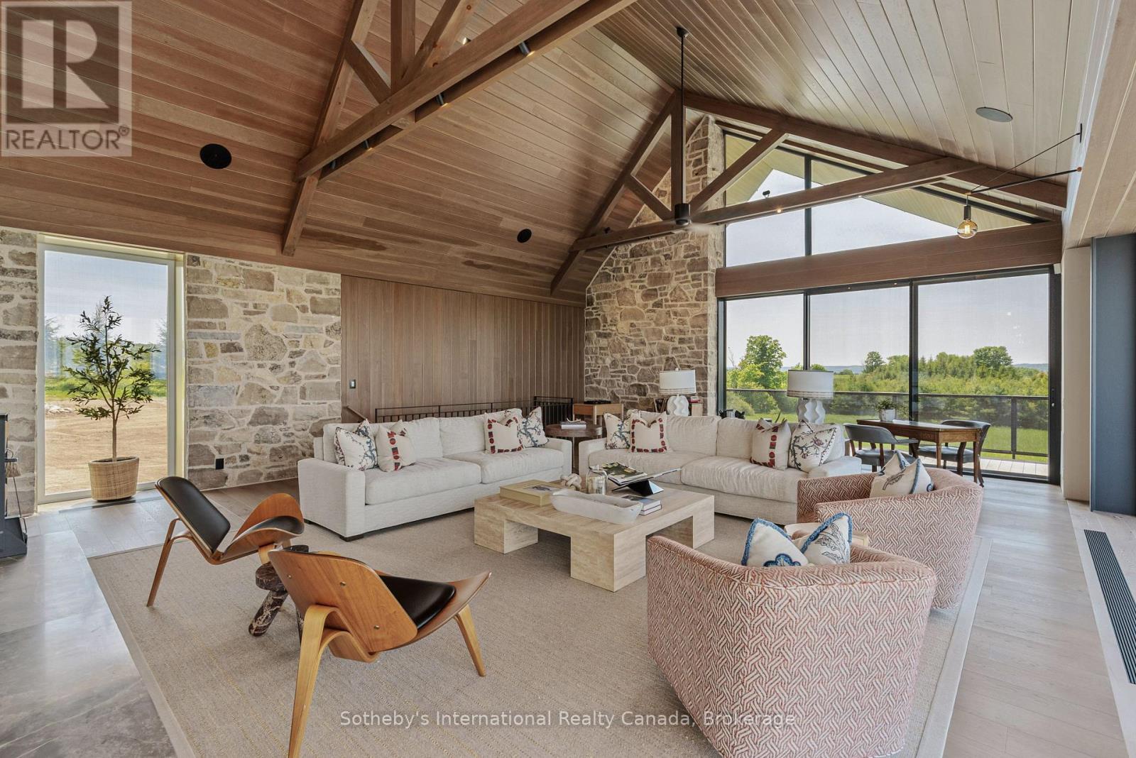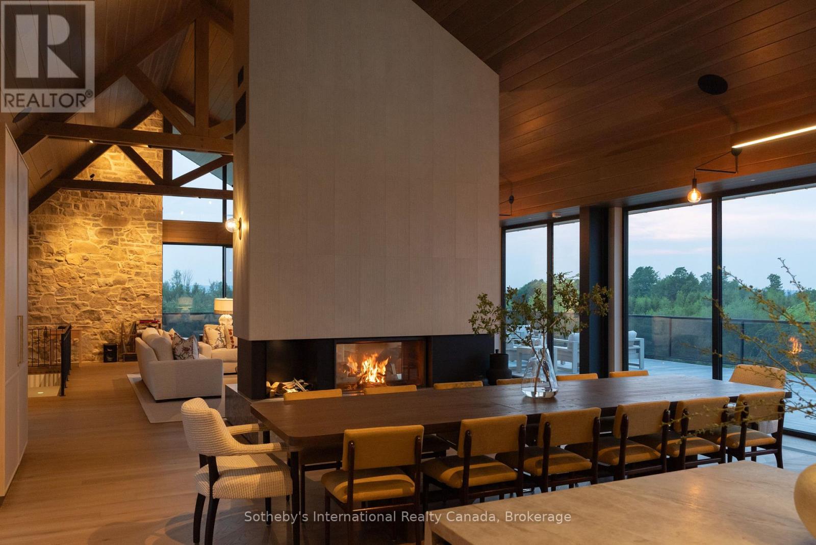 Never has there been an offering quite like this in the Blue Mountains. Welcome to Georgian Valley Farm, where world-class design meets the unspoiled beauty of nature and breathtaking sunsets. Set on 37 spectacular acres, this one-of-a-kind estate is anchored by an extraordinary 11,000 sq ft custom residence - a design landmark by Post Architecture Inc. and built by renowned builder David Eaton, Baylyn Construction. This property defines luxury recreational living, w/saltwater pool, Har Tru clay tennis court, orchard, pond, a Hartley Botanic Greenhouse - 'Grand Manor' imported from the UK and an incredible restored barn, ideal for entertaining. Perched high on 7th Line, the home presents commanding, panoramic views of the Niagara Escarpment and Georgian Bay from nearly every room. Scandinavian-inspired minimalism blends with refined country elegance, w/ Moncer European oak floors, soaring wood-clad ceilings, and a wall of floor to ceiling windows by Atek that frame the landscape. Chef's kitchen features a 12-ft marble island, appliances by Miele, Sub-Zero, and Lacanche, custom Barlow millwork, exquisite stonework and full butler's pantry. The dining room for 14 includes a concealed Barlow bar and a striking 2-way woodburning STUV fireplace shared with the living room. Thoughtful details are found throughout w/ designer lighting, imported tiles and hand-painted De Gournay wallpaper in the adult lounge, library, and powder room. A main floor primary sits behind double Egyptian doors and features a gas fireplace, luxurious ensuite, WIC, and sitting area. 4 upper bedrooms, all uniquely designed, feature beautifully curated ensuites with extensive tile/marble finishes, custom millwork and WIC. The lower level offers a golf simulator, gym, sauna, rec room, refreshment area, 200+ bottle Rosehill Wine Cellar, and w/o to the covered terrace and pool. Exceptional outdoor living offers a 2,520 sq ft deck, with a full Crown Verity kitchen, dining & lounge areas, and a hot tub. (id:64974)