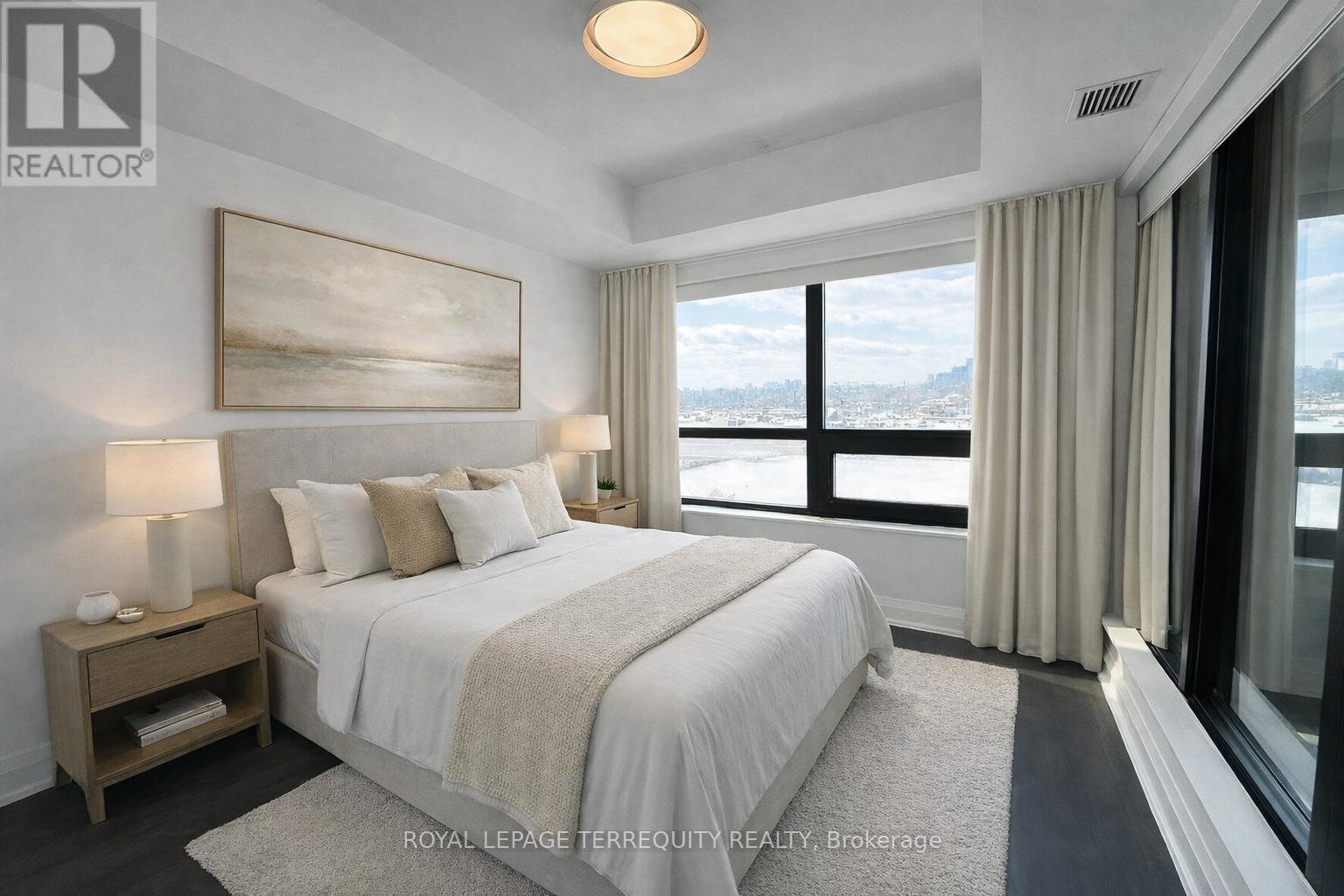 Welcome to The Residences of Upper Village, set in the heart of one of Toronto's most sought-after neighbourhoods. This newer, design-forward building offers a smart, stylish floorplan in a spacious 1-bedroom + den, 2 full bath suite. Flooded with natural light, the suite features a sunny west exposure and unobstructed skyline views through expansive windows. The layout is both functional and flexible, with generous living space and room for a breakfast bar or full dining setup. The primary bedroom is a standout, featuring extra-large windows on two sides and a sleek ensuite. Step out onto the large private balcony, perfect for al fresco dining or unwinding as the city moves below. Residents enjoy resort-style amenities including an indoor pool, steam room, private gym, games and party rooms, boardroom, dining space, outdoor entertainment areas with BBQs and fire pits, and 24-hour concierge service. Conveniently located just steps from shops, cafés, and restaurants-truly walk to everything. Set within a new master-planned community nestled in a lush enclave at Brentcliffe Rd & Eglinton Ave, this location offers exceptional value in one of the city's most desirable and well-connected pockets. Enjoy a Walk Score of 88, an upcoming LRT at your doorstep, and seamless access to the DVP, downtown, and uptown. (id:65010)