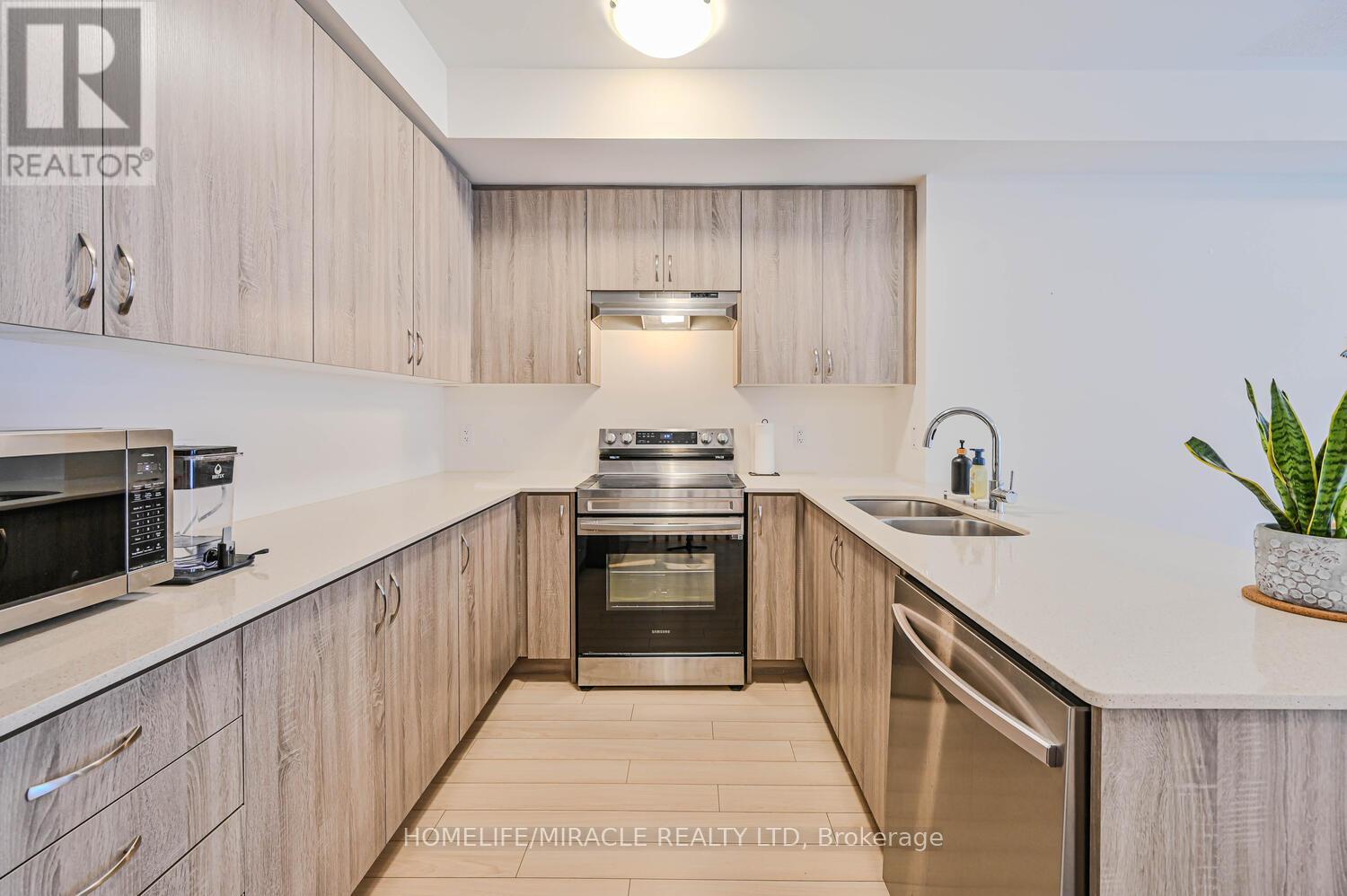 Location !!! Location !!! Location !!!Brand New Cachet Homes "Parq Conklin" model offering 1,377 sq. ft. of modern open-concept living with upgraded finishes. This recently built community gorgeous home features 2 bedrooms, 2.5 bathrooms and is east-facing, allowing sun-filled bright rooms and large windows that bring in abundant natural light throughout the day. Ideal for first-time homebuyers and working professionals seeking a stylish and low-maintenance home. The main floor features 9' ceilings, quartz kitchen counters, laminate flooring, and a stunning living room with soaring ceilings and oversized windows, creating an airy and elegant space perfect for relaxing or entertaining. Walk out to a spacious covered balcony, while the upper level also offers a private balcony off the second bedroom and a generous open terrace. Upstairs includes a primary bedroom with two closets and a 3-pc ensuite, a second bedroom, a 3-pc main bath, and convenient upper-level laundry. Home comes equipped with Samsung Wi-Fi enabled appliances and a Google Nest Thermostat (3rd Gen). Central A/C included. Conveniently located close to schools, transit, and everyday amenities with FreshCo (5 min), No Frills (1 min), Costco & Gas (5 km) and quick access to Highway 403 for easy commuting. Elementary school 2 minutes and secondary school 6 minutes away, making it a great option for families. POTL Fee $134.76/month includes snow removal on roads, visitor parking, communal sidewalks, landscaping of common areas, plus municipal garbage and recycling. Enjoy comfortable outdoor living with a main-floor balcony and spacious upper terrace, perfect for morning coffee, evening relaxation, or entertaining guests. (id:64974)