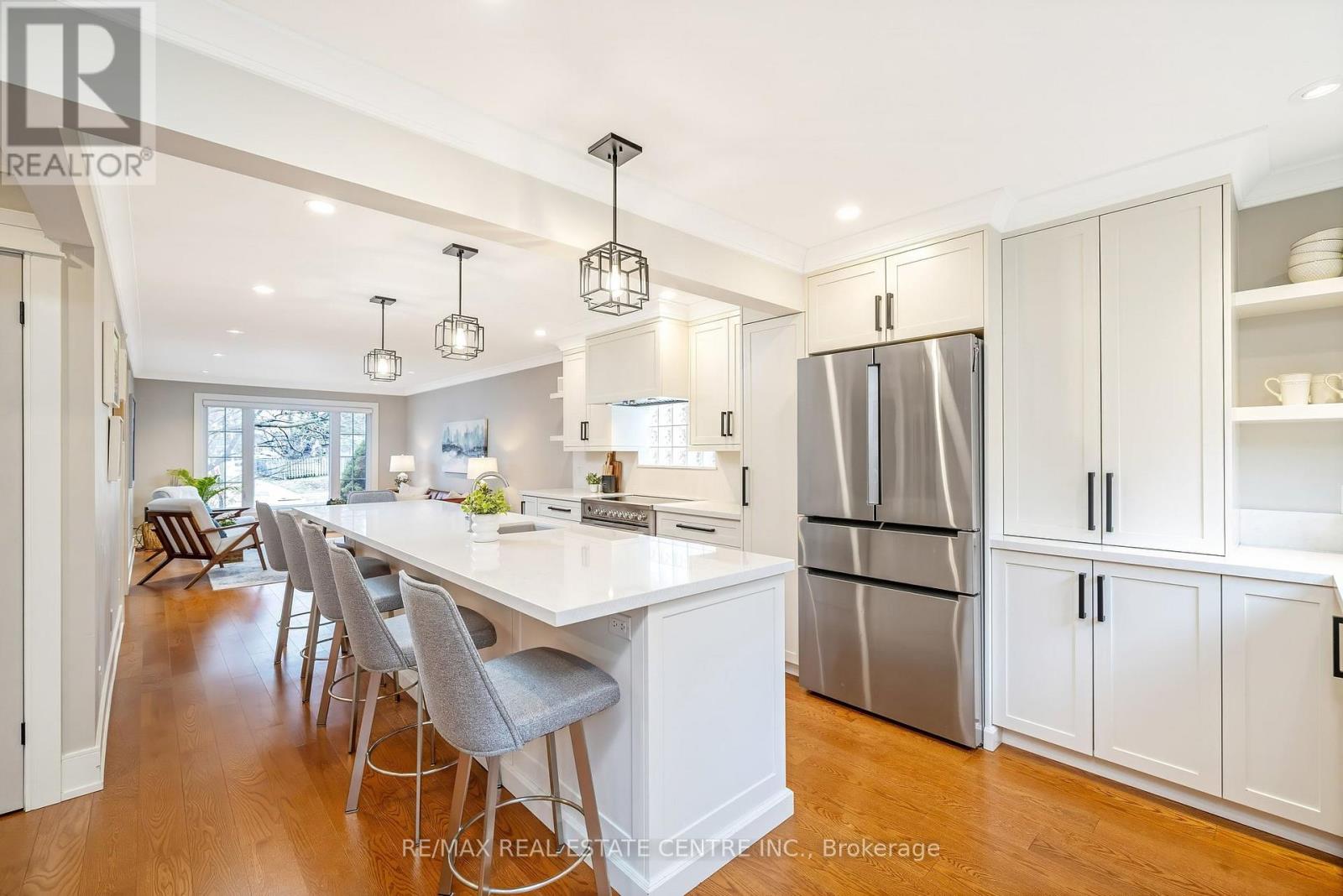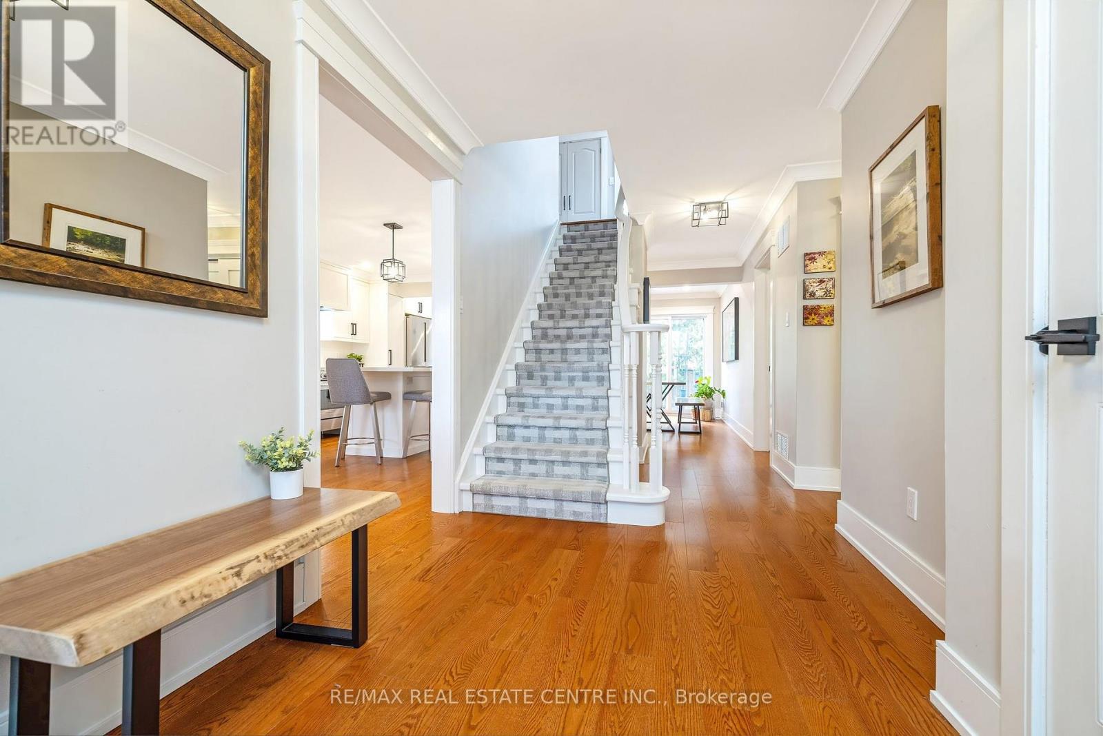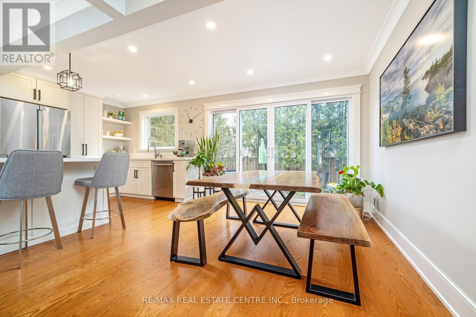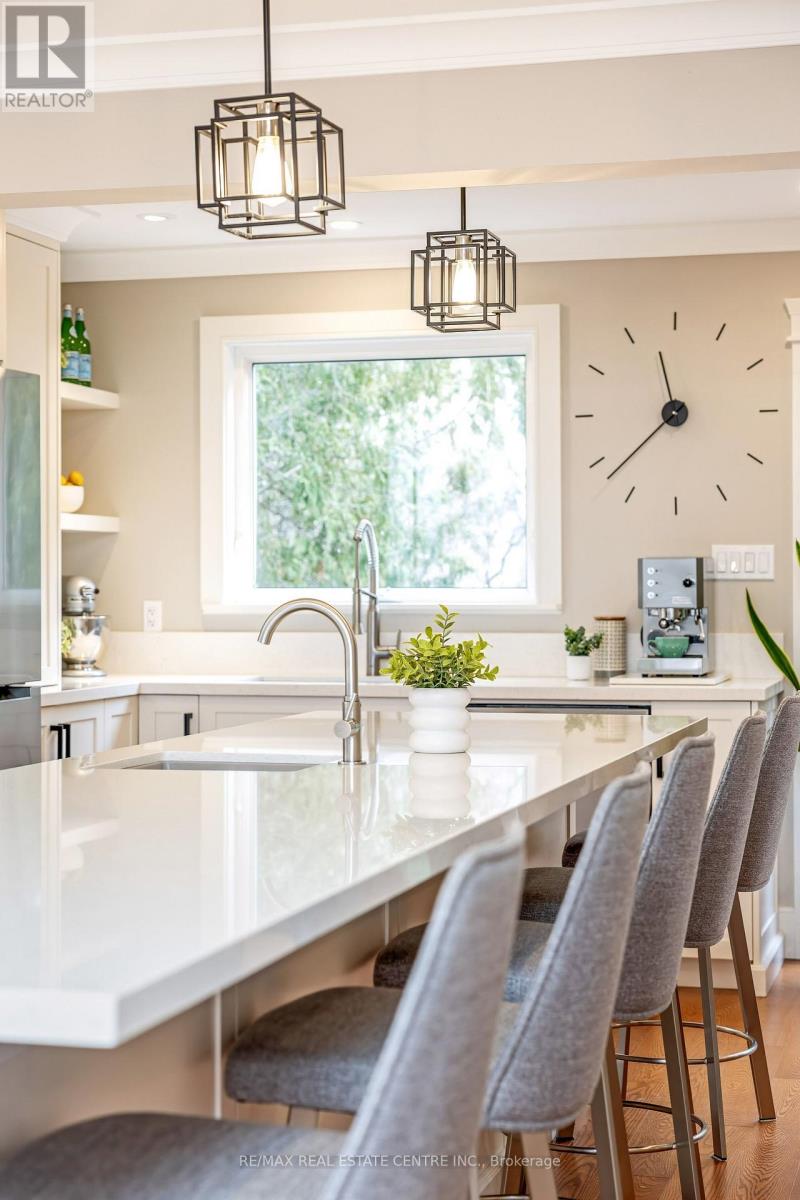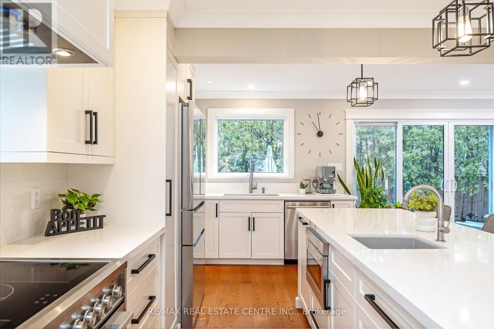TRUE PRIDE OF OWNERSHIP and steps to parks, schools and WALKING TRAILS! $250,000+ spent in recent well-designed RENOS. This executive 4-Bed 4-Bath home has loads of space for your family. It offers fabulous curb appeal w/ beautiful perennial gardens, poured concrete driveway, back patio, walkways. The main floor features a spacious foyer, laundry room w/ yard access, powder room, 2-CAR HEATED GARAGE (the MAN CAVE/STUDIO), open-concept living room w/ hardwood floors. The GOURMET WHITE EAT-IN KITCHEN and dining rm are thoughtfully designed w/ a MASSIVE 12' ISLAND, ample cabinetry, quartz countertops and matching backsplash, under-cabinet lighting, potlights, crown moulding, pantry, high-end SS appliances, including a microwave drawer. A double-wide patio door offers views of the lush landscaped yard ... a private secret garden. The family room features a gas fireplace, hardwood floors and BI cabinetry and speakers. The upper level has 4 spacious bedrms w/ stylish barn-door closet doors, all w/ hardwood, a 4-piece family bath w/ tall vanity, heated floors and extended glass surround tub. The primary bedroom has separate his/her closets w/ motion-activated lights, potlights, a 3-pc ensuite w/ heated floors, crown moulding and WI glass shower. The finished bsmt has a large rec room w/ BI speakers, gas fireplace, a "CHEERS" style wet-bar w/ bar hatch, beverage fridge & wine cooler, workshop, cold cellar and loads of storage. The private rear yard offers lighting, 220VAC and concrete pad for a future hot tub, a natural gas BBQ line and low maintenance perennial gardens. Addit'l features: 200 amp panel in garage (EV charger ready or workshop needs) along w/ professional lighting to cast minimal shadows, HWT and water softener (owned). Located close to all amenities: steps to schools, parks, downtown, public transit and a short drive to GO Station, groceries, Timmys, restaurants, shopping, rec centres and easy hwy access. Move in and enjoy ... this wonderful home has it AL (id:64974)