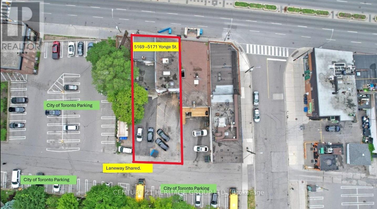 A rare opportunity to acquire a fully tenanted commercial office and retail building on a high-profile site along Yonge Street, in the heart of North York Centre. The property is identified under the revised North York Centre Secondary Plan as potentially eligible for development of up to 65 storeys, making it one of the few remaining sites in the area suitable for significant high-density, mixed-use redevelopment. Located steps from North York Centre Subway Station, North York Civic Centre, and the Toronto Central Library, the site offers seamless integration into Toronto's public transit network. It is also within minutes of Highway 401, facilitating access for both regional and citywide commuters. The area functions as Toronto's largest employment node outside the downtown core, supporting both commercial and residential intensification. The property at 5169 & 5171 Yonge St. is situated within a section of Yonge Street already surrounded by high-rise residential buildings, Class-A office towers, and major retail developments, making it an ideal candidate for additional density in line with the City of Toronto's growth and intensification objectives. The existing structure is fully leased to a mix of long-standing commercial and professional tenants, providing reliable holding income during the planning and development process. The property includes 11 on-site parking spaces, with ample public and street parking available in the immediate vicinity. Most comparable sites in the area have already been developed, making this property one of the last large-scale parcels along this stretch of Yonge Street, offering a unique opportunity for long-term strategic development. Please do not contact tenants directly. Thank you for your interest. (id:64974)