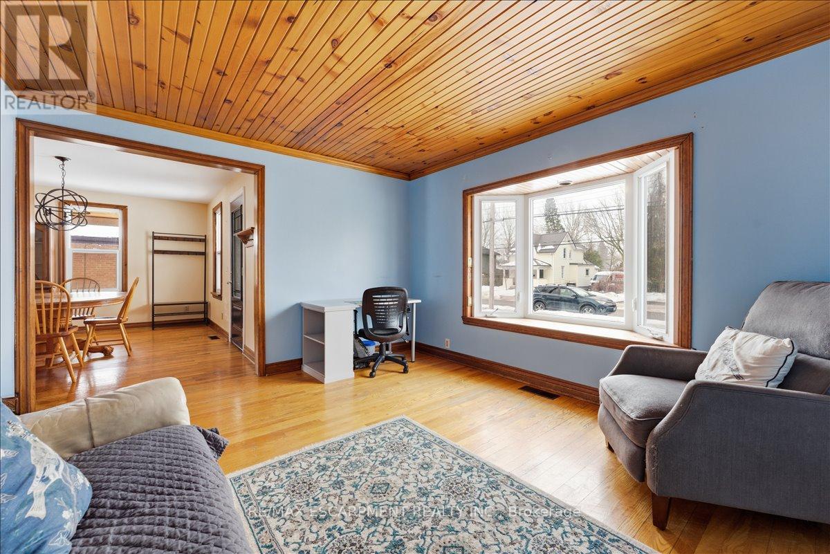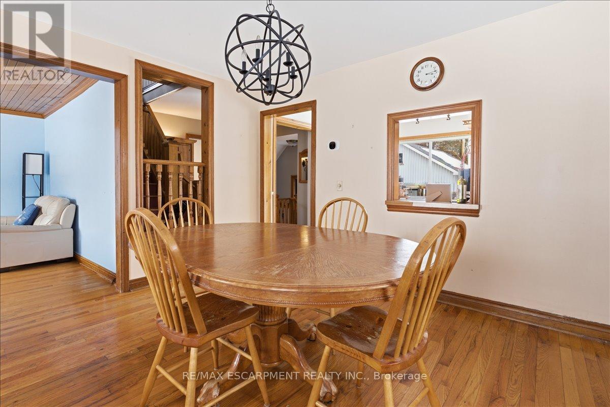 Welcome to this charming two-storey family home, ideally situated on a quiet, mature,tree-lined street in the riverside community of Dunnville. Set on an impressive 63' x 330' lot,nearly half an acre, this property offers space, privacy, and convenient walking access todowntown amenities. A covered front porch adds to the home's inviting curb appeal. The mainfloor features timeless hardwood flooring throughout the living and dining areas, a functionaleat-in kitchen with walk-out to a two-tier deck, and a four-piece bathroom, offering thepossibility of single-floor living. Upstairs, three well-sized bedrooms share a two-piecebathroom, while the finished basement with generous ceiling height extends living space. Themain basement feature is a family room complete with gas fireplace and a versatile den, perfectfor guests, teens, or a home office. This home offers a solid package with room to personalizeand add value over time. The expansive, tree-lined backyard provides plenty of space forrelaxing or entertaining, and the deck is ready for your new on-ground pool. The large detachedinsulated two-bay garage/shop (~31' x 21') adds exceptional versatility for hobbies, a gym,storage, or the ultimate workshop. (id:64974)