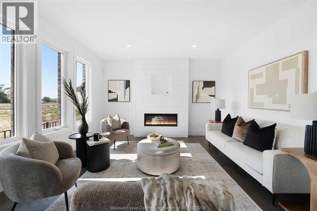 Presenting, the Hudson by HD development group, winners of the WEHBA builder of the year for 2025. This two storey offers 4 bedrooms, 3 baths and second floor laundry. Premium finishes included; such as a premium painted kitchen with an oversized island, fireplace entertainment unit, 9 ft ceilings on the main floor, butlers server area along with a walk in pantry. The primary bedroom consists of a ensuite bath with a custom tiled shower and complimented with a spacious walk in closet. Lower level includes an unfinished basement ready to customize to your needs while the exterior consists of premium finishes such as brick and Engineered Siding. Additional features include rear covered porches, garage paint ready with fully insulated garage doors, a 96% efficient 2 stage furnace with HRV unit all come standard. Located close to the 401 and all major amenities, this is modern family living at its best. Ask about the HST rebate for first time home buyers. Build in Oldcastle today! **Photos from a previous build. (id:64974)