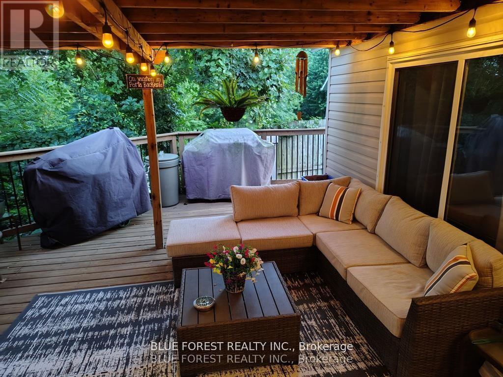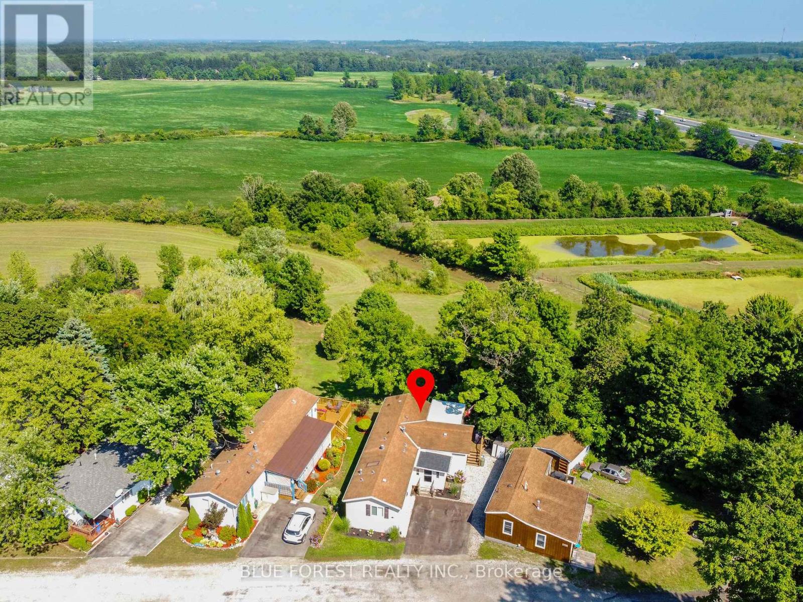 Three bedroom, two bath home with close to 1100 square feet of living space. Affordable living, close to the sought after Village of Dorchester and just minutes to the 401 Hwy. Whether you are looking to downsize or to simply experience a different lifestyle, this home provides a great opportunity to own in the parklike setting of a desirable 55 + community. Positioned on the hilltop overlooking green space and near the end of a street. It features a large covered patio that overlooks the valley. There is a generous sized, open eat in kitchen with loads of natural light. Next to it is a very spacious family room. Across the hall you will find 2 additional bedrooms, next to a 4 piece bathroom and the main floor laundry closet. At the end of the hall is the primary bedroom with a full ensuite bathroom. East facing windows provide a great view of the park space, trees and forest surrounding the grounds. This is very much a home and offers nearly 1100 sqft of one floor living space - all in a terrific community atmosphere. The lease is $802.40 per month, (Lot Fees, Municipal Taxes, Water and Sewer Testing, Garbage P/U , street lighting, Snow Removal) Many updates, upgrades and renovations. (id:64974)