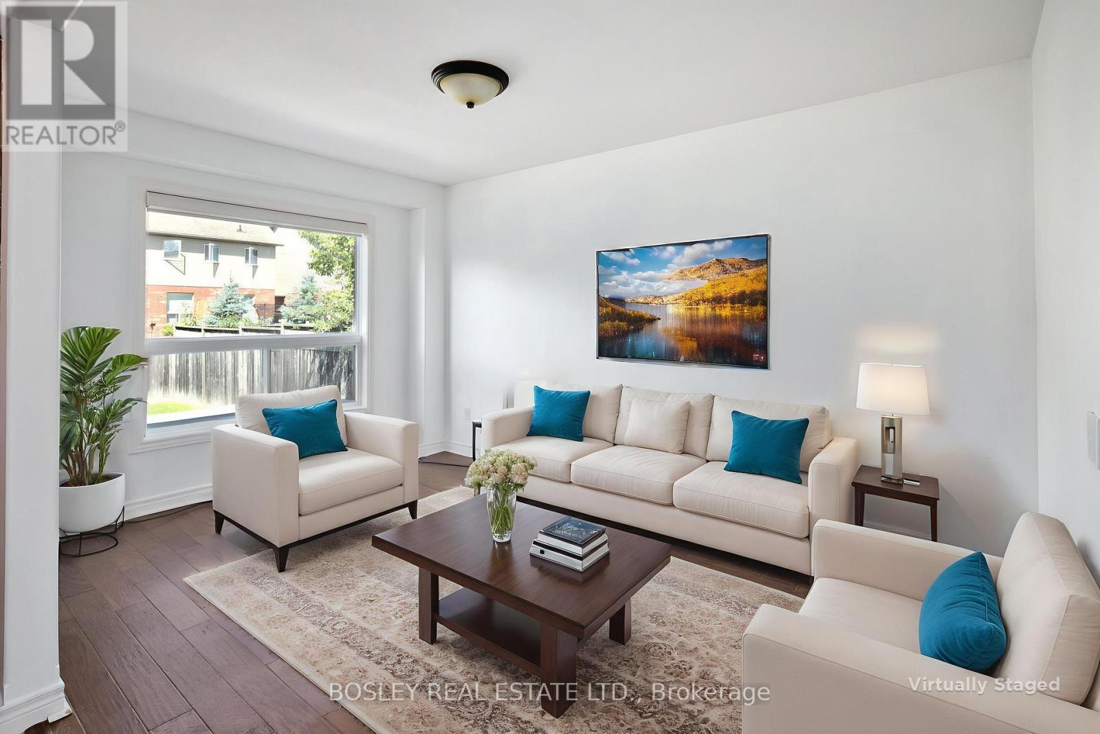 Nestled in the highly desirable Creekside Subdivision, this beautifully maintained 3-bedroom, 2.5 bath end-unit townhouse offers the perfect combination of modern living and comfort. The home is flooded with natural light and boasts stylish finished throughout, including functional barn doors, a spacious pantry, and a large 11 x 12 deck off kitchen that overlooks a private, serene backyard. Upstairs, you'll find California shutters, lush carpeting, and a spacious primary bedroom with two closets for plenty of storage. The 4-piece bath features tile flooring, the finished basement offers a cozy atmosphere with a gas fireplace surrounded by custom built-in cabinets, perfect for relaxing or entertaining. With parking for up to 4 cars in the driveway (no sidewalk) and a large 16x19 garage with inside access and a bonus door leading to the backyard, there's plenty of space for both vehicles and storage. Additional features include air conditioning and new shingles (replaced in August 2022). Ideally located near downtown Collingwood and just a short drive to Blue Mountain Resort, this property offers easy access to both urban amenities and outdoor adventures. For family fun, J.J. Cooper Park is just around the corner, and trail access is available at the back of the subdivision. (id:64974)