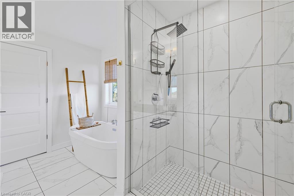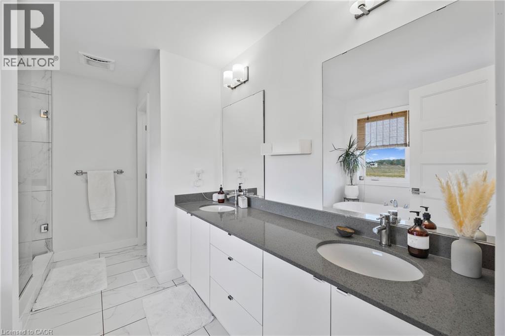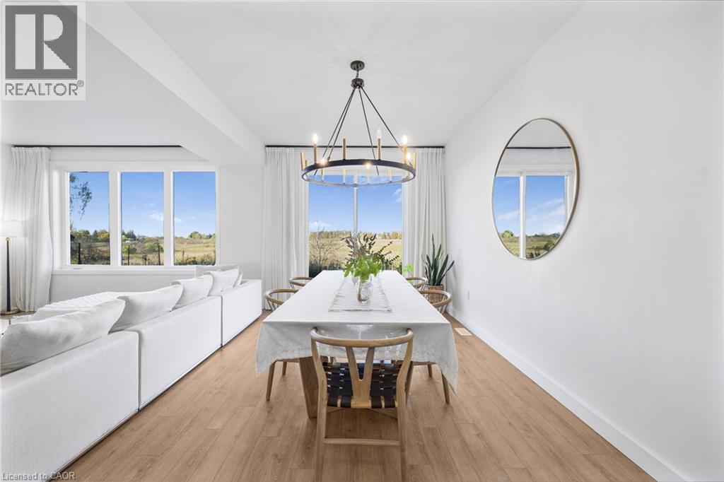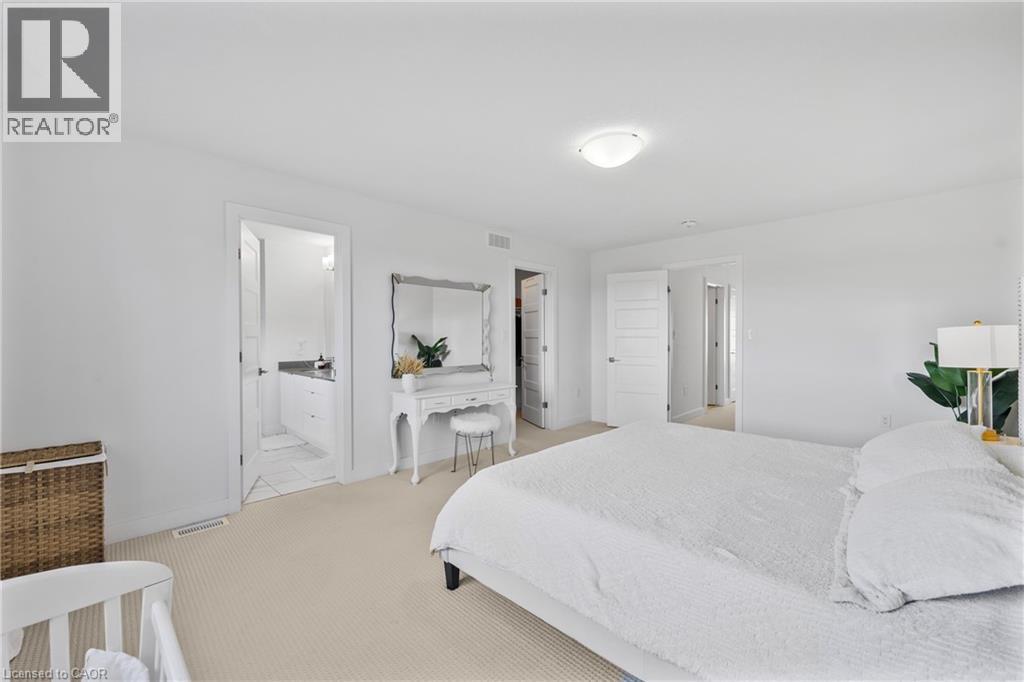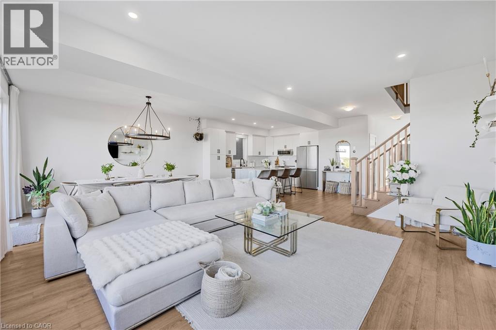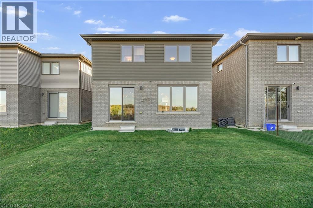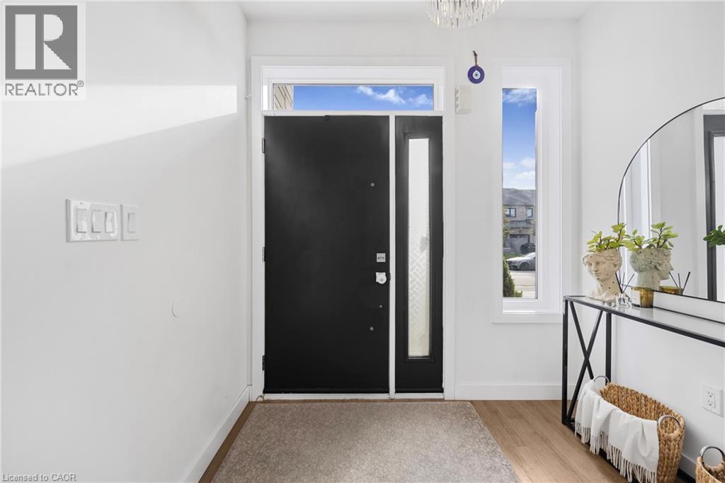 Modern Elegance Connecting with Nature. Discover a home that perfectly blends sophisticated design, premium craftsmanship, and serene surroundings. Built by the renowned Priva Homes, celebrated for exceptional quality and attention to detail, this modern detached residence offers the rare combination of luxury living and natural tranquility. Set within a quiet, highly sought-after enclave that backs onto peaceful green space, this property provides a private oasis for family gatherings, weekend relaxation, or quiet reflection. Every element of this home reflects an elevated standard, from the contemporary architecture and designer lighting to granite surfaces, refined trim work, and sun-filled interiors framed by expansive windows. Inside, enjoy nearly 3,000 sq. ft. of total living space, thoughtfully designed with spacious rooms, high ceilings, and a fully finished lower level with its own entrance, ideal for supplemental income, a recreation haven, home offices, or an in-law/nanny suite. Additional upgrades include a whole-home water softener and a spa-inspired ensuite with a deep soaker tub for unwinding in style. Perfectly positioned near top-rated schools, Heritage Green Sports Park, scenic Escarpment trails and waterfalls, shopping, and major highways, this home offers the ideal balance of comfort, connection, and convenience. With interest rates on the move, now is the time to secure your place in this remarkable community, a home designed for those who appreciate the finer things in life. (id:64974)