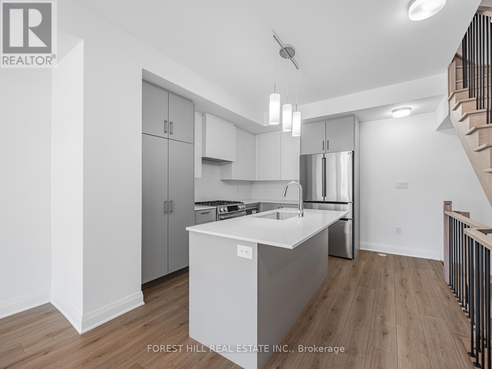 BRAND NEW TOWNHOME. 2 YEAR TARION WARRANTY. Beautiful 3 bedroom + Den, 3 bath, 2 underground parking that leads directly into your home. Perfectly sited Atkinson and Centre location. Wide plank flooring, quartz countertops, Bosch and Panasonic appliance package. Kitchen island has farmers sink. What a showstopper home. 1760 sq ft + 404 sq ft of finished basement. Wonderful for parties and family gathering. Fantastic rooftop terrace with water hookup-338sq ft. Landscaping abounds throughout this enchanting townhome complex overlooking Vaughan's prettiest park. 1 km to Sobeys, Promenade Mall short drive. Garnet A. Williams Community Centre walking distance. Come see this exceptional townhome and settle your family in high design and comfort for the holidays. BRAND, BRAND NEW and movie in today. Common element fees include landscaping and snow removal. Parking spaces #150 and #211. (id:64974)