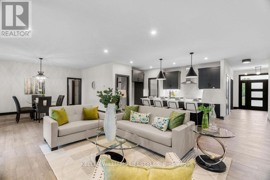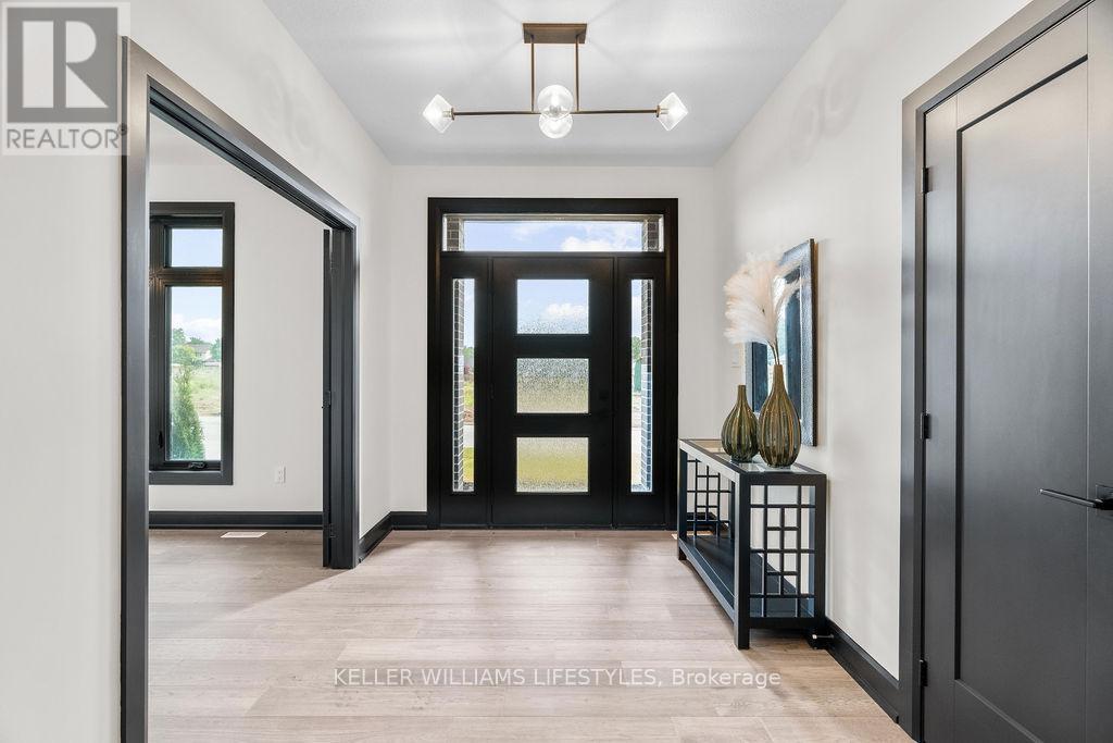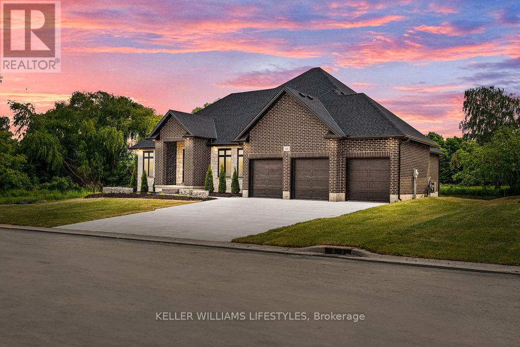 Welcome to the Marquis, an exquisite 2,378 sqft bungalow in Crossfield Estates, designed for luxurious, functional living. This stunning home features 3 spacious bedrooms, 2.5 baths, and an open-concept layout that blends comfort and style. The great room, anchored by a gas fireplace, flows into the gourmet kitchen with quartz countertops, a walk-in pantry, and a large island. The primary suite is a true retreat, with a spa-inspired ensuite offering a soaker tub, glass shower, and walk-in closet. Two additional bedrooms share a well-appointed bath. A dedicated office, mudroom/laundry, and an oversized three-car garage add convenience. Enjoy outdoor living on the covered porches. Built with high-end finishes like engineered hardwood, tile flooring, and a high-efficiency HVAC system, the Marquis blends elegance and modern functionality. Other models and lots available. Price includes HST. Property tax & assessment not set. Hot water tank is a rental. To be built, sold from floor plans. (id:64974)