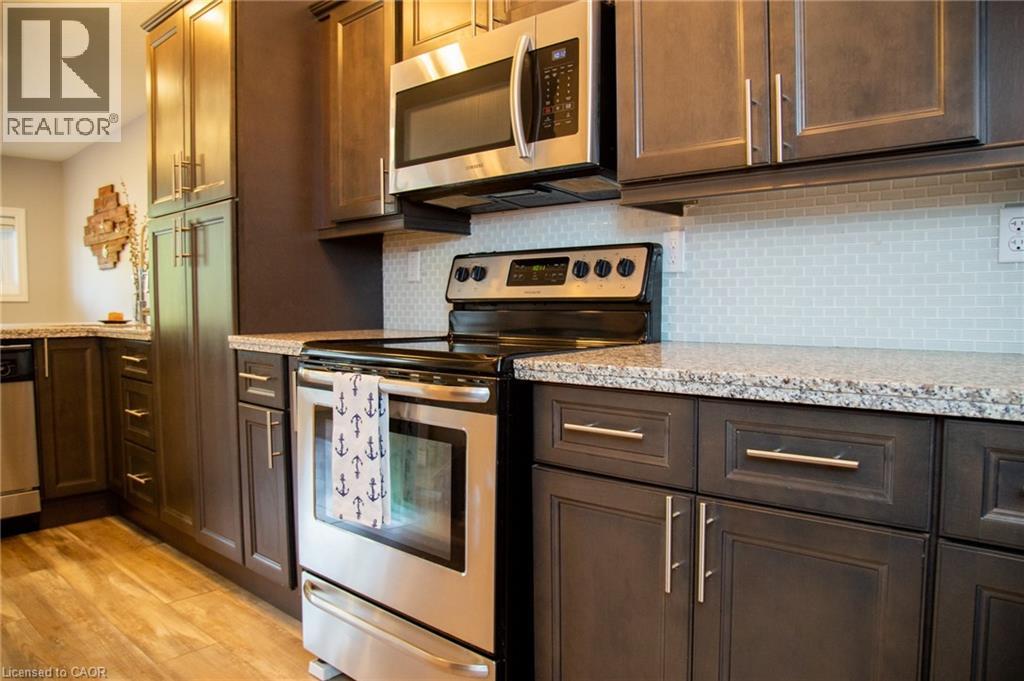 52 Grand St. in Port Dover is the kind of home that lives larger than it looks, thoughtfully designed to make smart use of every space. Set on a quiet, dead end street, it offers a unique layout with all 3 bedrooms on the main level, laundry, and the living areas below take full advantage of the walkout lower level. This floor features a very generous primary bedroom with access to a private balcony where you can unwind and enjoy beautiful sunsets overlooking the channel and the Port Dover Yacht Club.You’ll also find a nicely updated 4 Pc Bathroom and a foyer style entrance which shows an open staircase to the downstairs living areas. Downstairs, the bright walkout level feels warm and inviting thanks to large windows and direct access to the lower deck. The spacious living room easily accommodates larger furniture and includes a wood-burning fireplace for cozy fall and winter evenings. The kitchen offers ample cabinetry, full-size appliances and granite countertops, with a dining area that enjoys lovely views and opens to the deck — perfect for indoor-outdoor living. An easy 15-minute walk to the beach, boutique shops, local restaurants, and even an evening at the Lighthouse Theatre on Main Street. When you’re ready to wander a little farther, Norfolk County opens right up with wineries, breweries, concert venues, beaches, and scenic walking and biking trails all within a relaxed half-hour drive. And with Hamilton about an hour away, Brantford even closer, and Toronto, Oakville, and Burlington just an hour and a half out, you can skip the “up north” or cross-city traffic and simply come home to 52 Grand St., Port Dover. (id:64974)