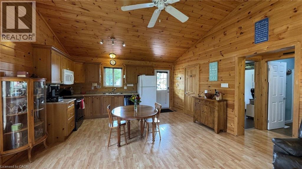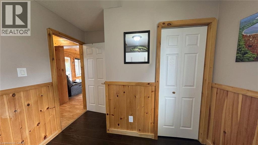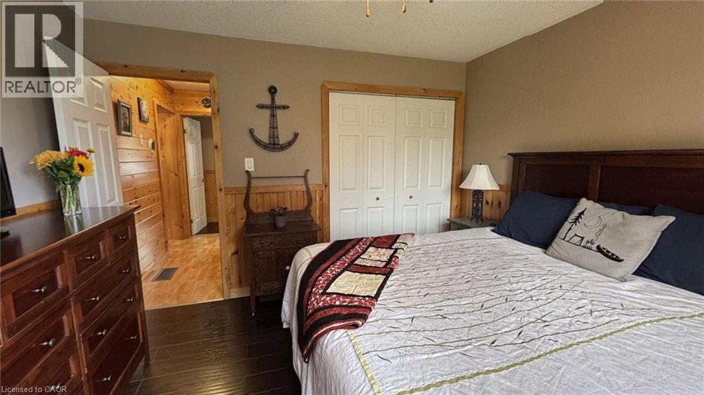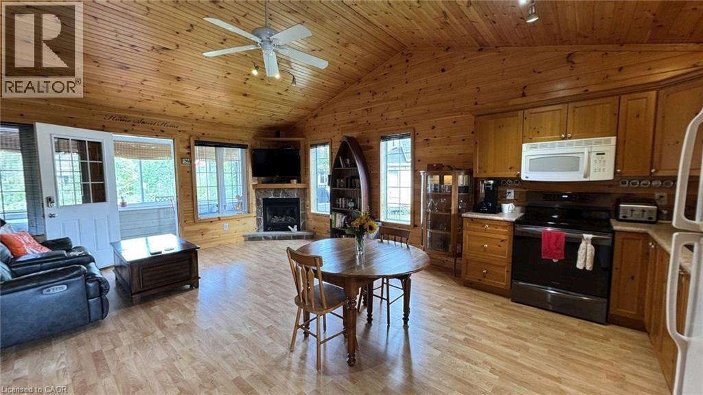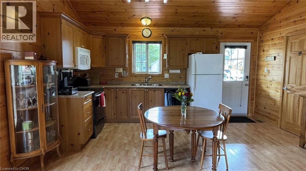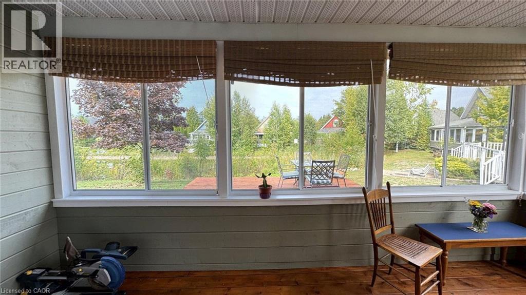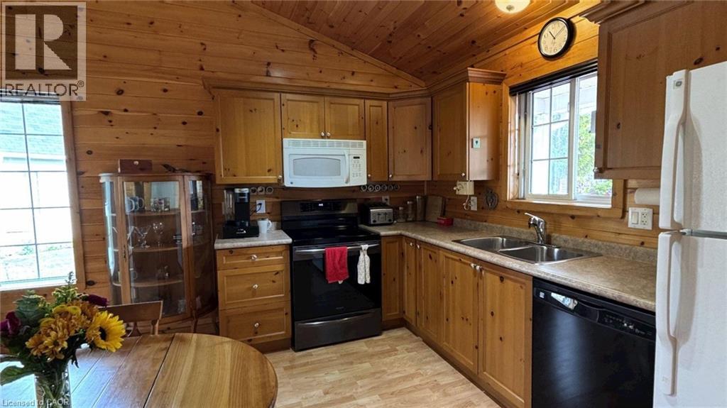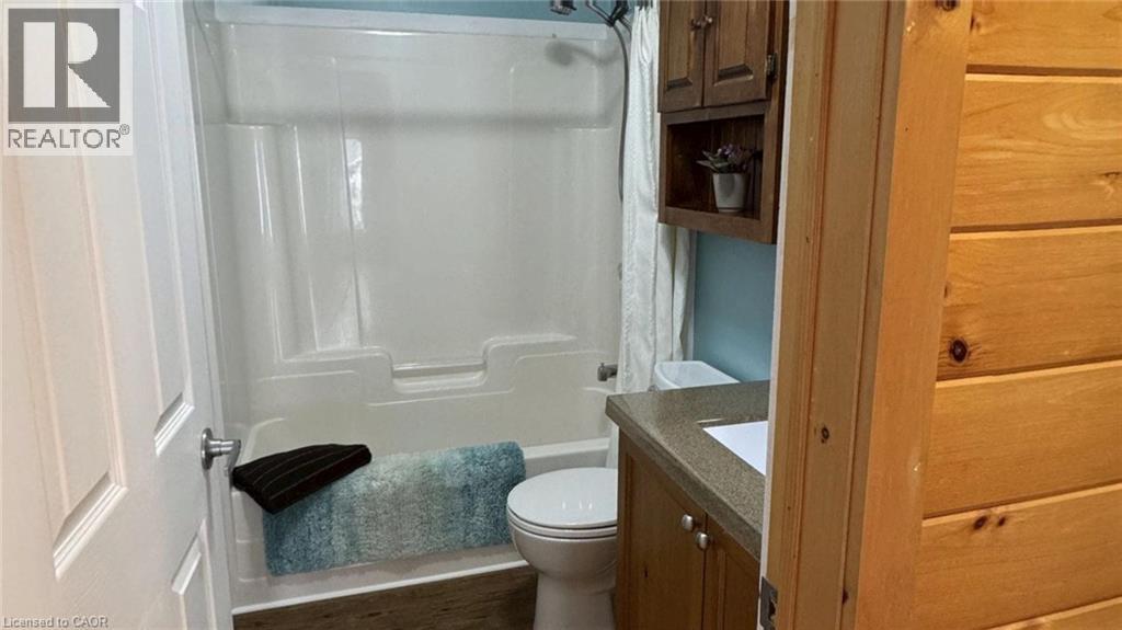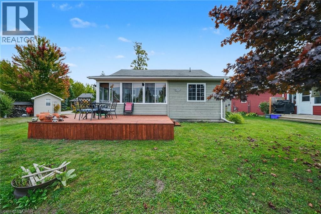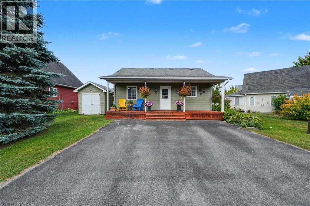 Located in the popular Lakes of Wasaga resort community, this charming year-round home offers 856 square feet of living space, including a bright two-season sunroom. The community provides a resort lifestyle with access to tennis courts, mini golf, pools, and children’s play areas. Inside, the home features two bedrooms and a three-piece bathroom with a newly updated sink backsplash. The spare room includes a built-in Murphy bed and desk, providing a flexible option for guests or a home office. The open-concept living room, dining room, and kitchen showcase cathedral pine ceilings and walls, creating a warm, inviting atmosphere. Convenience is enhanced with a stacked washer and dryer. Additional highlights include an in-ground irrigation system, generous-sized shed, and freshly stained front and back decks as well as the sunroom floor. A new AC unit was installed in May 2025. The backyard features a fire pit, perfect for relaxing evenings. The home also offers a four-foot crawl space with ample storage, housing the furnace and hot water heater. A paved driveway provides parking for three vehicles. From here, it’s just a short walk along two dedicated paths to New Wasaga Beach. Monthly fee of $772.01 (on leased land) includes property taxes, lease fee, maintenance. (id:64974)