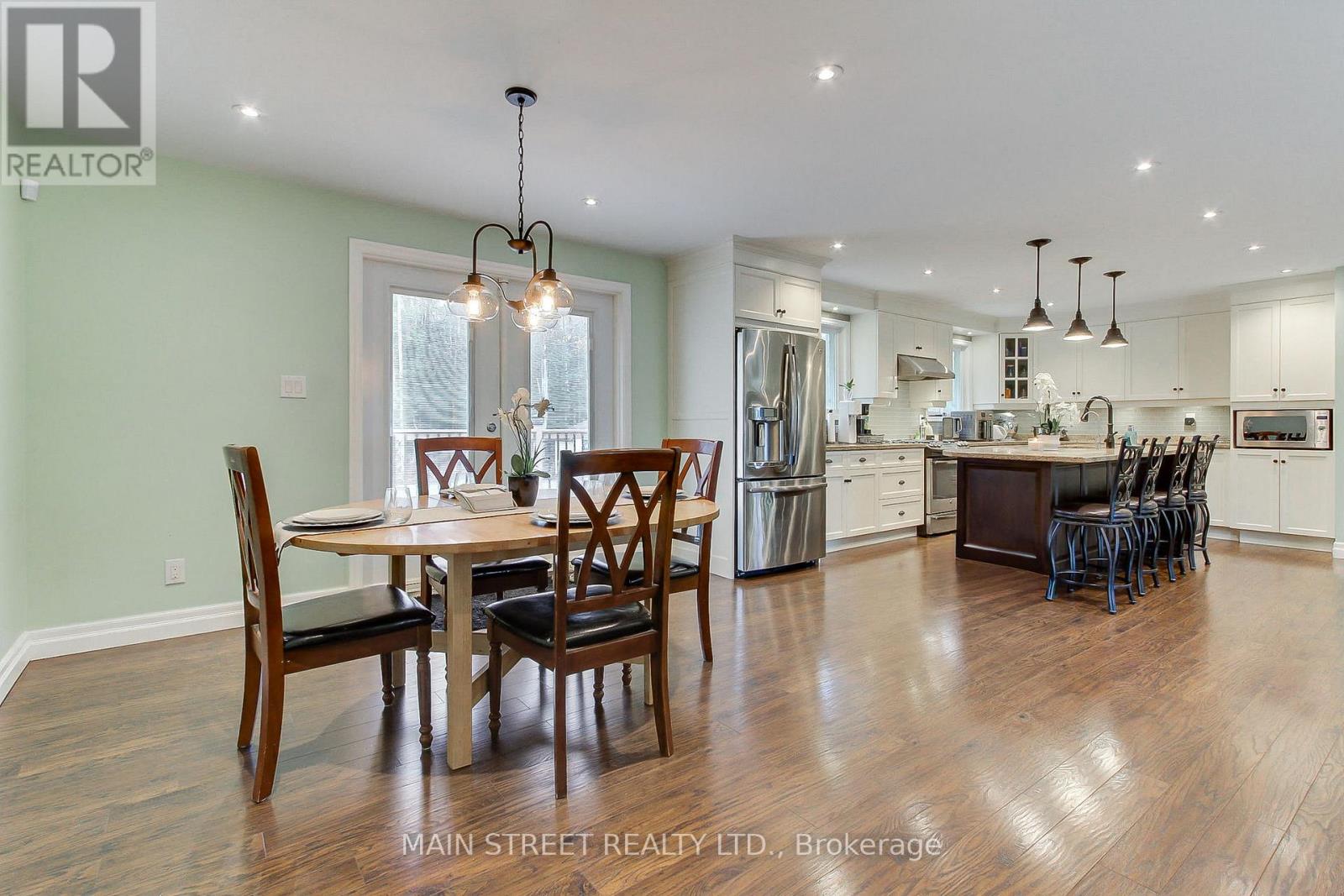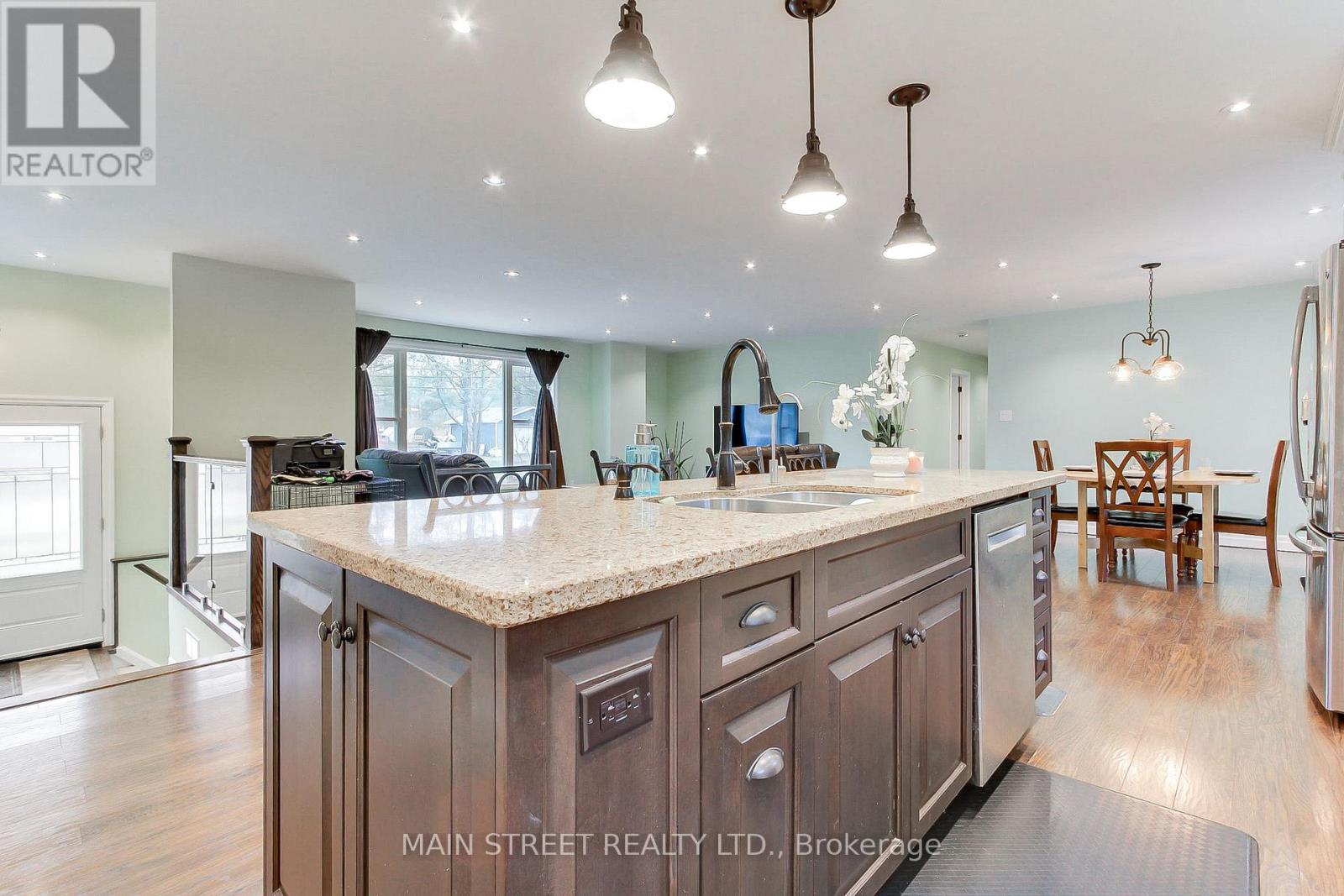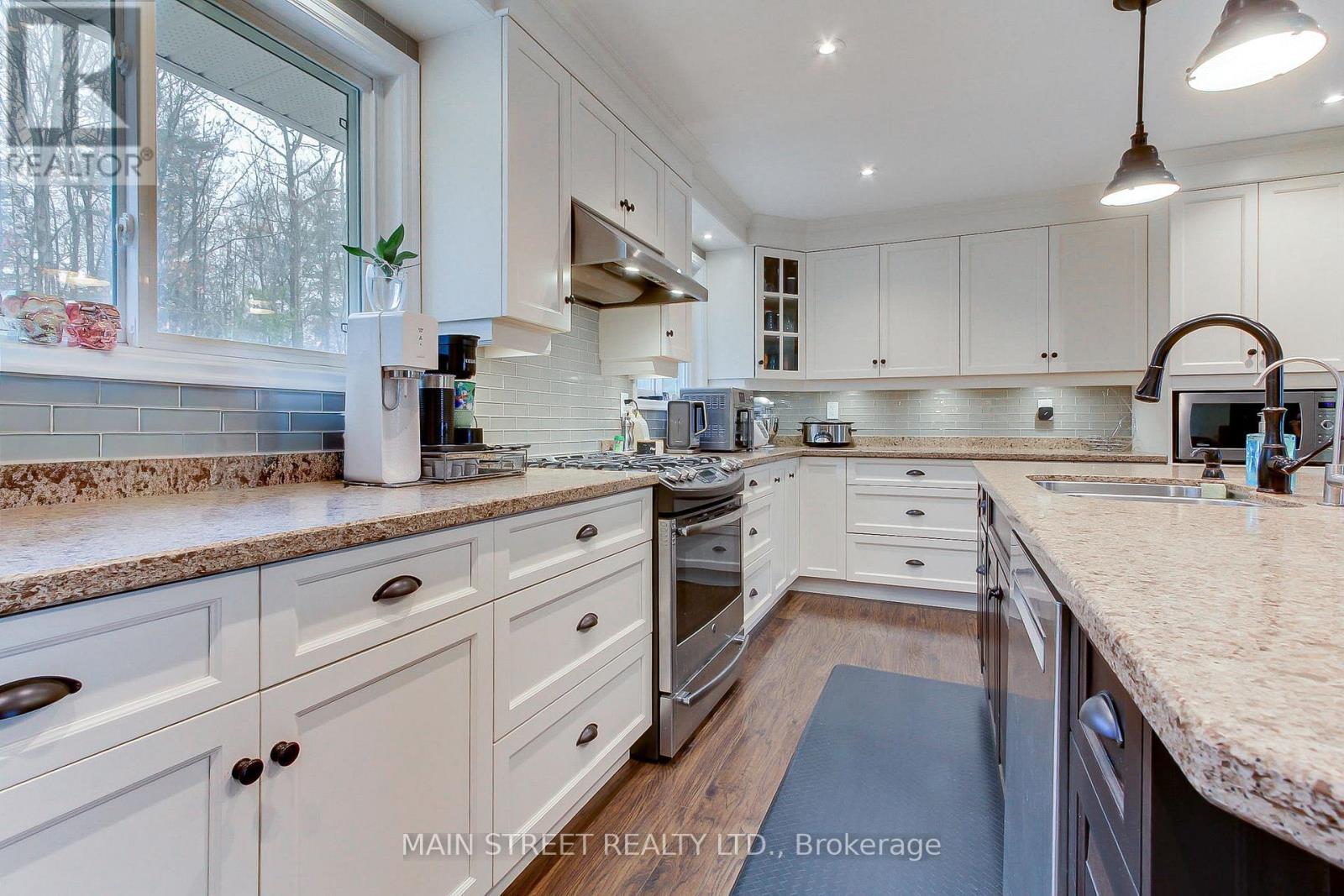 Totally upgraded in and out and sitting on an oversized premium lot, backing on trees with no homes behind, along a scenic street leading to the shores of Lake Simcoe and you own private dock water access granted to the residents of the Maple Ave. Open concept design features dark engineered flooring with pot lights thought out. Gourmet kitchen and centre island with breakfast bar overlooking living and dining room features stainless steel appliances, quartz counter tops, quality custom built cabinets with slow closers, crown molding, under-mount lighting, and glass railway tile backsplash. Open concept dining room with french door style glass walkout to huge deck leading to massive backyard, and overlooking living room with picture window allowing for tons of natural light. Finished lower level for a total of over 3000sqft of living space, includes two additional bedrooms, wet bar, above grade windows, and original floor to ceiling fireplace updated with effortless electric insert. Huge double car garage with elevated ceilings and parking for more than 6 cars, enough room for all your toys. Qualifies for Sutton PS and DHS (id:64974)