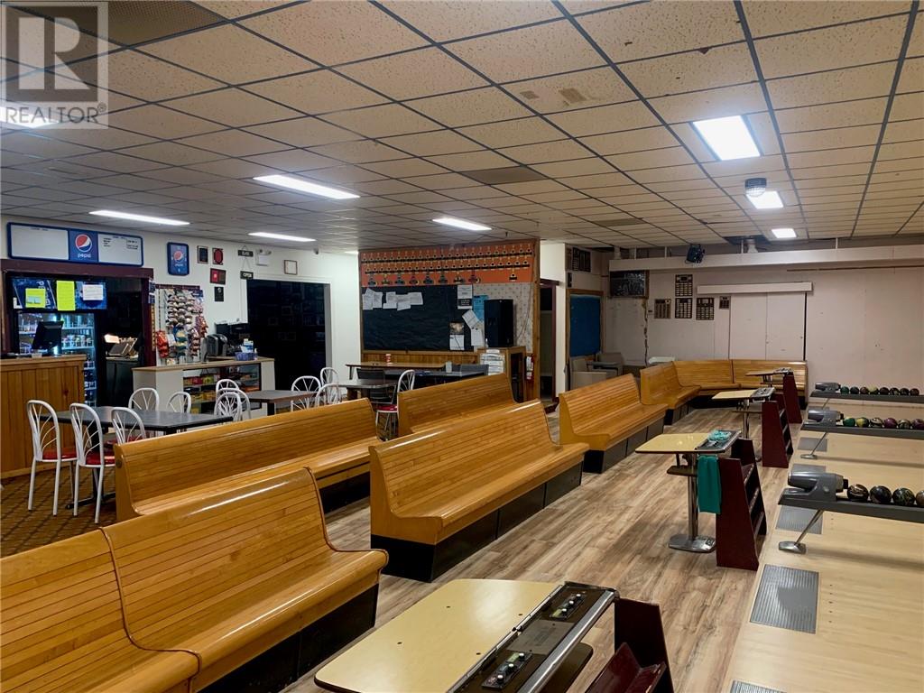 Great opportunity for a family or small scale entrepreneur - turn key operation - BOWLING ALLEY. Centrally located and well established (60+yrs) within the community. Certified eight lanes - 5 pin. Well maintained with recent improvements (shingles, insulation, kitchen equipment, cash registers, natural gas furnace). Two nationally ranking standards, Glow Bowl outfitted, Liquor License and snack bar with kitchen for up to 72 people. Vendors will train new owner(s) for a successful transition. If you are a go-getter wanting to be self employed??? COULD ALSO BE CONVERTED INTO APARTMENT UNITS OR COMMERCIAL OFFICE SPACE?? (id:64974)