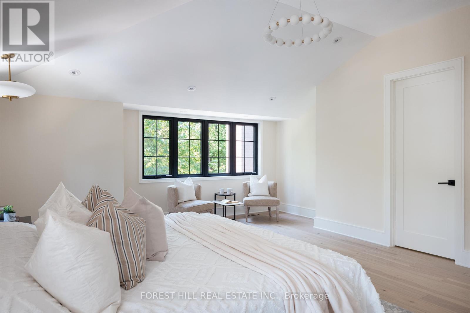Set on one of North Rosedale's most established, tree-lined streets, this home is fully finished, meticulously redesigned, and nearly impossible to replicate within a heritage-protected neighbourhood where complete transformations of this calibre are exceptionally rare. With its 128-foot frontage, the property commands an impressive street presence and an estate-like sense of scale. Natural light floods the main level, where the principal rooms overlook a tranquil, green backdrop. The open-concept kitchen and family area connect seamlessly to a private, ravine-like outdoor retreat, perfect for families who travel often or value low-maintenance living. Chefs kitchen with Sub-Zero refrigeration, a Wolf six-burner gas range and microwave drawer, Miele integrated dishwasher, and quartz waterfall countertops anchored by a double-sided porcelain fireplace. Upstairs, four spacious bedrooms offer privacy and flexibility. The primary suite is tucked away, featuring a generous walk-in closet and a spa-inspired en-suite. A secondary suite with its own balcony provides comfort for guests or extended family, while two additional bedrooms share a well-appointed Jack-and-Jill bath. Designer lighting from Union Lighting and wide-plank engineered hardwood flooring add warmth and refinement throughout. The bright, above-grade lower level extends everyday living with a spacious laundry room featuring Electrolux appliances, direct garage access, and a versatile open layout ideal for a home gym, media lounge, or office. Heated driveway and radiant in-floor heating to the NTI high-efficiency boiler, Siemens safety system, and front and rear irrigation for effortless upkeep. A short walk to Chorley Park, Summerhill Market, and the Evergreen Brick Works, and within close proximity to Toronto's top public and private schools, this is a rare turnkey residence that blends Rosedale charm with uncompromising modern luxury. (id:64974)