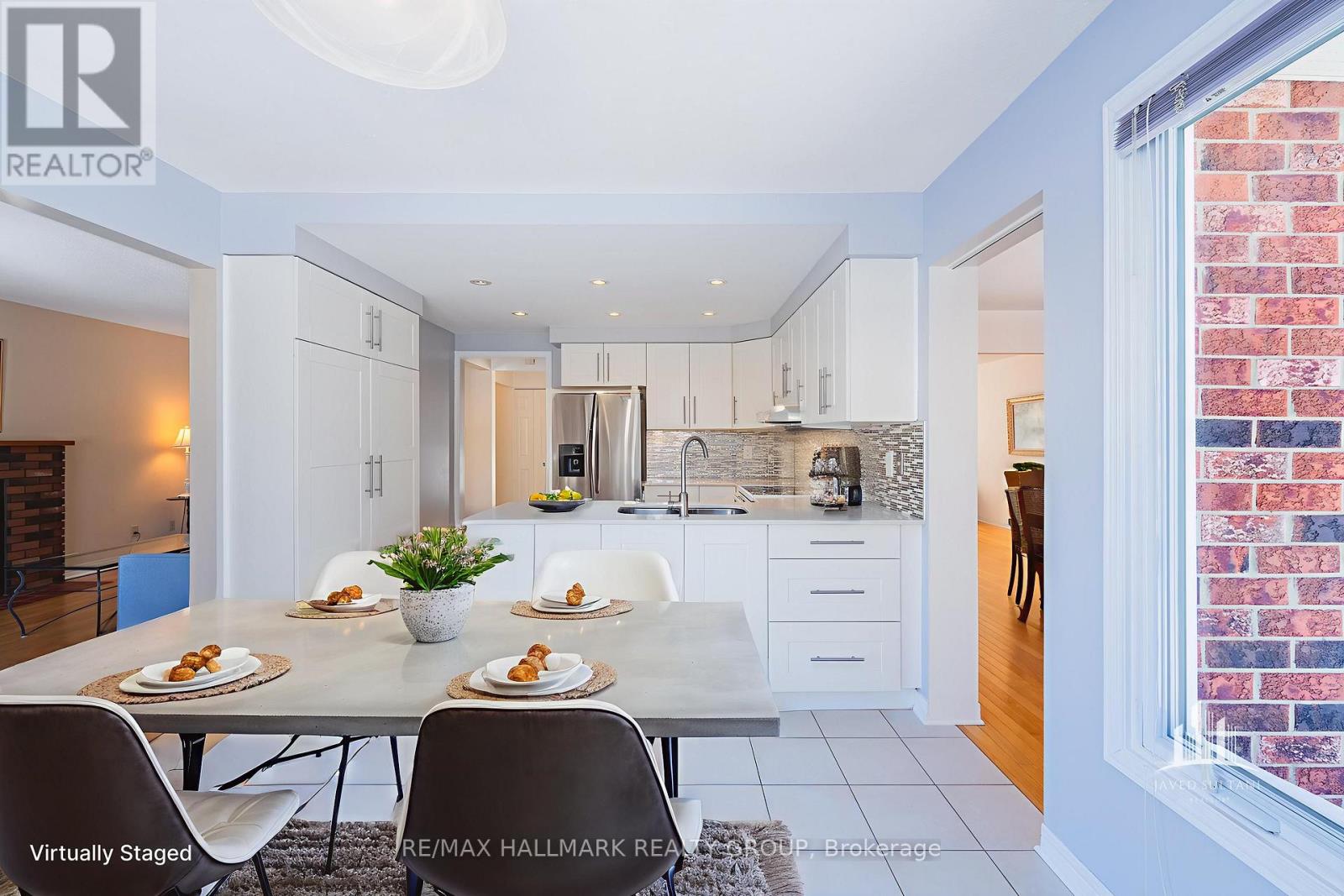 Welcome to 52 Thare Crescent, ideally located in one of Ottawa's most sought-after neighborhoods. This beautifully maintained detached corner-lot home offers exceptional curb appeal and pride of ownership throughout, sitting on a spacious 60 x 100 ft lot. Featuring 4 spacious bedrooms and 2.5 bathrooms, this home is perfect for growing families or those seeking comfort and functionality. The main floor showcases hardwood flooring and a cozy wood-burning fireplace, creating a warm and inviting atmosphere during the winter months. The updated kitchen is both stylish and practical, complete with quartz countertops, a modern backsplash, ample cabinetry, and new flooring, making it an ideal space for everyday living and entertaining. The primary bedroom includes a walk-in closet and an ensuite with an updated shower, sink, and new vanity. The remaining 3 bedrooms are all generously sized and versatile. This is a one-owner home that has been meticulously cared for, with numerous updates over the years, including a central vacuum system. Roof (2014), Kitchen update (2014), Primary ensuite new vanity (2011), Hot water tank (2019), Furnace (2023), Bathroom flooring updates (2026). Conveniently located close to all amenities, including schools, parks, shopping, transit, and in close proximity to the train station and bus station, this home offers the perfect blend of comfort, quality, and location. Photos have been virtually staged to help showcase the home's potential. (id:64974)