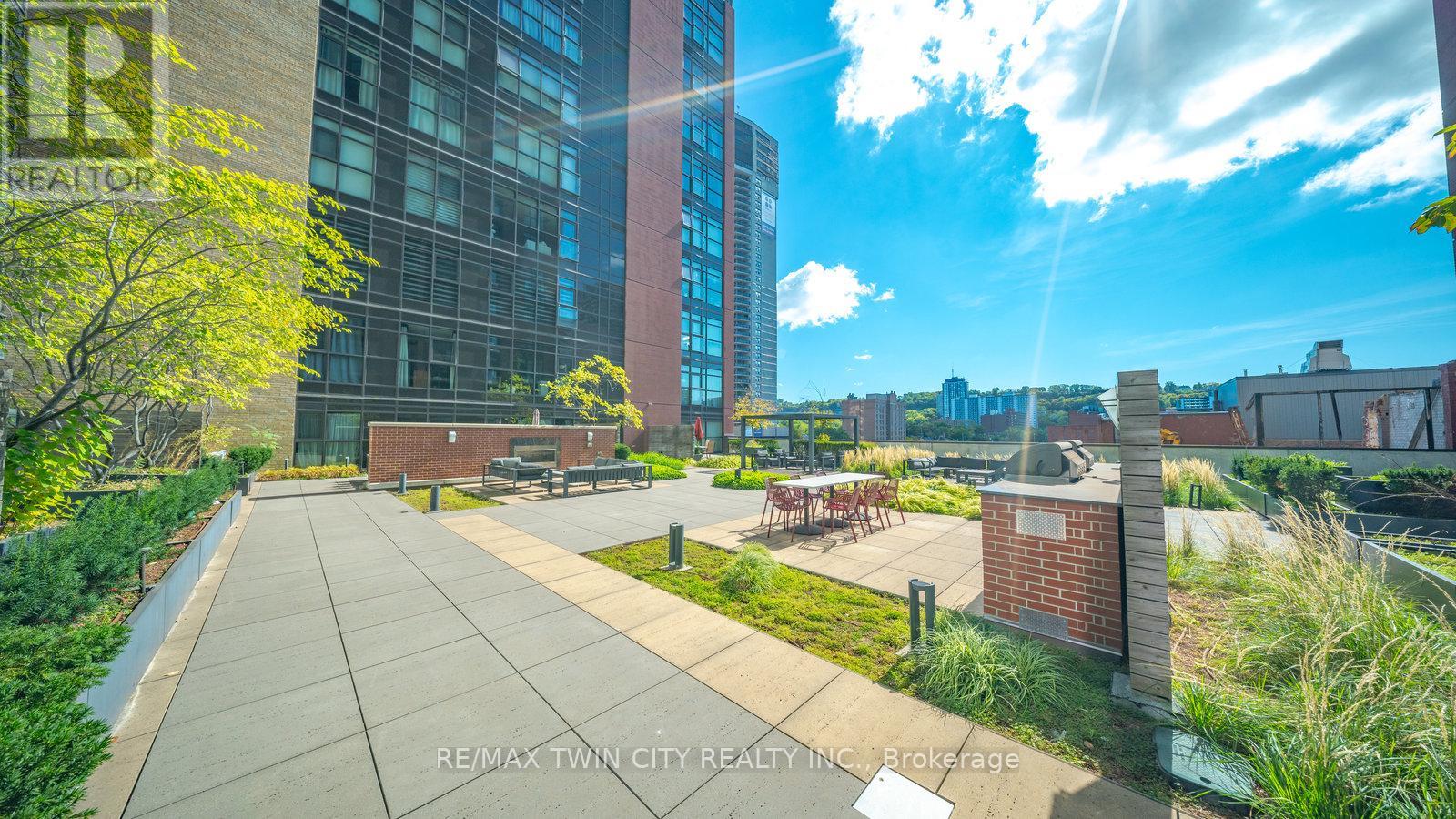 Welcome to this stylish 1-bedroom, 1-bath condo located in one of downtown Hamilton's sought-after modern buildings with historic charm. Step into a bright, open-concept space featuring a contemporary kitchen with stainless steel appliances and granite countertops, perfect for modern urban living. You will enjoy in suite laundry as well as closet space offering convenience and storage. The building offers impressive amenities including a fully equipped fitness gym, rooftop terrace with stunning city views, media room, and party room - ideal for entertaining or relaxing after a busy day. Enjoy the convenience of downtown living, just steps from parks, Starbucks, the GO Station, and many wonderful restaurants. Experience everything Hamilton's vibrant core has to offer right at your doorstep. Perfect for professionals, first-time buyers, or investors - this condo combines style, comfort, and location in one incredible package. (id:64974)