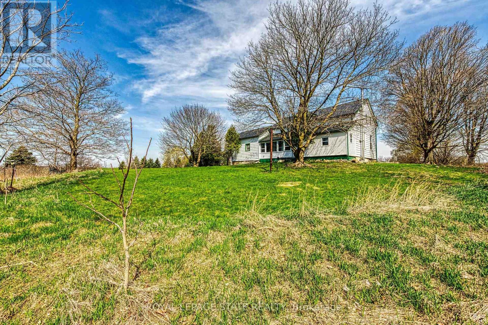 Discover the perfect blend of charm and functionality on this picturesque 99-acre hobby farm, featuring a delightful Century frame home. Approximately 75 acres of workable land are currently leased, offering both beauty and income potential. The gently rolling landscape is enhanced by a meandering creek and mature trees, including majestic blue spruce and white pine. A 30' x 50' implement shed provides ample space for equipment and storage. Nestled in a peaceful rural setting, this property enjoys a central location with easy access to Ancaster, Caledonia, and Brantford. (id:64974)