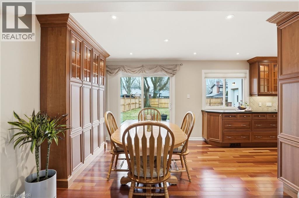 Nestled on a quiet, tree-lined, picturesque street in one of South Burlington’s most sought-after neighbourhoods, this beautifully maintained 5-bedroom family home sits on a premium lot and offers approximately 20% more living space thanks to a thoughtfully designed addition. Step inside to discover rich Brazilian cherry hardwood flooring, expansive windows that bathe the home in natural light, and a well-appointed layout designed for comfortable family living. The updated kitchen features extensive cabinetry, generous counter space, stainless steel appliances, and under-cabinet and ceiling pot lighting, while the above-the-sink window provides a tranquil backyard view. The spacious fenced backyard offers exceptional versatility, perfect for gardening, children at play, entertaining, or the addition of a future pool. The upper level boasts four generously sized bedrooms including a freshly painted primary retreat, along with a 5-piece main bathroom and ample hallway closet space. The bright finished lower level adds valuable living space, highlighted by a large family room with a cozy natural gas fireplace, oversized windows, a hidden crawl space offering over 500 square feet of additional storage and a spacious laundry/utility room. The basement also includes a fifth bedroom, a full 3-piece bathroom, and a walk-up separate entrance, presenting an excellent opportunity for an in-law suite, home-based business or potential secondary dwelling. Ideally located near top-rated schools and the new Skyway Community Centre featuring an NHL-sized rink, pickleball courts, and indoor walking track. Additional area amenities include a library, the lake, shopping, and a Costco currently under construction just 8 minutes away. With such significant investment in the surrounding area, this location continues to grow in desirability, making this home not only a wonderful place to live, but also a strong long-term investment opportunity. Furnace & A/C (2022). (id:64974)