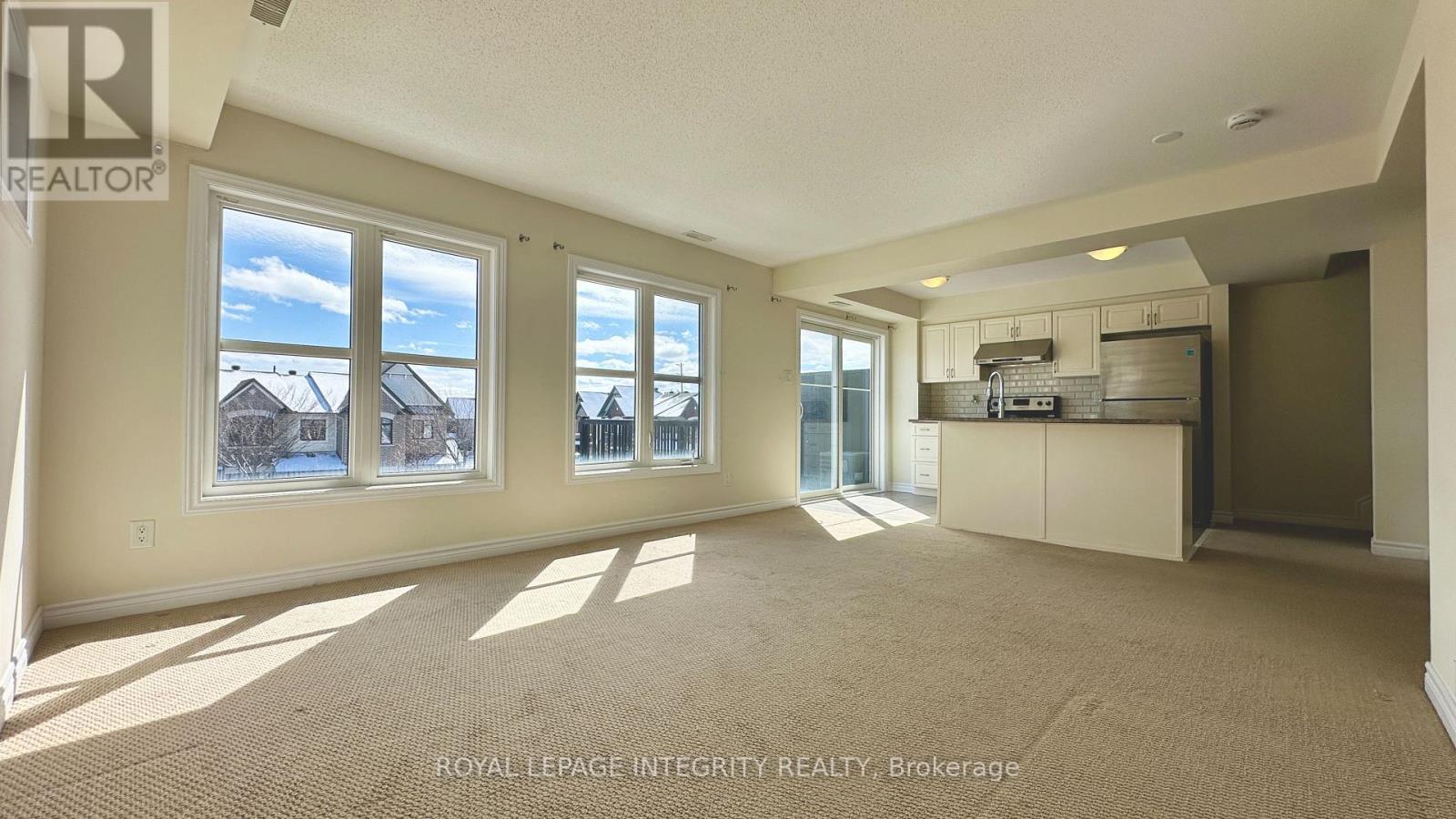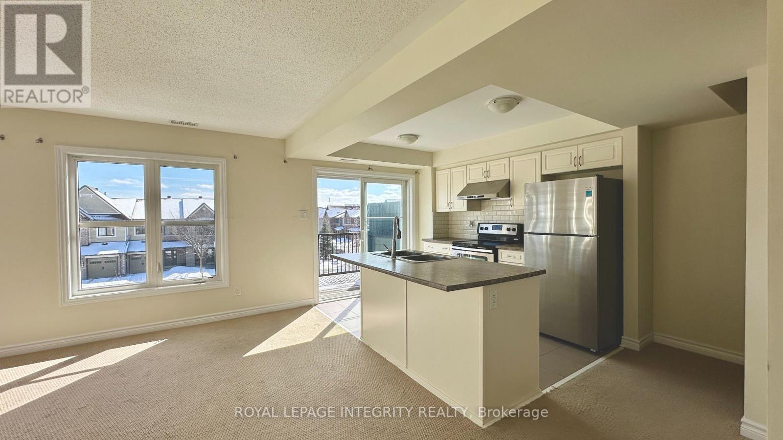 Meticulously maintained upper end-unit stacked townhouse located in the heart of Barrhaven. This bright and inviting home features 2 bedrooms and 2 bathrooms with a gorgeous open-concept layout combining the living and dining areas. The kitchen is beautifully finished with upgraded cabinetry, backsplash, stainless steel appliances, and ceramic tile flooring, which continues into the bathrooms. Enjoy the spacious balcony just off the kitchen-perfect for BBQs, relaxing outdoors, or entertaining while soaking in all-day sunshine. Includes one parking space. Ideally situated close to parks, schools, and just a 2-minute walk to shopping at Barrhaven Marketplace. The property has been professionally cleaned, and the carpets have been shampooed. One surface parking space included. Deposit: $4300 (id:64974)